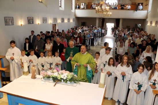 Farska crikva je bila puna do poslidnjeg kuta i vjerniki su impresivno pokazalai koliko je David Grandić bio popularan i koliko su njegovo djelo, kot i njegovu osobnost, cijenili svi u farskoj zajednici. Glani celebrant svetačne svete maše je bio David Grandić u koncelebraciji s farnikom Manfredom Grandićem i dijakonom Vilijem Jandrišićem.