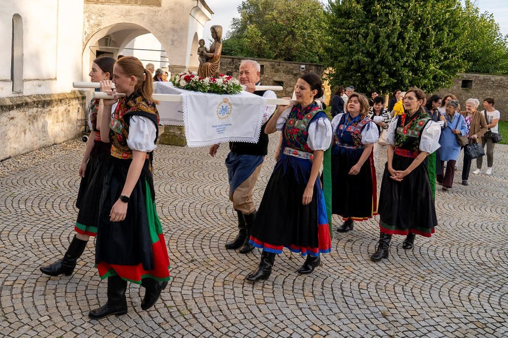 27. 07.2025. na inicijativu farnika Branka Kornfeinda su se gradišćanski tamburaši ganuli na shodišće, da pozdravu Blaženu Divicu Mariju. Pojavili su se svirači, ali zahvaljujući njim se je pojavila bogato kulturno jerbinstvo, nošnje, hrvatske marijanske jačke Gradišćanskih Hrvatov u trenutačnom prebivališću Putujuće Celjanske Marije u Vulkaprodrštofu.