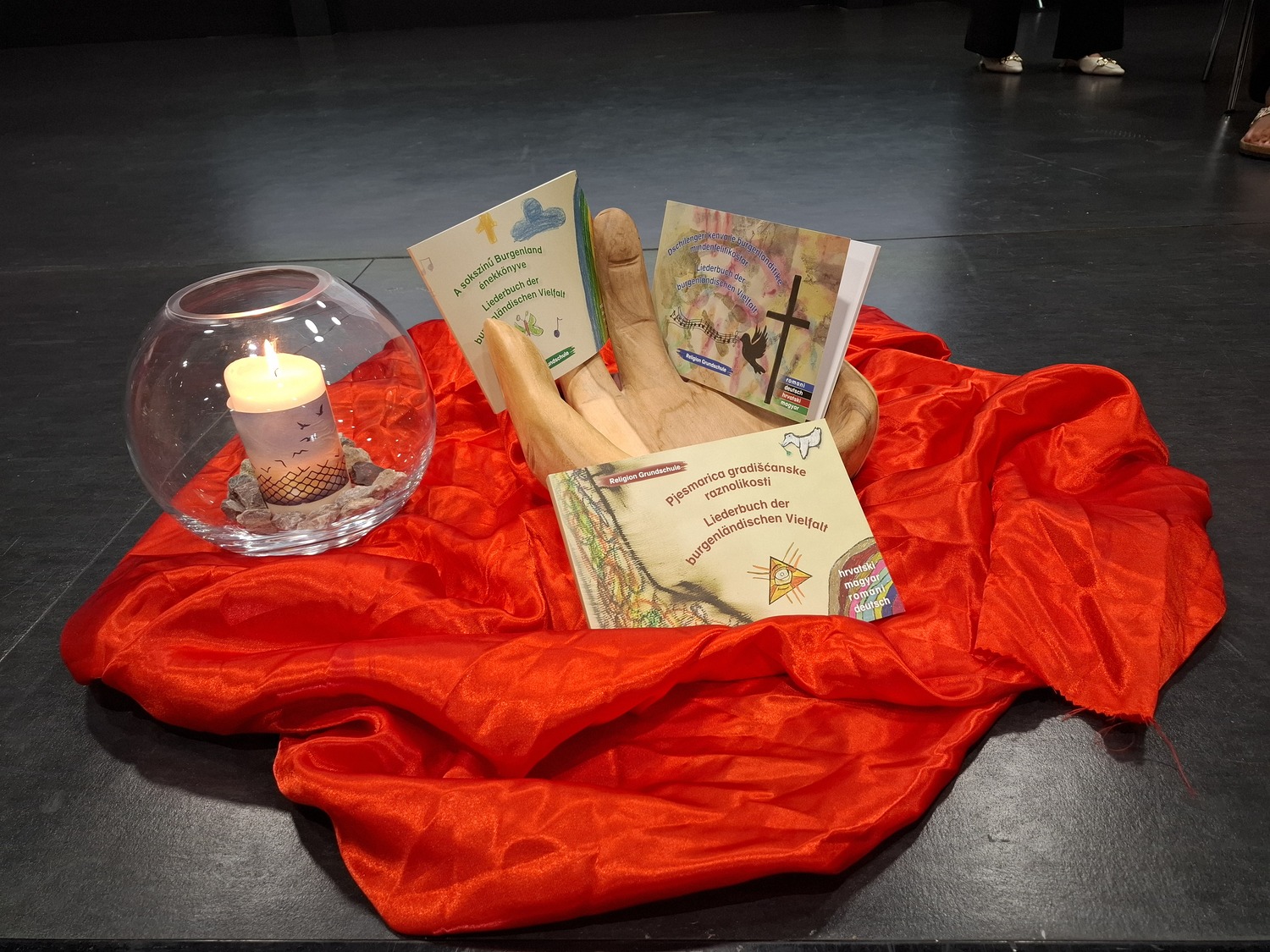 Am zweiten Tag des Symposions fand neben Kreativworkshops und Informationsteilen auch die Präsentation der mehrsprachigen Liederbücher statt, die den zweisprachigen Schulen des Burgenlandes kostenlos zur Verfügung gestellt werden können. Verena Stampf von der PH Burgenland und Fachinspektorin Katja Marth stellten diese großartige Initiative vor.