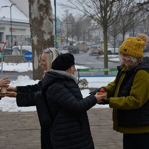 Zum Abschluss ließen sich alle auf ein „Friedensritual“ am Mutter Teresa Platz ein. Eine kleine Schlagwerkgruppe der Musikschule Jennersdorf - dazu Gebet, Impuls und Segen -brachten die Bitte um Frieden hörbar in die Öffentlichkeit, vertieften aber auch den eigenen Herzenswunsch.