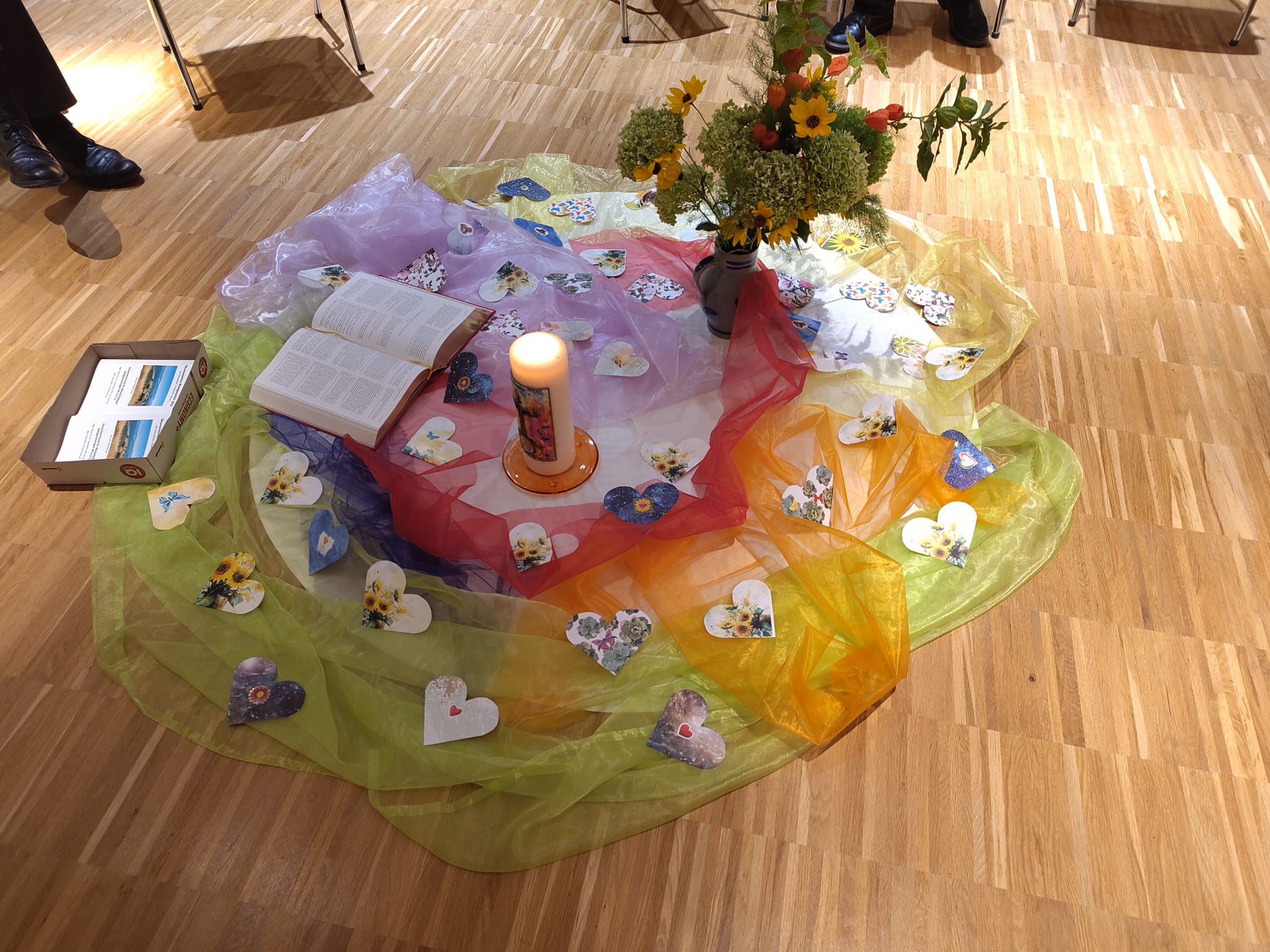 Der Psalm 85, am Anfang gebetet, gab mit „Frieden und Gerechtigkeit“ einen Hinweis auf den roten Faden des Abends. Anschließend waren die Teilnehmenden zu einer intensiven Auseinandersetzung mit dem Bibeltext eingeladen.  Angeregt von einem Vorschlag von Ignatius von Antiochien erfolgte das Teilen eines Wortes bzw. eines Satzteils, der persönlich berührt, tröstet oder bewegt.