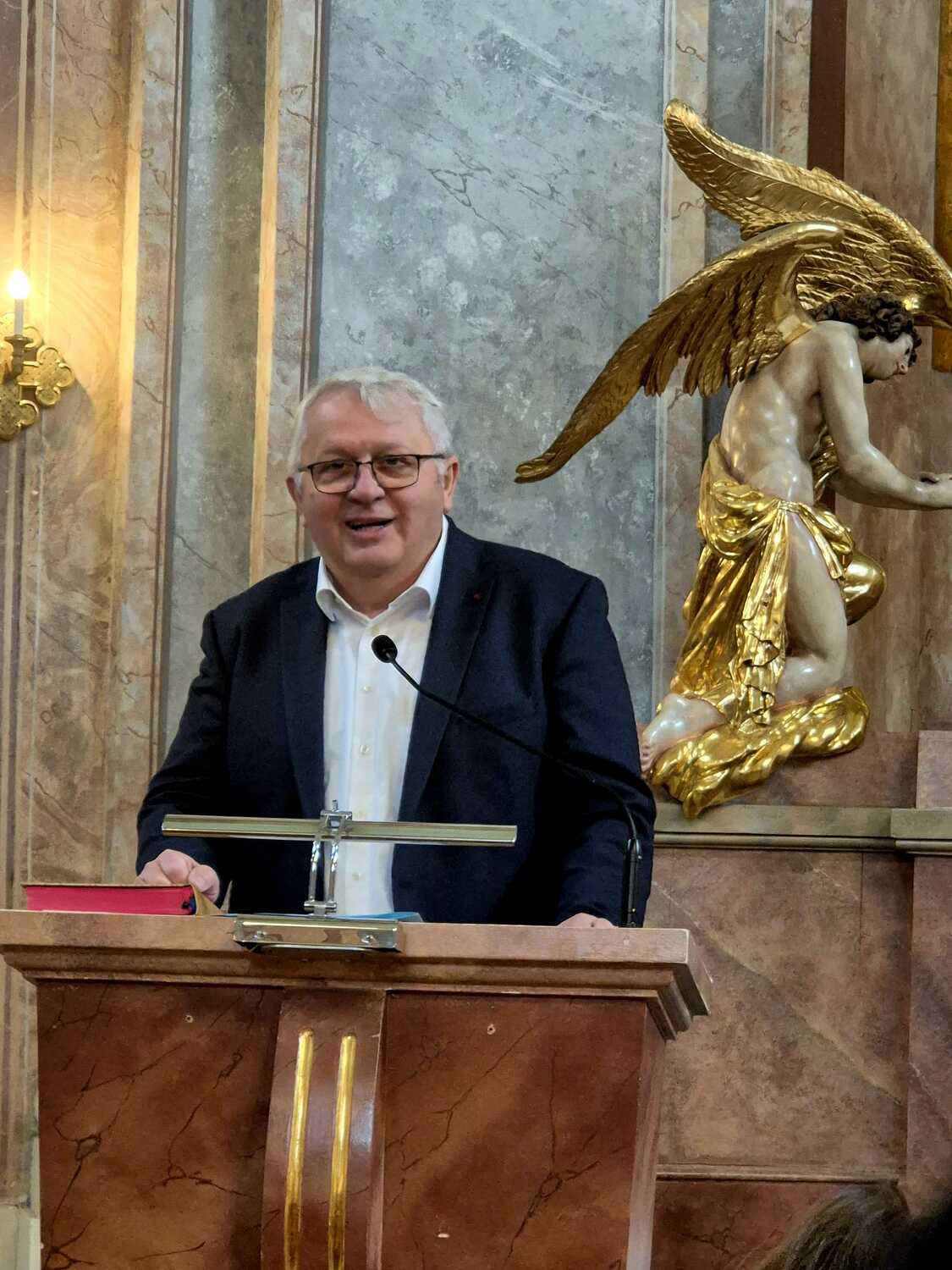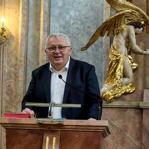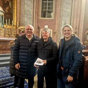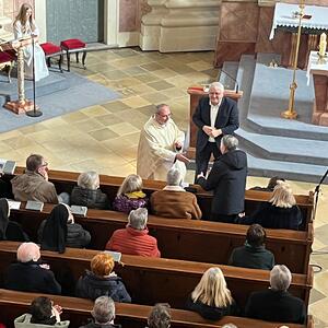 Ein weiterer Höhepunkt war die Vorstellung der Wirkungsgeschichte des heute anwesenden 86-jährigen Komponisten, präsentiert von unserem ehemaligen, langjährigen Organisten Prof. Josef Bauer. Mit herzlichen Worten gratulierte er dem Künstler zu seinem beeindruckenden Lebenswerk.