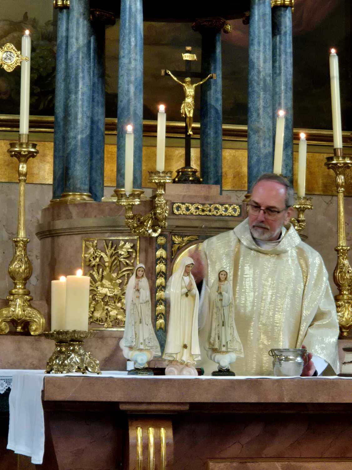 Propstpfarrer P. Lorenz Voith segnete drei Marienstatuen, die anschließend von Mitgliedern der Pfarrgemeinde mit nach Hause genommen wurden – ein schönes Zeichen der Marienverehrung.