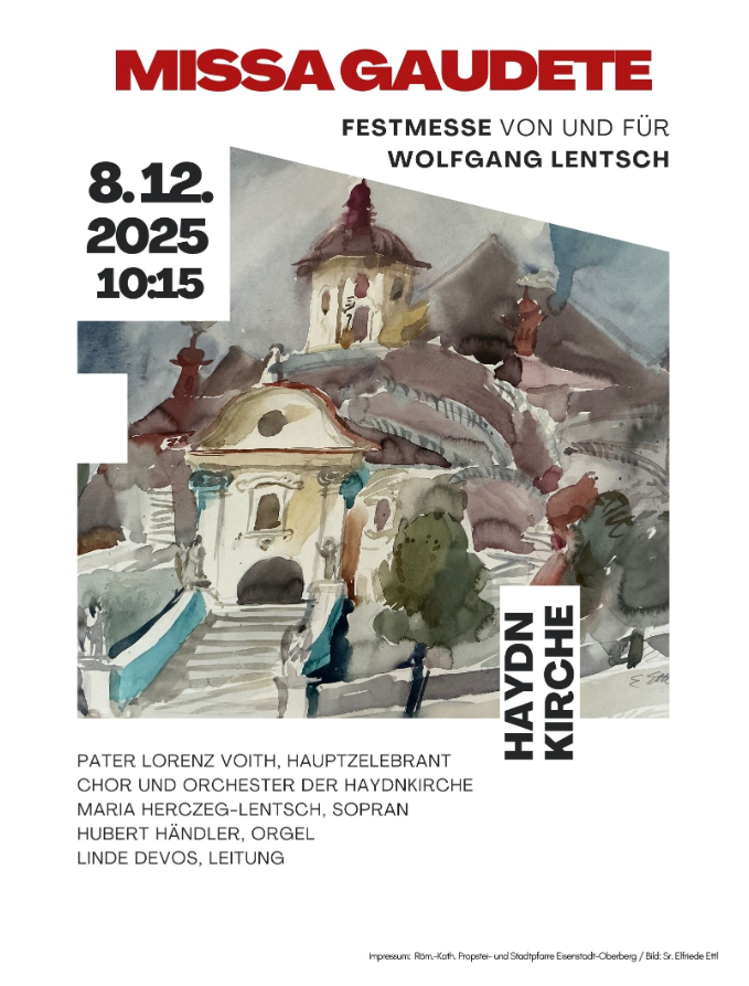 Einer langen Tradition zufolge wurde 2017, wie jedes Jahr am 25. Dezember in der Konventskirche der „Barmherzigen Brüder“ in Eisenstadt eine der beliebten Weihnachtsmessen aufgeführt. Die künstlerische Leitung lag wie seit unzähligen Jahren zuvor in den bewährten Händen des Dirigenten Prof. Rudolf Schrumpf. Mit dem Kirchenchor, den Solisten und einem kleinen Orchester gelang es ihm wie sooft, die mit vielen Motiven bekannter Weihnachtslieder geschmückte Komposition in besonders festlicher, fröhlicher Stimmung während des Gottesdienstes zu musizieren. Nach erfolgreicher Aufführung und dem im Anschluss üblichen Frühstück hatten meine Tochter Sandra, unsere Cellistin Romi und ich auf dem Heimweg ein wenig Zeit, über das soeben gespielte Opus zu sprechen. Beide Musikerinnen waren der Meinung, man könnte ja auch einmal eine ganz neue Komposition bei einem Festgottesdienst aufführen und meinten: „Komponier doch du etwas! Es muss ja nicht unbedingt etwas Weihnachtliches sein.“ Insgeheim fand ich die Idee reizvoll. Noch einmal den „Anlasskomponisten“ herauszufordern wäre doch eine schöne Sache! Einige Wochen später begann ich die ersten Motive einer lateinischen Messe zu Papier zu bringen. Sie sollte der üblichen Besetzung des „Spitalchores“ entsprechen, also etwa für 2 Flöten, 2 Trompeten, für Streicher und gemischten Chor, nicht allzu schwierig und nicht zu lange sein. Somit war aber von vornherein eines klar: Die Vertonung des textreichen „Credo“ kam daher für mich nicht in Frage. Nicht fehlen hingegen sollte und durfte zumindest ein Sopransolo im „Benedictus“, das ich unserer hervorragenden und über viele Jahre hin verlässlichen Solistin Maria widmen wollte. Also begann ich mit der Komposition einer neuen Messe, die ich „MISSA GAUDETE“ benannte. Damit würde man sie vom Namen her auch an den meisten anderen großen kirchlichen Festtagen aufführen können. In unzähligen Stunden entstand aus dem Konzept ein Klaviersatz, der die Grundlage war, in mühevoller Arbeit daraus die komplette Partitur auszusetzen. Mit der Erstellung des umfangreichen Aufführungsmaterials war das Werk nach fast einem Jahr vollendet. Möge es nun Zugang zu den Herzen der Menschen finden und die Spiellust aller Musikerinnen und Musiker zu ihrer eigenen Freude und derer ihrer Zuhörer beflügeln.