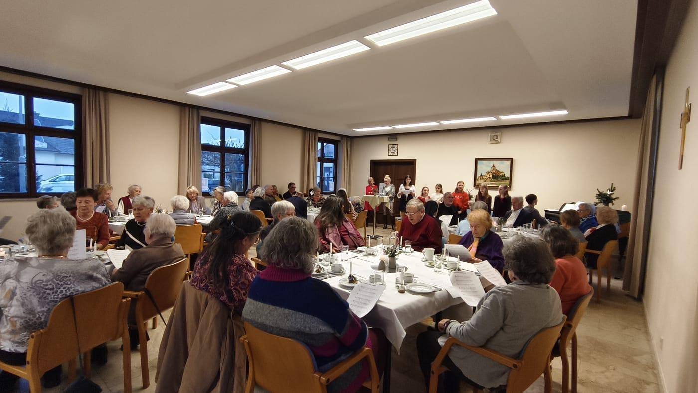 Die Adventsfeier am 17. Dezember war sehr gut besucht und bildete den Jahresabschluss des Seniorencafés. Der Saal des Pfarrheims war bis auf den letzten Platz gefüllt. Besinnliche Gedanken, lustige Texte, Gesang und Musik der Zentralmusikschule Eisenstadt sowie die Segnung durch den Pfarrer prägten die festliche Atmosphäre.