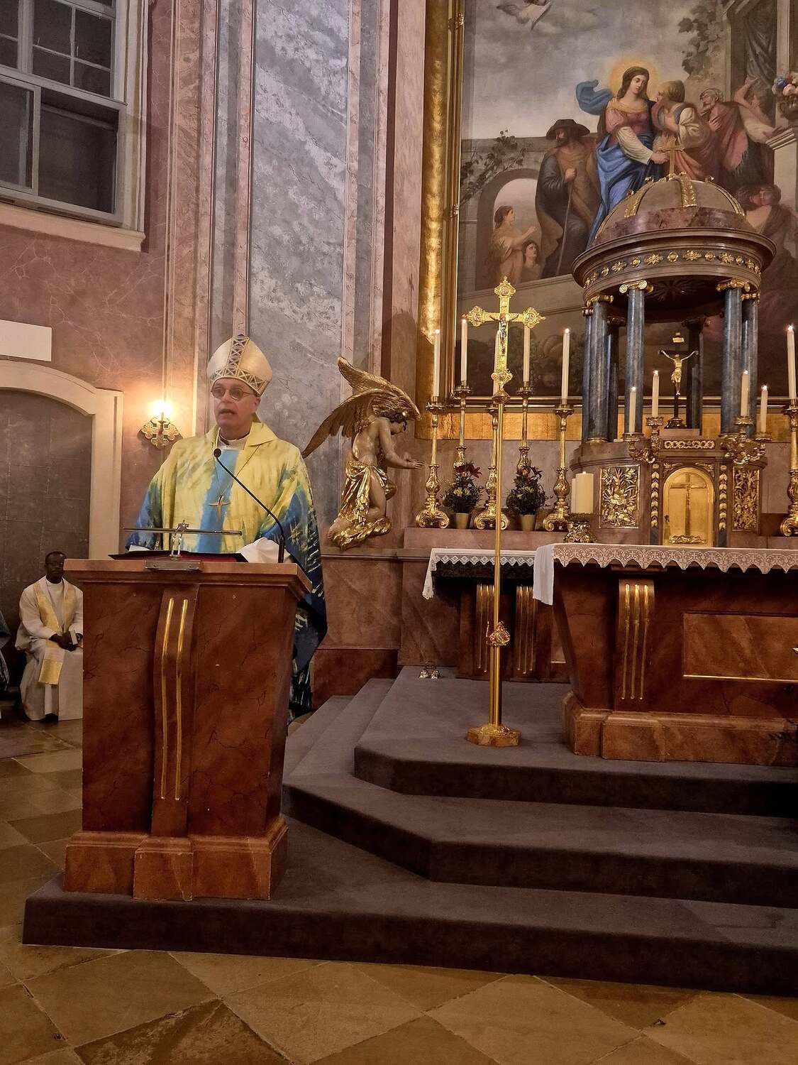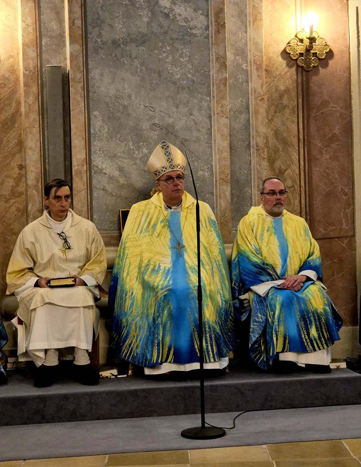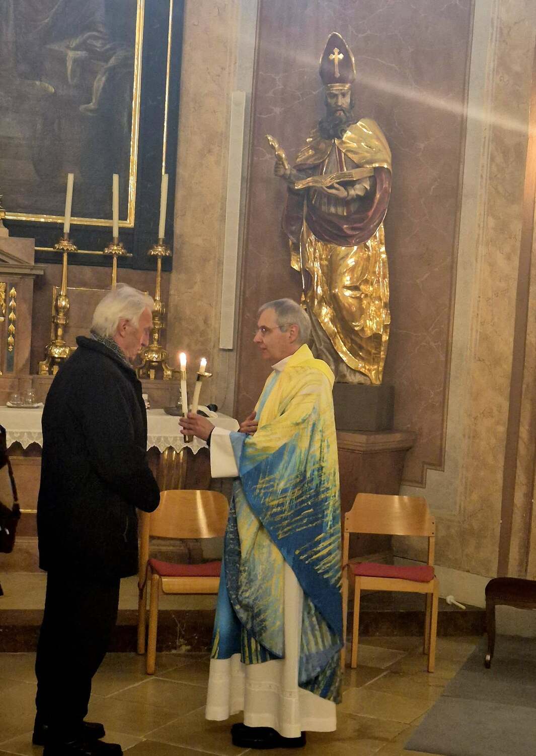 Kerzen drücken Hoffnung aus – die Hoffnung, nicht allein zu sein, auch nicht in der Dunkelheit des Todes. Sie sind immer am Altar zu finden – außer am Karfreitag. Brennende Kerzen symbolisieren: Gott ist da. Gottes Gegenwart ist unter uns. Besonders eindringlich war der Hinweis auf unsere erste Kerze – die Taufkerze. Sie begleitet uns ein Leben lang und erinnert an unser Taufversprechen. Der Bischof nannte sie eine „Provokation“ mit der Frage: