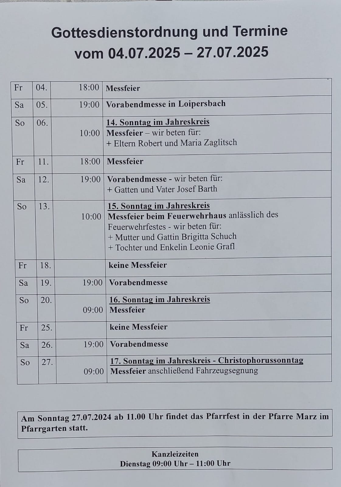 Monatsblatt Juli 2025