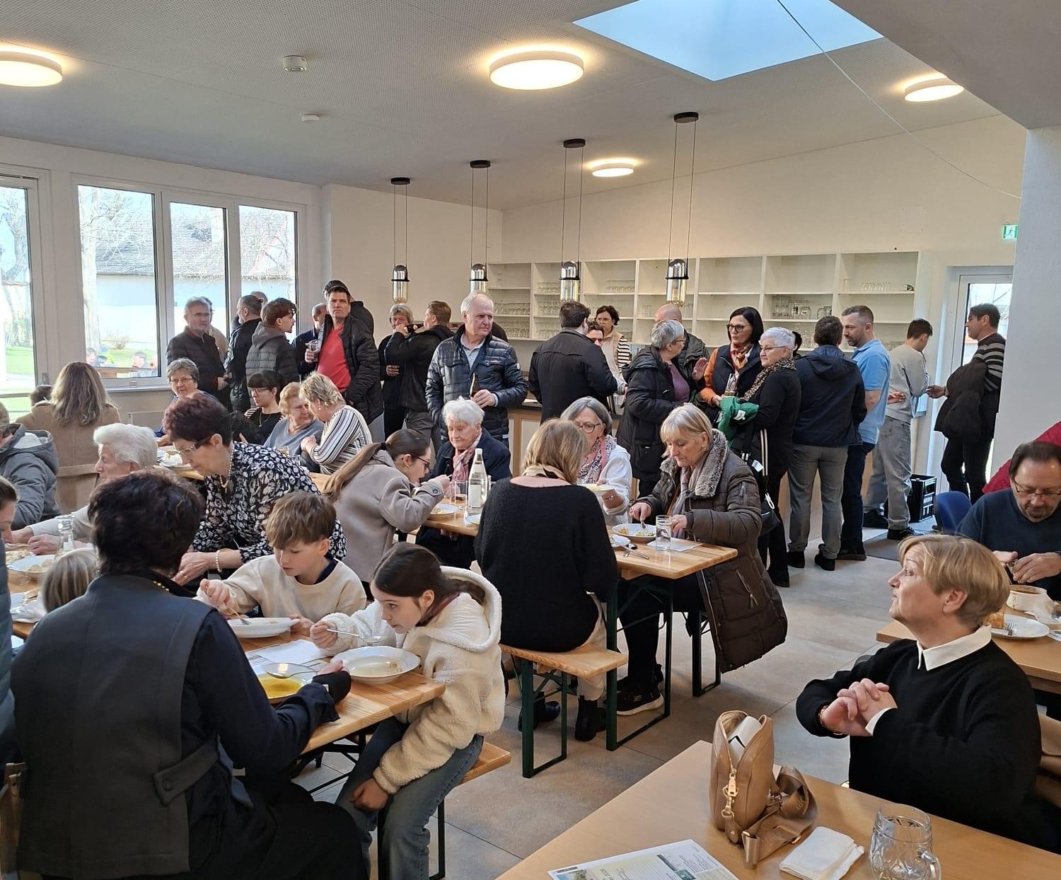 Anschließend lud der Pfarrgemeinderat zum Fastensuppenessen ein. Die Firmlinge haben dabei die Pfarre tatkräftigt unterstützt beim Servieren der Speisen und Getränke. Insgesamt wurden 11 verschiedene Suppen und 14 verschiedene Strudeln angeboten. Die Speisen wurden von Mitgliedern der Pfarre zur Verfügung gestellt.