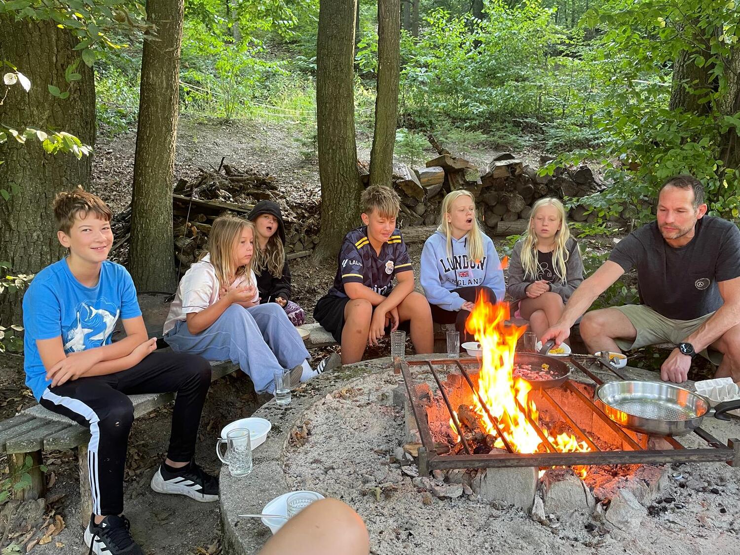 15 Ministranten und Ministrantinnen und einige Erwachsene verbrachten die Nacht im Zelt. Ein besonderes Erlebnis war es, die Würstel selbst über dem offenen Feuer zu grillen. Mit etwas Übung gelang auch das Stockbrot, das knusprig auf den Teller kam. Nach dieser Stärkung standen Spiel und Spaß auf dem Programm. Mit großer Freude suchte sich jeder einen Platz im Zelt oder – wer besonders abenteuerlustig war – unter dem Sternenhimmel. Schnell wurde ein gemütliches Lager eingerichtet. Am Lagerfeuer wurde noch bis spät in die Nacht geplaudert und gelacht.