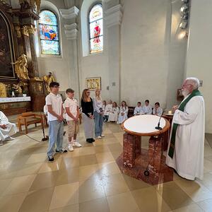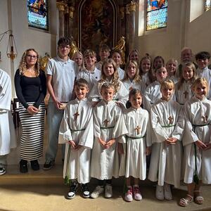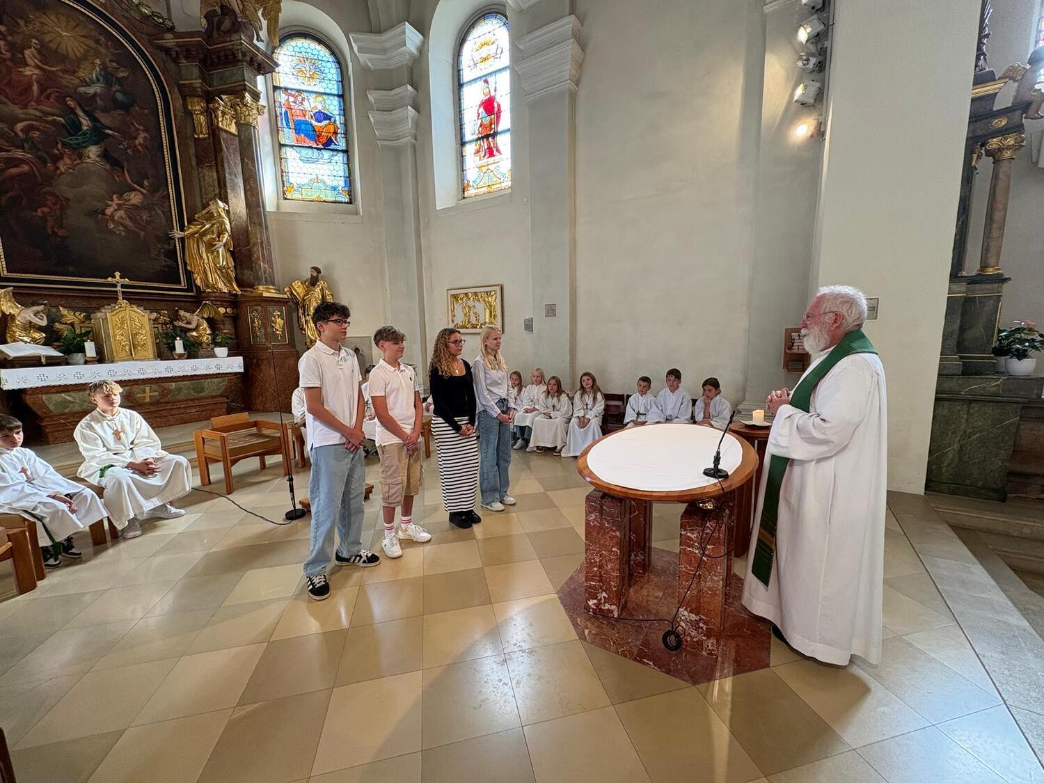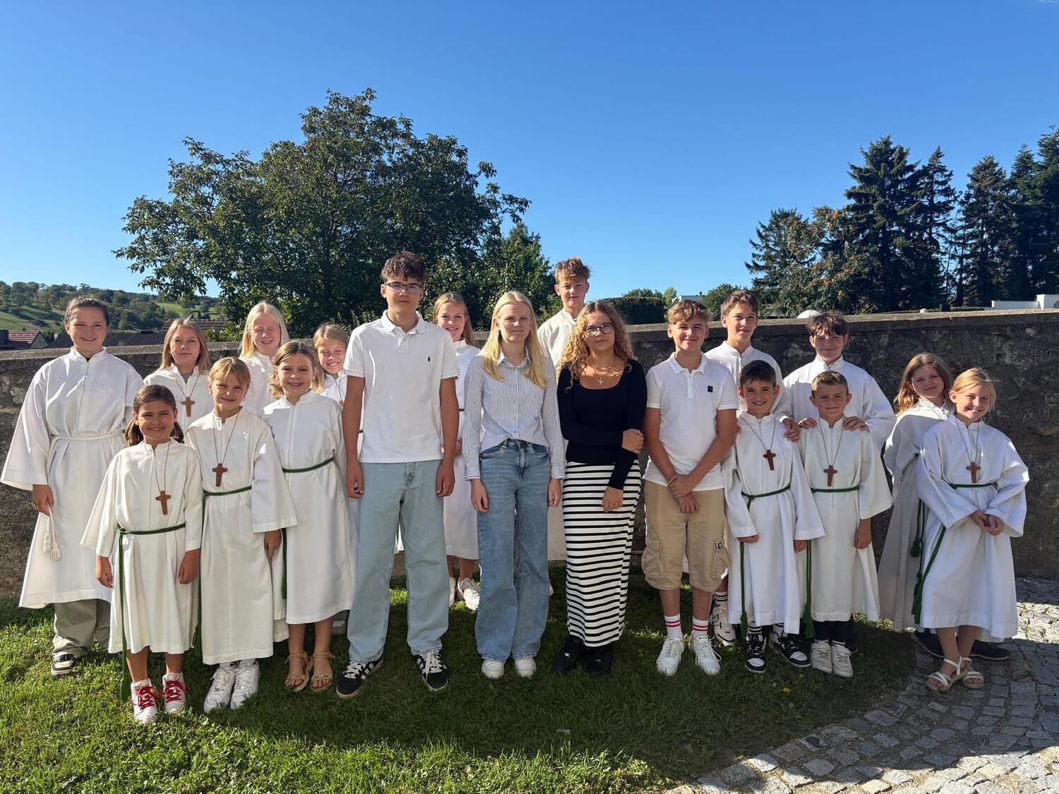 Am Sonntag, den 21. September 2025, wurden im Rahmen eines feierlichen Gottesdienstes vier langjährige und engagierte Ministranten aus ihrem Dienst verabschiedet. Mit großem Dank und herzlicher Anerkennung wurden Johanna Kornfehl, Lea Moritz, Tobias Lang und Alexander Zachs für ihren treuen Einsatz in der Ministrantengemeinschaft geehrt.
