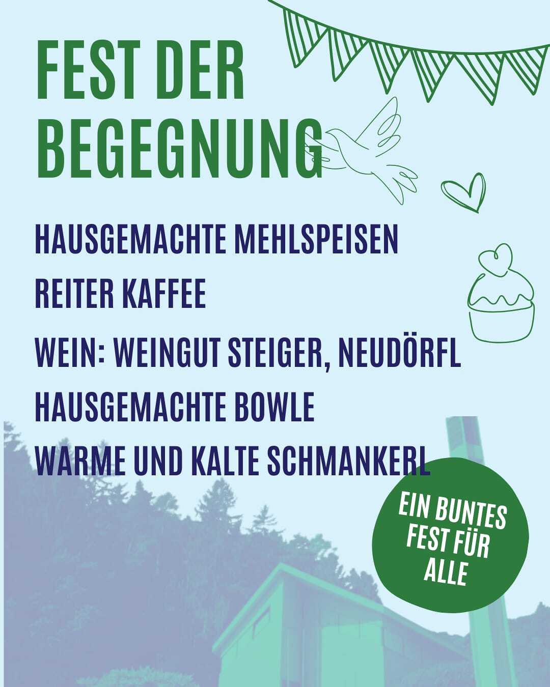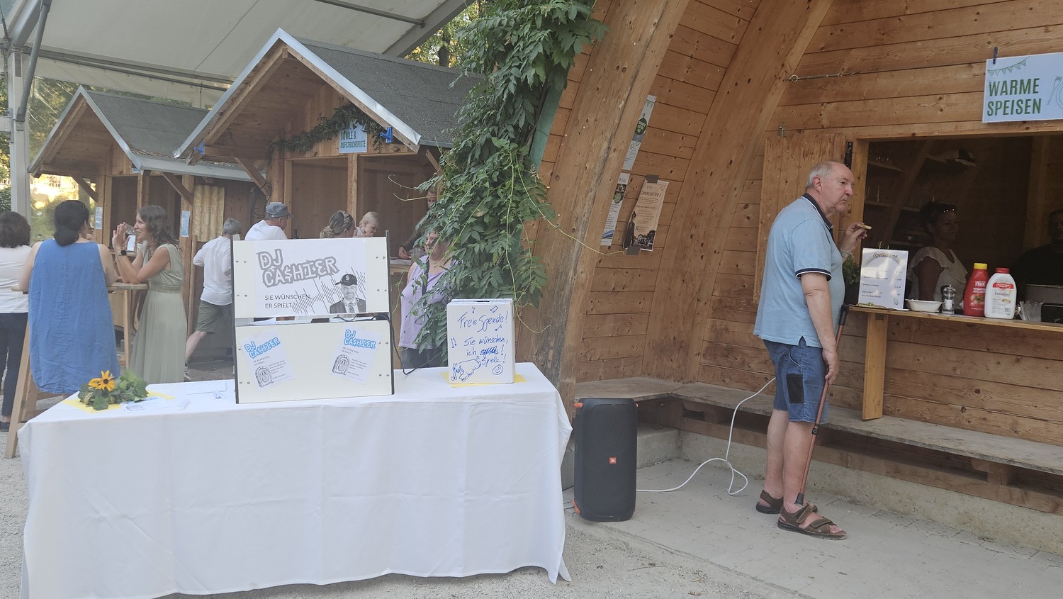 Die Pfarre Bad Sauerbrunn stellte auch Speisen und Getränke zum Erwerb zur Verfügung, Weine vom Weingut Steiger in Neudörfl und viele ganz tolle hausgemachte Mehlspeisen, gebacken von Sauerbrunner Köchinnen, zur Verfügung. Ebenfalls angeboten wurde Musik, aufgelegt von DJ Ca$hier (Pfarrgemeinderat And Reisner). Die Gäste hatten die Möglichkeit, Musikwünsche beim DJ zu bestellen. Das Festpublikum nahm dieses Angebot gerne an.
