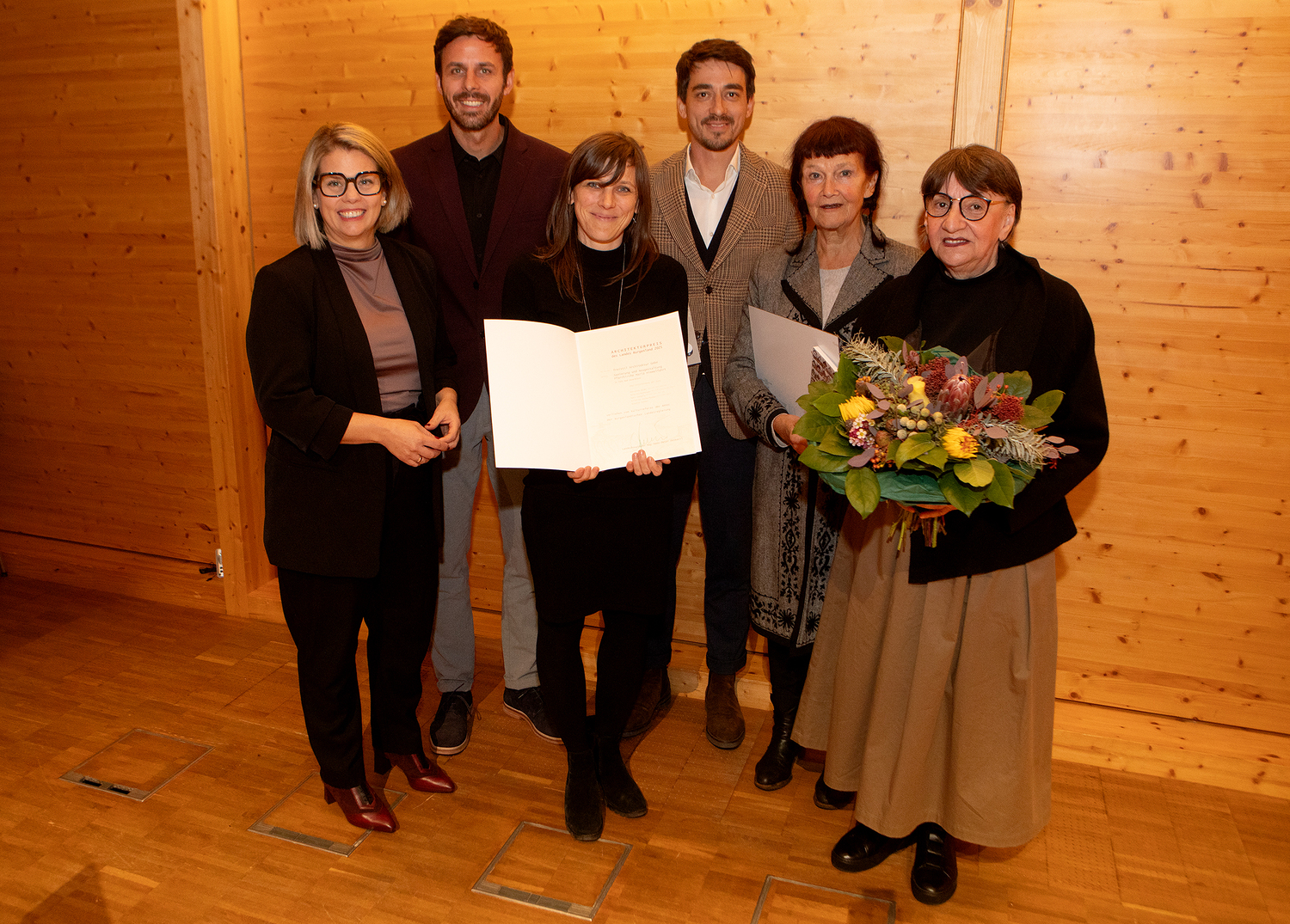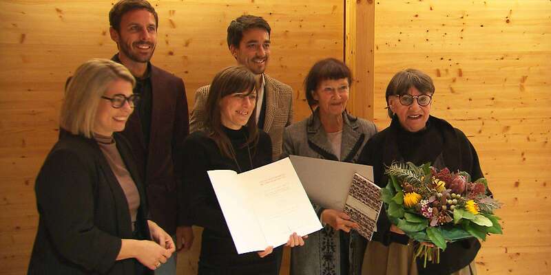 Kuratorin Gertrud Ankerl (r) und die Architekten der freistil Architektur GmbH wurden für das Projekt der Sanierung und Neugestaltung Pfarrkirche Mariä Himmelfahrt ausgezeichnet,