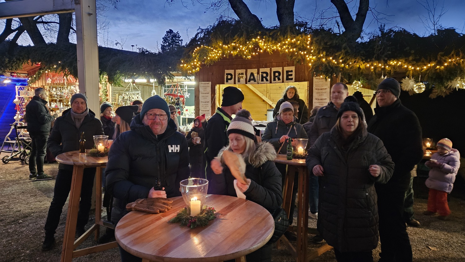 Bereits seit Jahren präsentiert sich die Pfarre Bad Sauerbrunn am ersten Adventwochenende mit dem "Pfarrstand" im Christbaumdorf. Im Pfarrstand sind die Pfarrgemeinderäte und Helfer aktiv. Wie in den Jahren zuvor gab es auch diesmal Glühwein weiß und rot und alkoholfreien Punsch für die Autofahrer und Kinder. Als Speisen wurden Schinken-Käse Toast und Käse-Toast hergestellt.