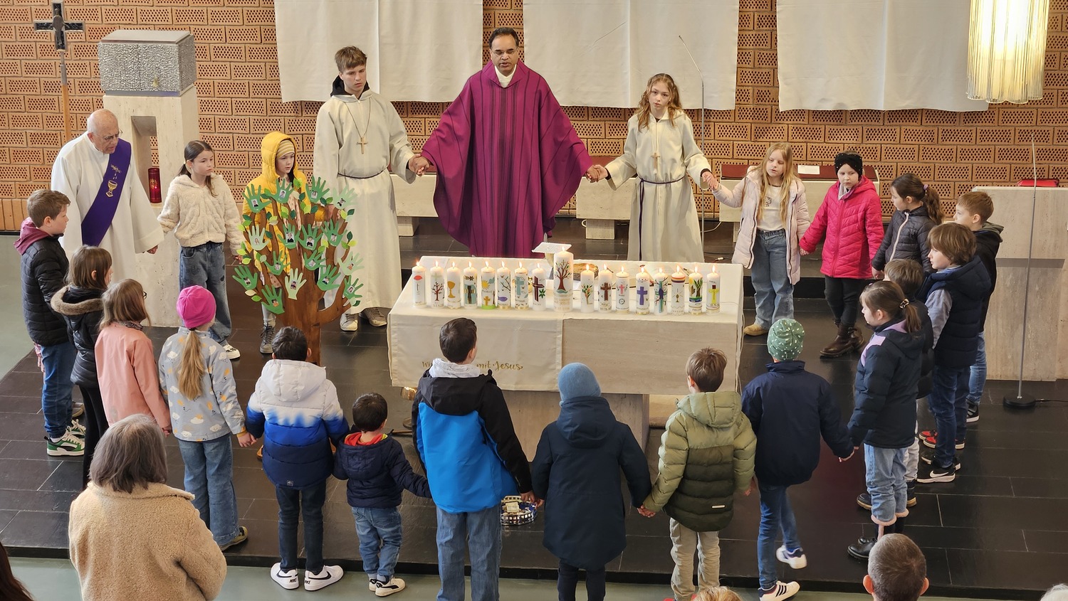 Sechzehn Kinder der Pfarrgemeinde werden für die Feier der Erstkommunion am 31. Mai 2026 vorbereitet. Sie haben sich als Motto für die Vorbereitung und das Fest der Hl. Erstkommunion "Wir wachsen mit Jesus" gegeben. Während der Vorbereitung zur Erstkommunionfeier, hatten die Erstkommunionkinder bereits die Erstkommunionkerzen selbst gestaltet, welche bei diesem Gottesdienst am Altar standen. Im Rahmen der Vorbereitung, nahmen die Erstkommunionkinder am Fest der "Taufe des Herrn", auch am Kindersegen teil.