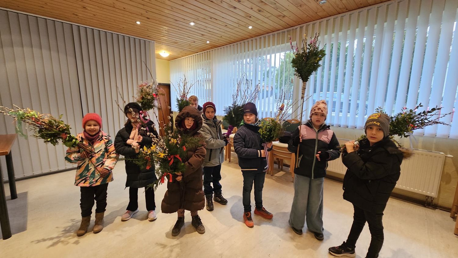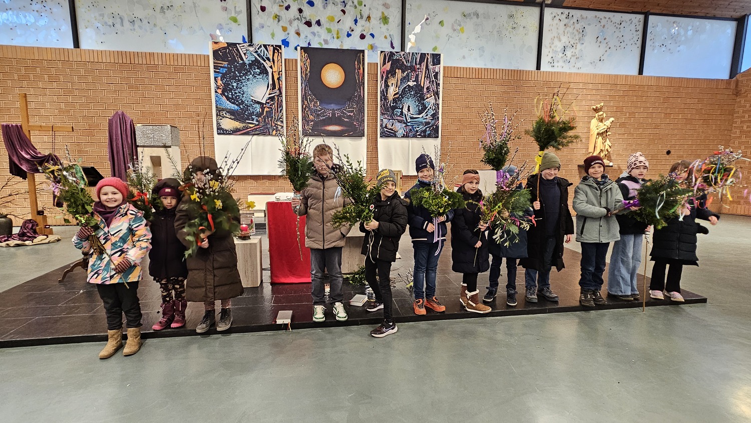 Bereits am Vortag hatten die Erstkommunionkinder ihre Palmbuschen gebunden und brachten diese voller Stolz in die Hl. Messe mit, wie man bei der Segnung der Palmbuschen und Palmzweige sehen konnte.