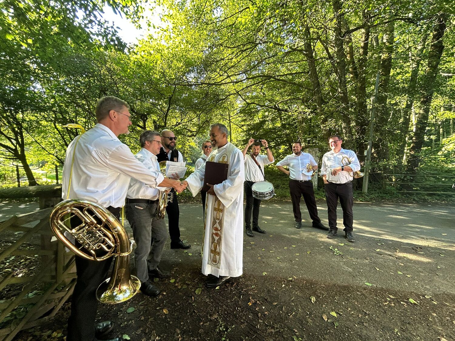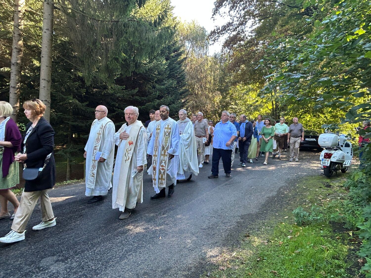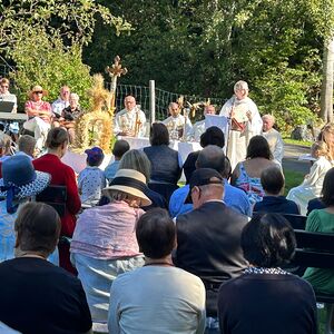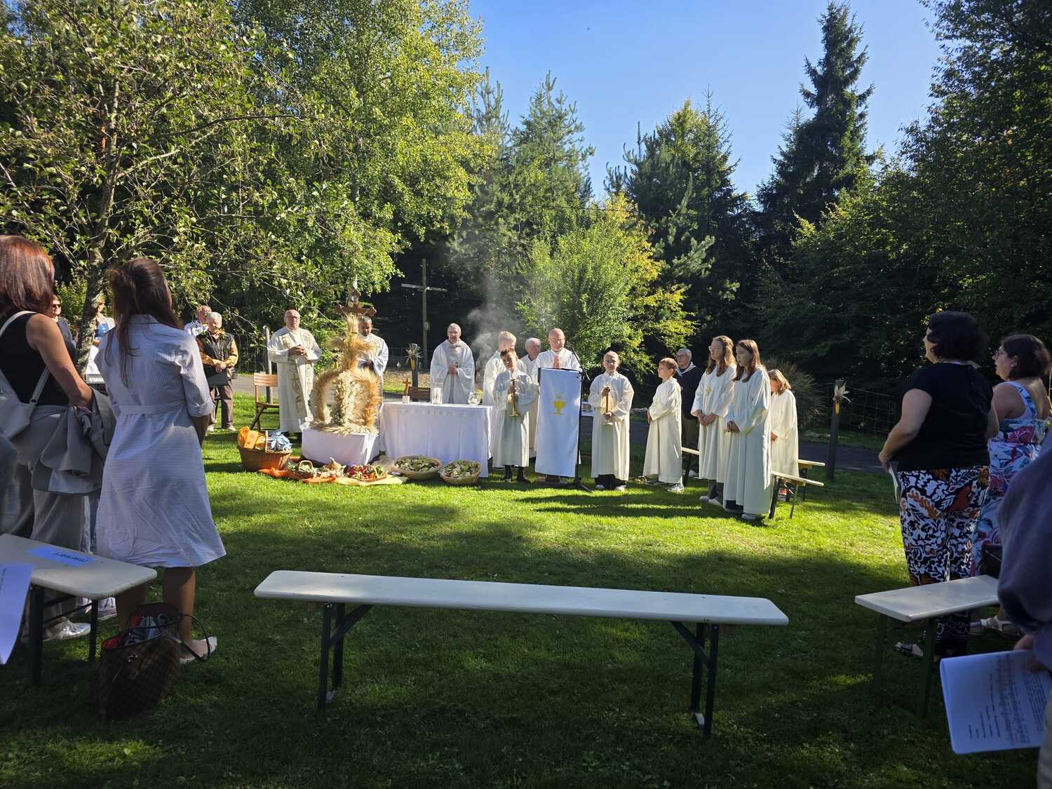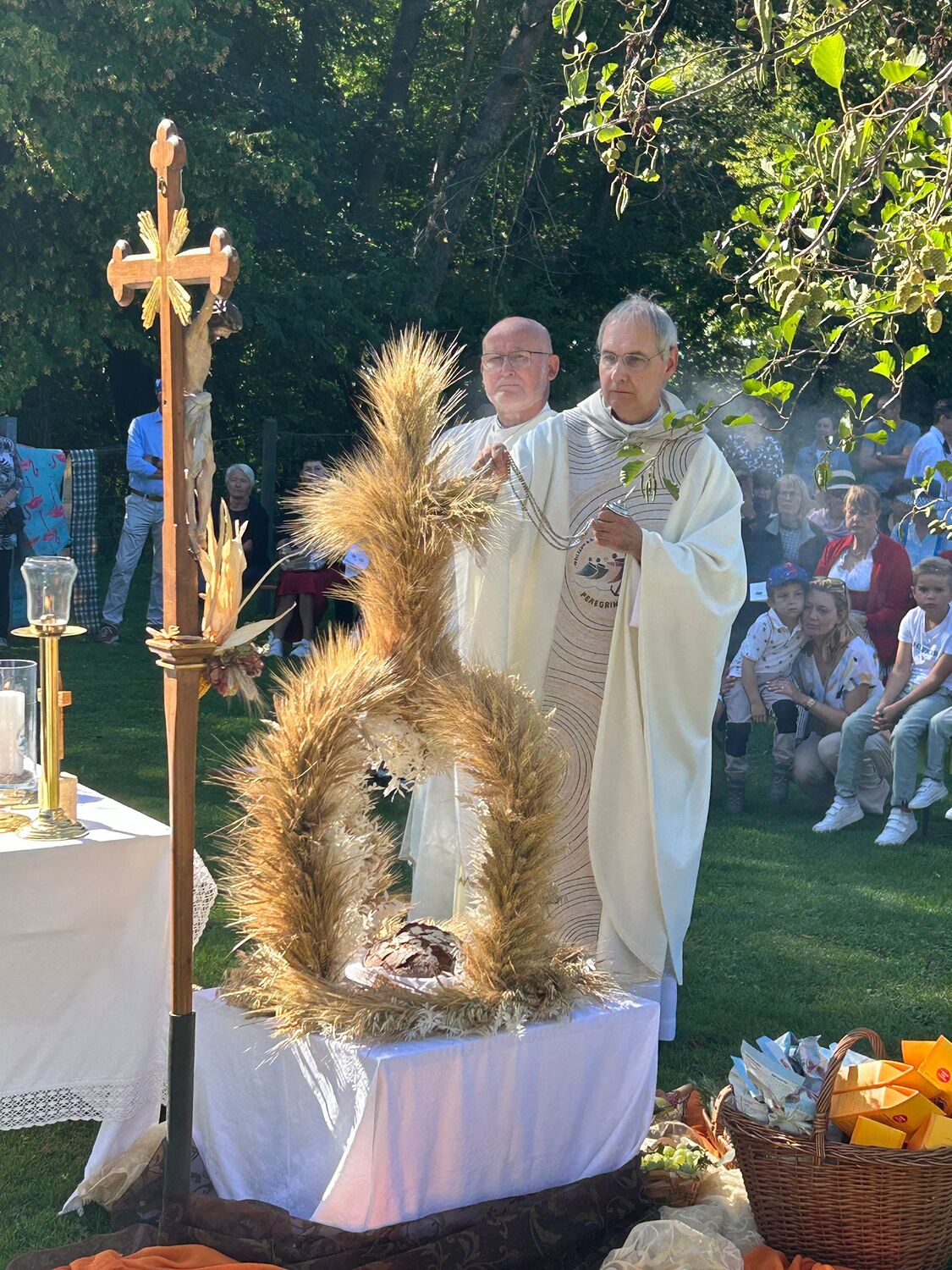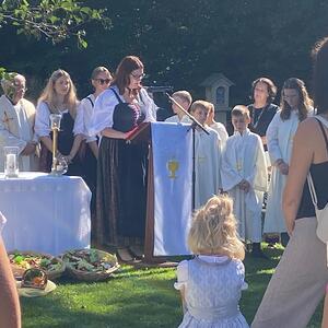 Dieses besondere Jubiläum feierten wir heuer im Rahmen des Erntedankfestes – selbstverständlich direkt am Kreuzweg. Der feierliche Festzug wurde von der Musikkapelle Kobersdorf musikalisch würdevoll angeführt. Der gemeinsame Weg begann bei der 13. Station und führte uns entlang des Weges bis zur 15. Station, wo die Heilige Messe unter freiem Himmel gefeiert wurde.