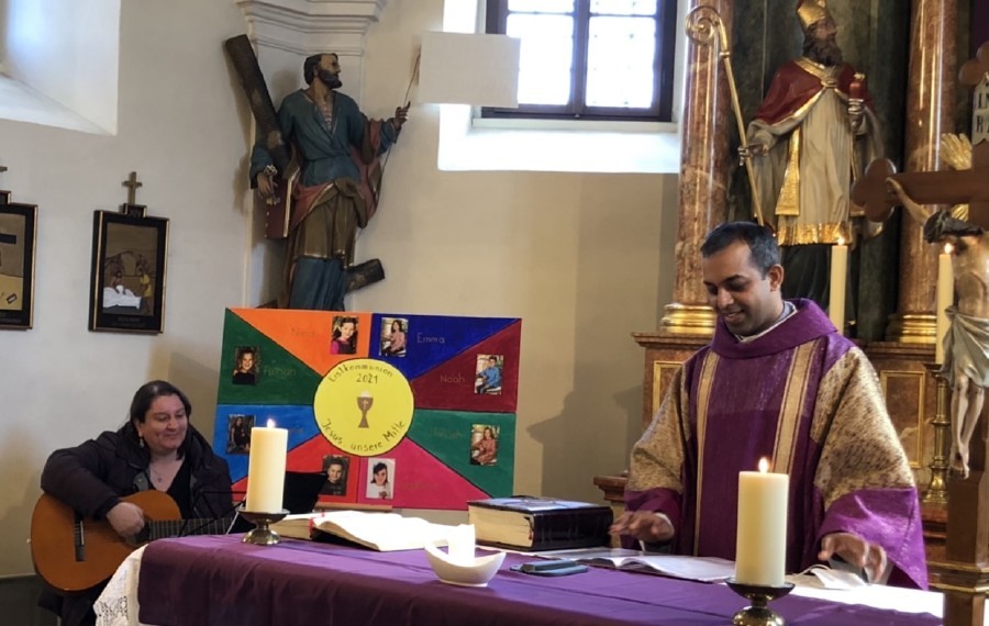 Acht Kinder aus Kobersdorf, Oberpetersdorf, Kalkgruben und Lindgraben haben mit dem Vorstellungsgottesdienst ihr Programm zur Erstkommunion-Vorbereitung begonnen.