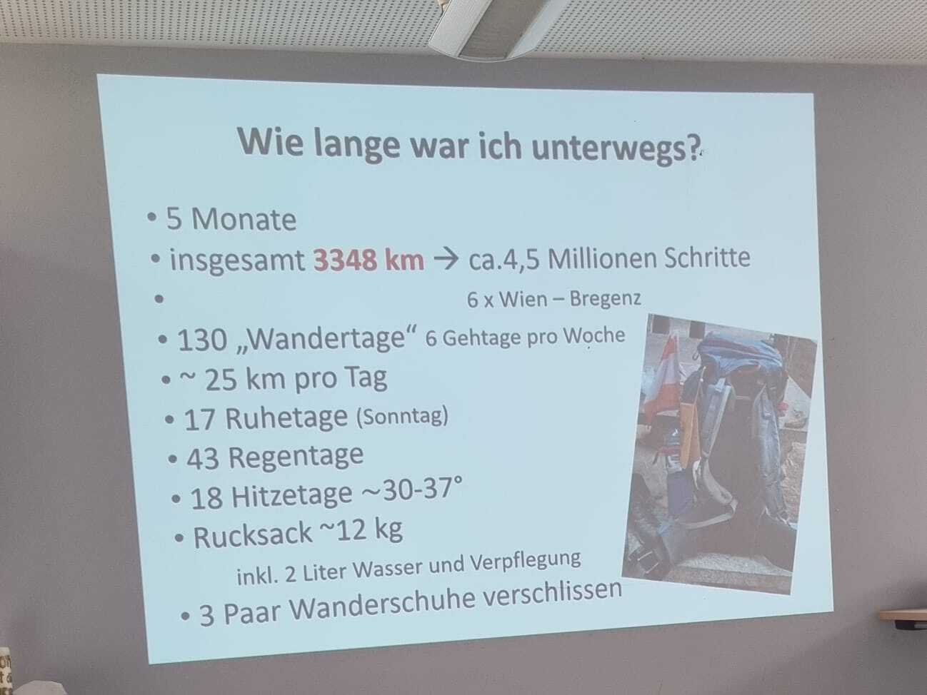 Viele interessierte Zuhörer:innen waren gekommen, um seinen persönlichen Erfahrungen, Herausforderungen und spirituellen Eindrücken zu lauschen. Der Vortrag gab nicht nur Einblick in die körperlichen und logistischen Aspekte einer solchen Pilgerreise, sondern auch in die inneren Beweggründe und Erkenntnisse, die Hermann unterwegs gesammelt hat.