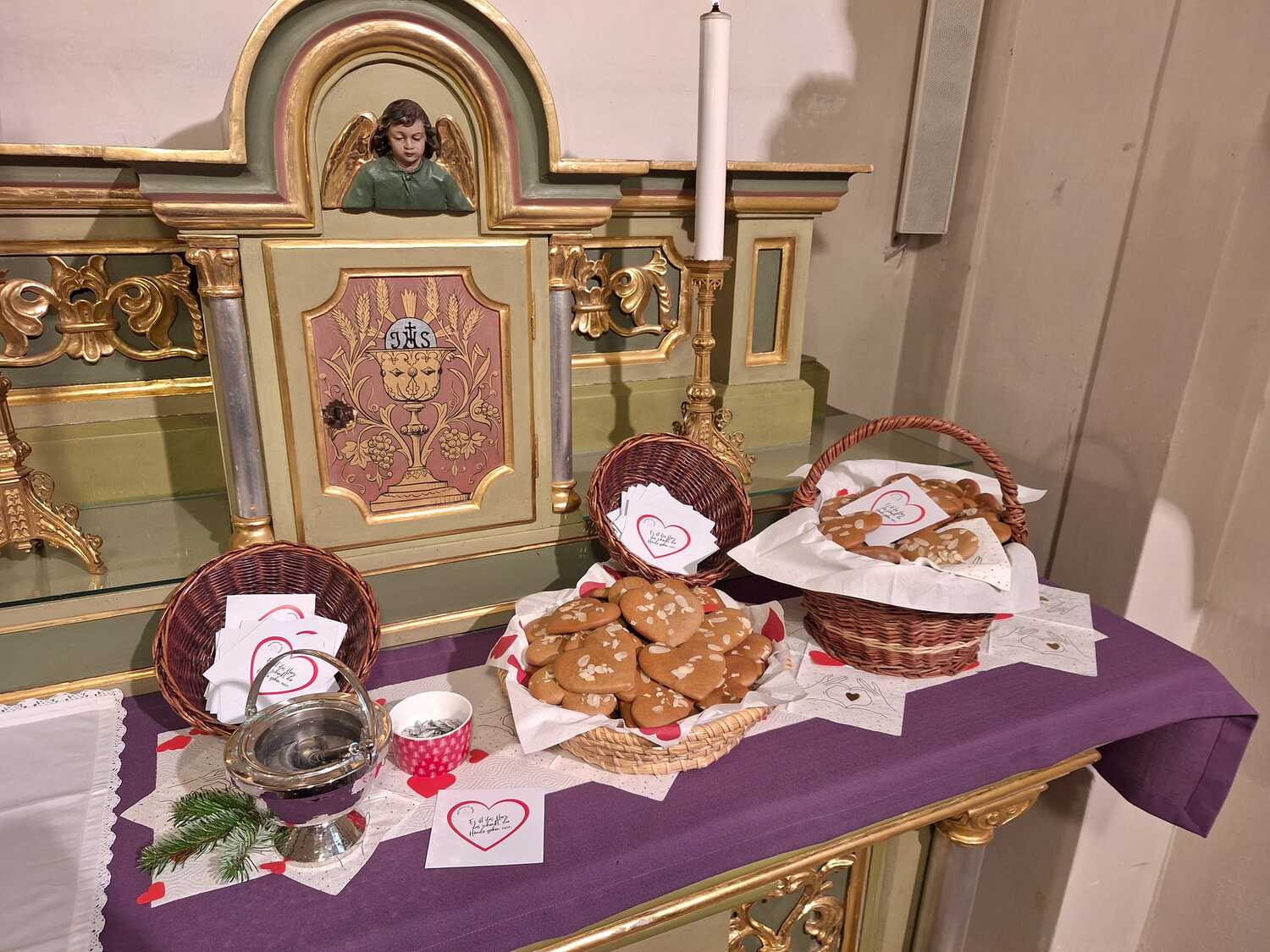 Zum Abschluss der Messe erhielt jede/r Gottesdienstbesucher:in ein Lebkuchenherz als kleines Dankeschön. Anschließend lud eine kleine Agape am Kirchenplatz dazu ein, noch miteinander ins Gespräch zu kommen und die Freude dieses besonderen Adventsonntags weiterzutragen.