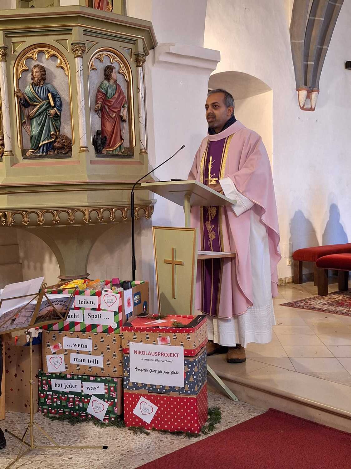 Im Rahmen des Nikolausprojektes „Teilen, teilen – das macht Spaß“ haben in den vergangenen Wochen viele Kinder, Familien und Pfarrmitglieder des gesamten Pfarrverbandes mit großem Engagement Geschenke gesammelt. Diese Gaben wurden im Gottesdienst gesegnet und im Anschluss feierlich an die Gäste übergeben – als sichtbares Zeichen der Verbundenheit, der Wertschätzung und der christlichen Nächstenliebe.