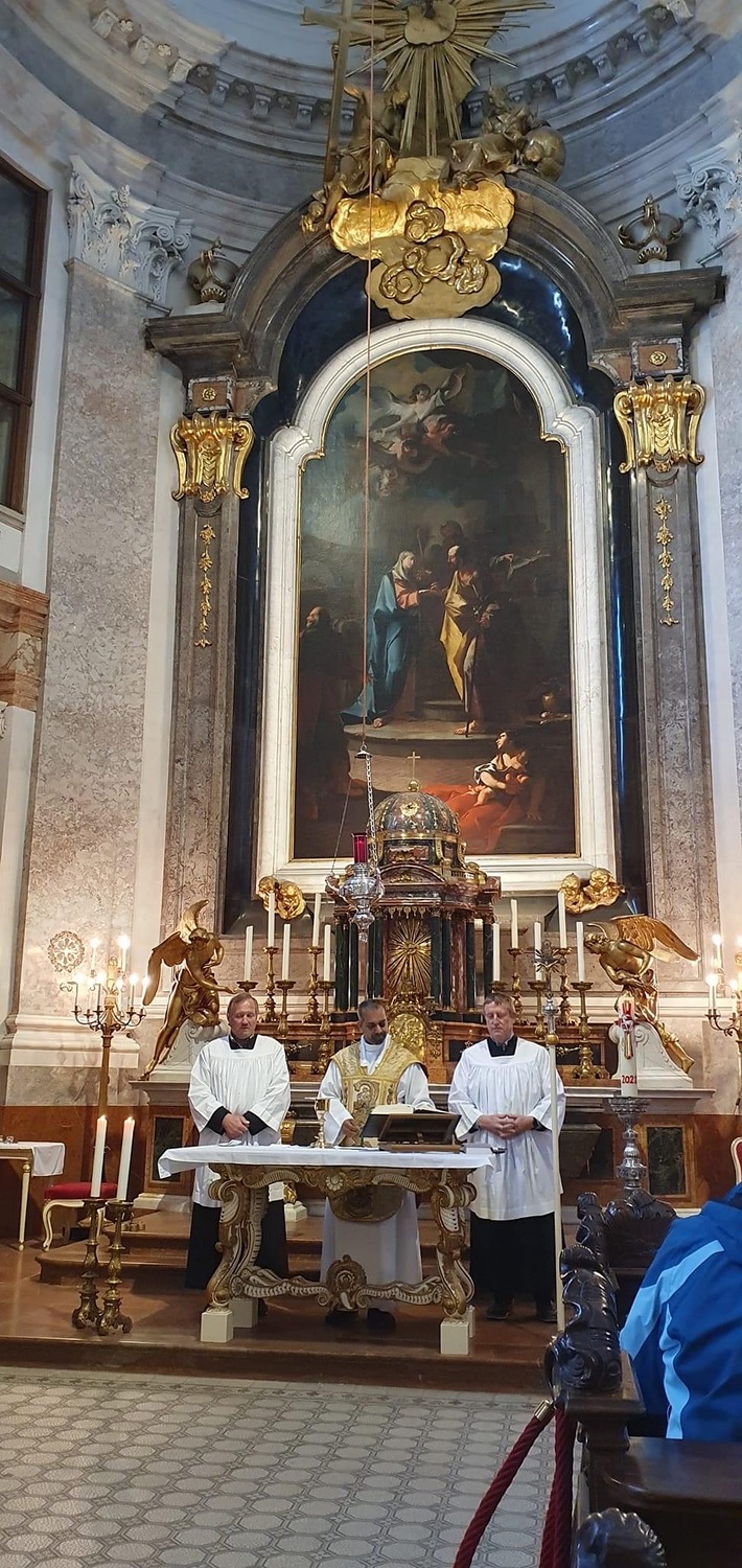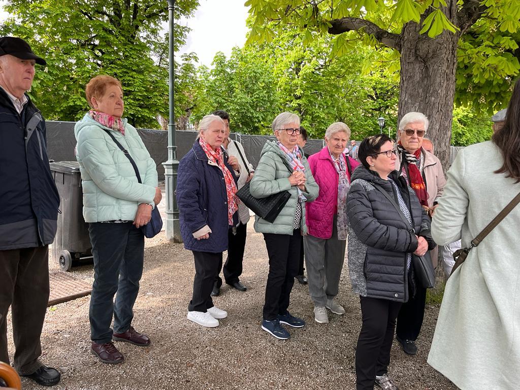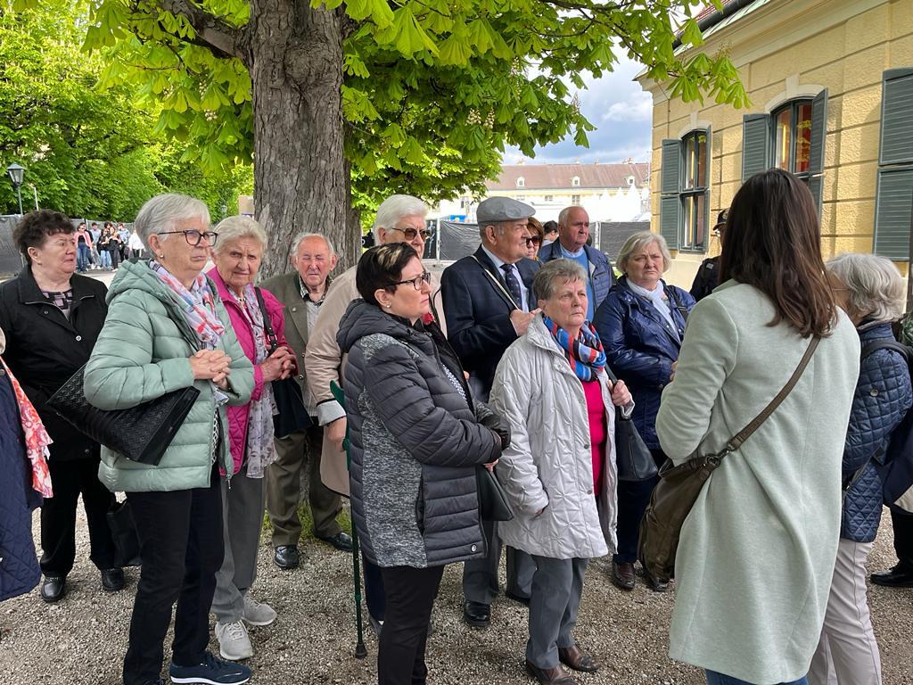 Im Anschluss an die Hl. Messe erfolgte – in zwei Gruppen – ein geführter Rundgang durch den Schlosspark und eine Besichtigung der Prunkräume des Schlosses Schönbrunn. Nach dem Mittagessen ging es mit dem Bus über die Höhenstraße zum Kahlenberg, wo die Gläubigen einen herrlichen Ausblick auf die Bundeshauptstadt Wien genießen konnten. Ein Muss war natürlich auch eine Kurzvisite in der St. Josef-Kirche am Kahlenberg.