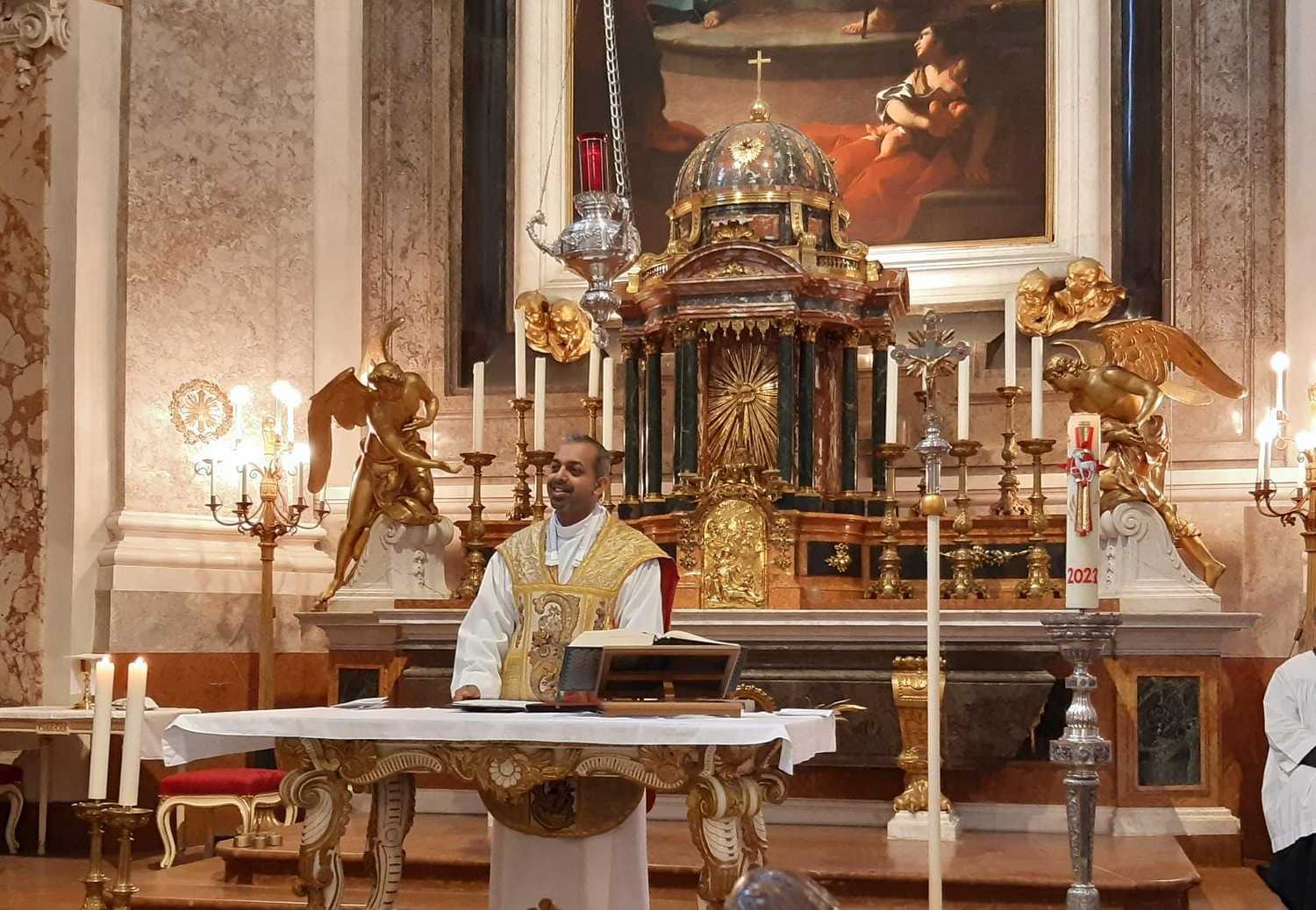 Am Samstag, dem 29. April 2023, veranstaltete der Pfarrverband Kobersdorf-Weppersdorf-Lackenbach, unter der Leitung von Pfarrer Mag. Shinto Varghese Michael, eine Tagesfahrt nach Wien. Um 9.00 Uhr feierte Pfarrer Shinto mit den Reiseteilnehmern einen Gottesdienst zum Thema DANKBARKEIT in der prächtigen Kapelle von Schloss Schönbrunn. Als Ministranten fungierten der Feuerwehrkommandant von Kobersdorf, Gerhard Klafsky und Werner Schock.