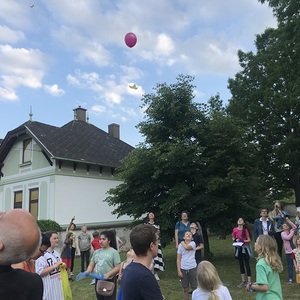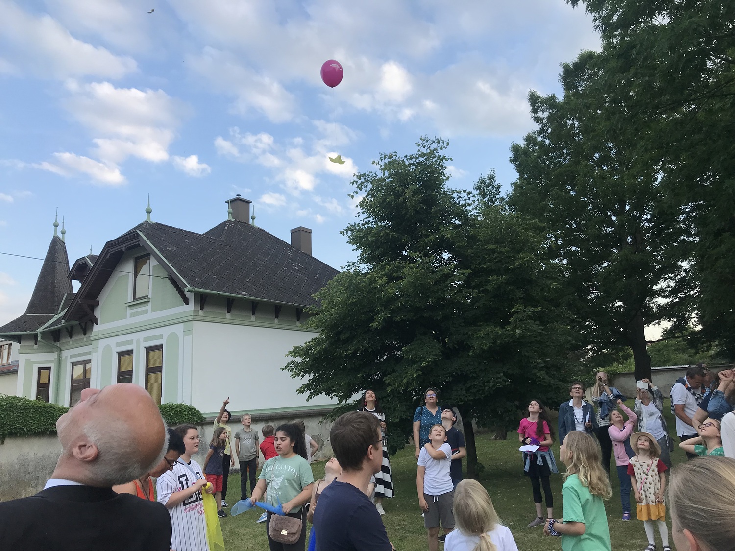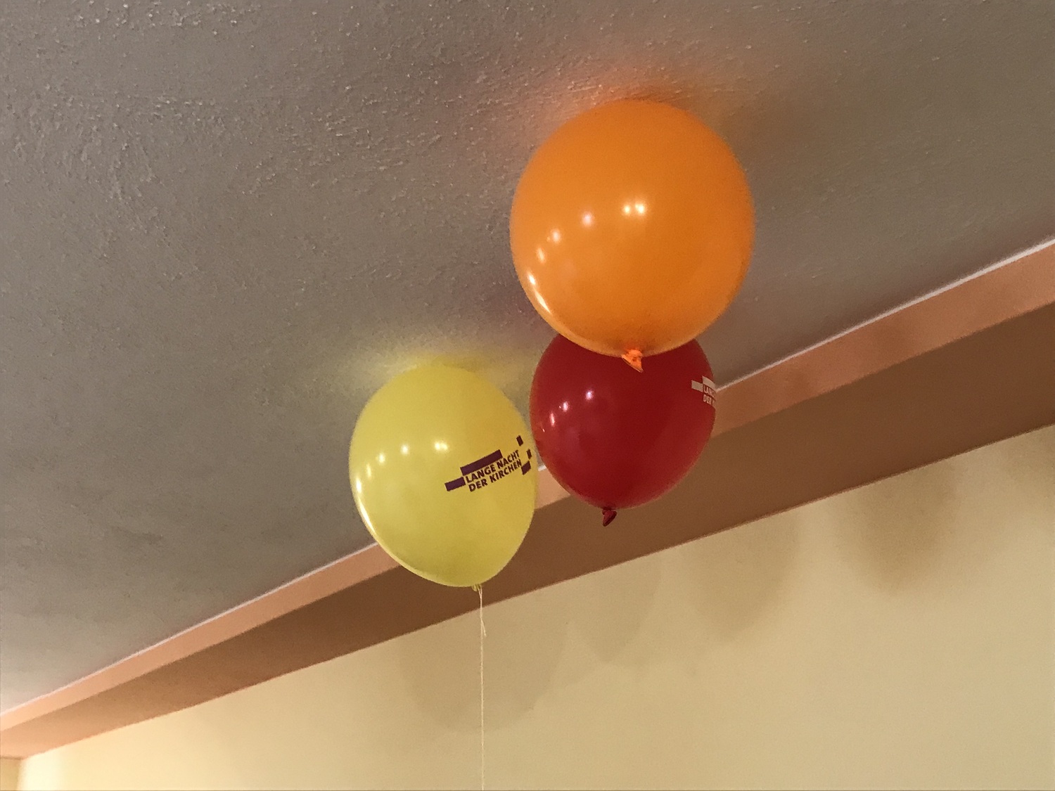 Nach kurzem Fußweg in Richtung evangelische Kirche wurden wir mit Glockengeläut am Martin Luther Platz von den Kindern empfangen. Eine köstliche Agape war bereits von der katholischen Jugend vorbereitet. Nach dem Steigen der Luftballone zum Zeichen des Friedens wurde in der evangelischen Kirche das weitere Programm dargeboten.