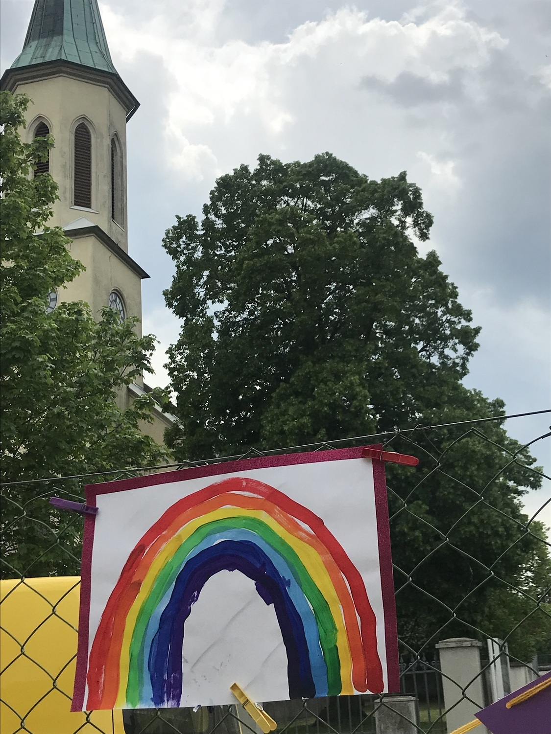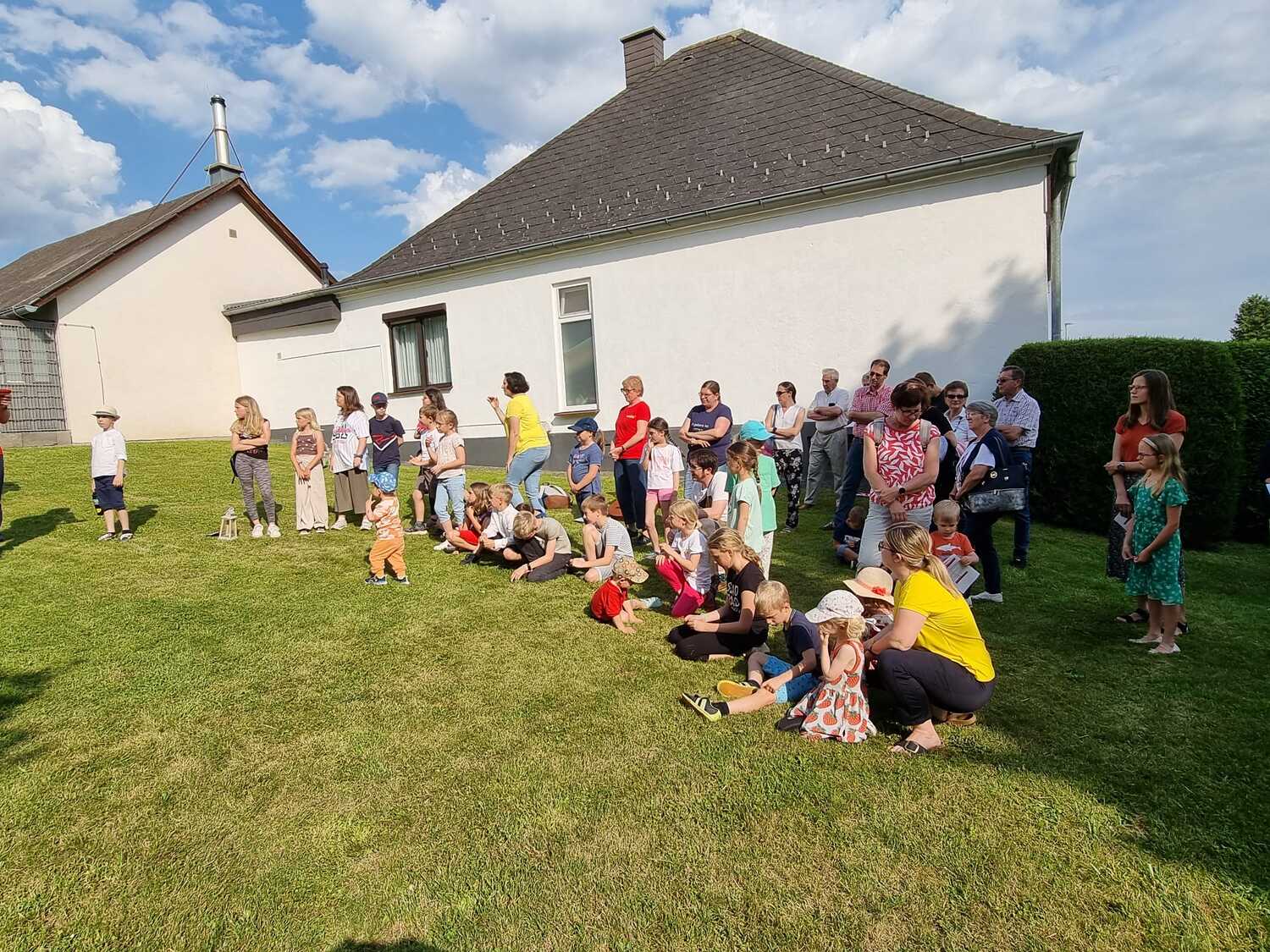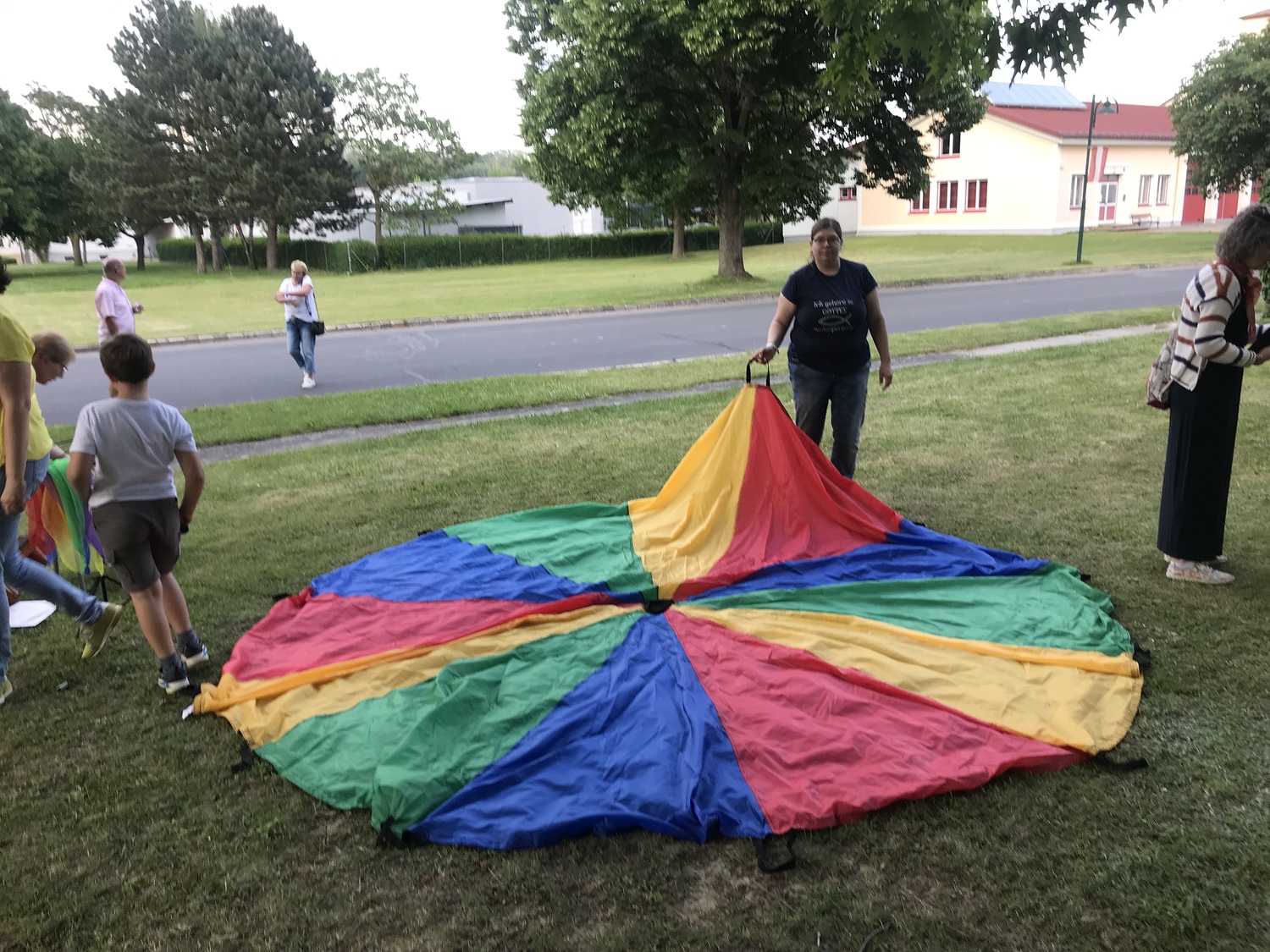 Mit einer Kerzen- und Laternenwanderung ging es nun zum Kirchenhof der katholischen Kirche. Diese war bereits in Regenbogenfarben sehr feierlich beleuchtet. Das Musikprogramm mit Bläsern und der Sängergruppe der Familie Tröscher war sehr vielfältig und unterhaltsam.