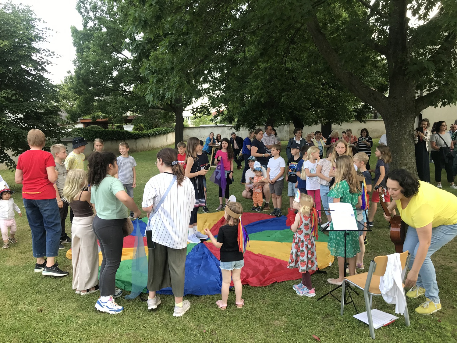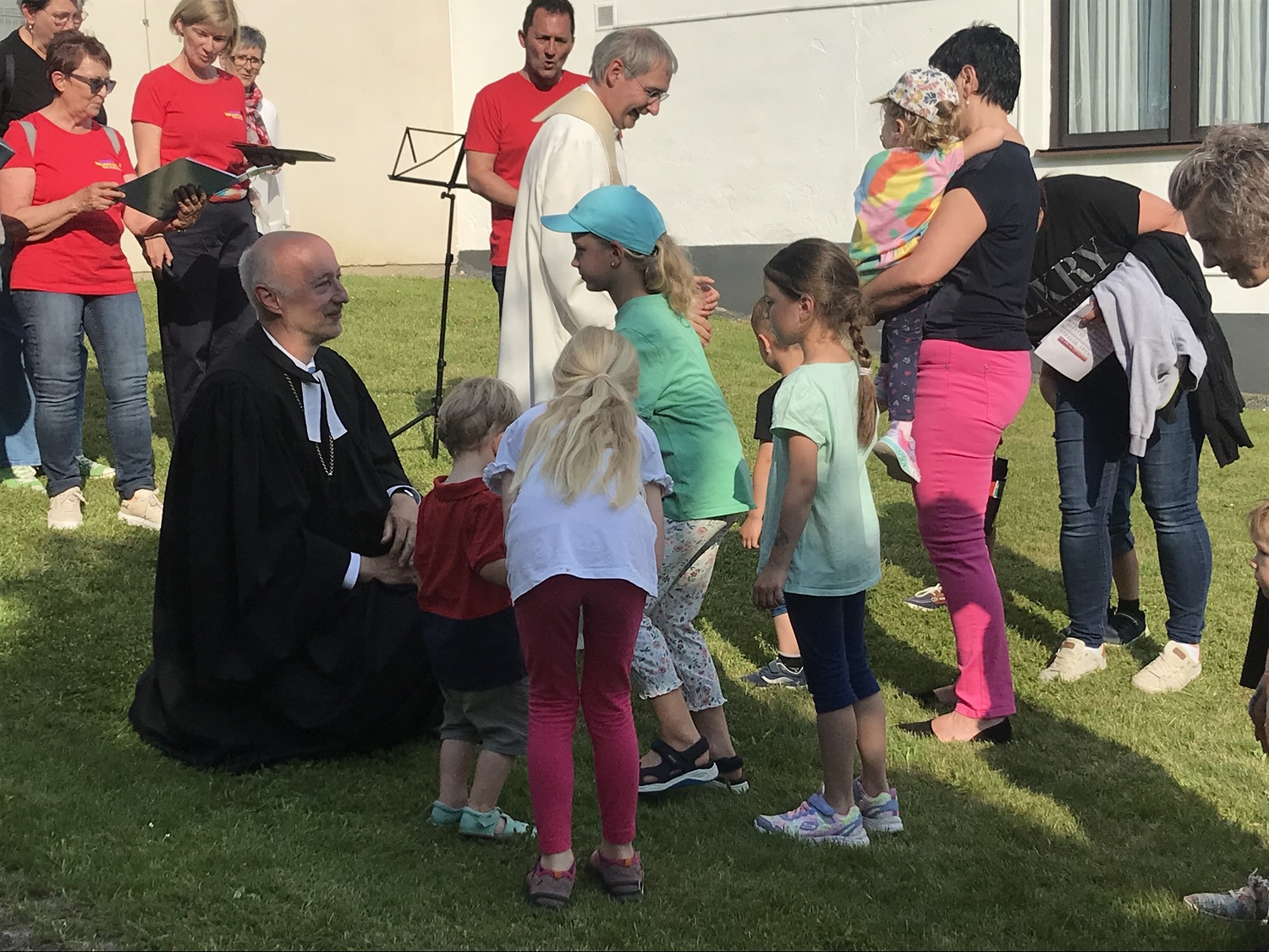 Nach der Kindersegnung zogen die zahlreichen Kinder zum evangelischen Gemeindezentrum, um dort ein großartiges Kinderprogramm nach dem Motto „Lasst die Kinder zu mir kommen“ gestalten und genießen zu können. Die nächste Station führte die Besucher:innen zur Schlosskapelle des bekannten Wasserschlosses von Kobersdorf. Es begrüßte uns die Eigentümerin Frau Anna Schlanitz-Bolldorf. Im Zuge des geschichtlichen Vortrages und anschließender Führung konnte die historische Schlosskapelle besucht werden. Ganz besonders freuten wir uns über den Besuch von Sr. Consolata Supper, Provinzoberin vom Orden der Schwestern vom göttlichen Erlöser der Stadtpfarre Eisenstadt Oberberg. Musikalische Beiträge der Kirchenchöre Oberpetersdorf und Kobersdorf sowie besinnliche Meditationen in der Schlosskapelle rundeten diesen Programmpunkt ab.
