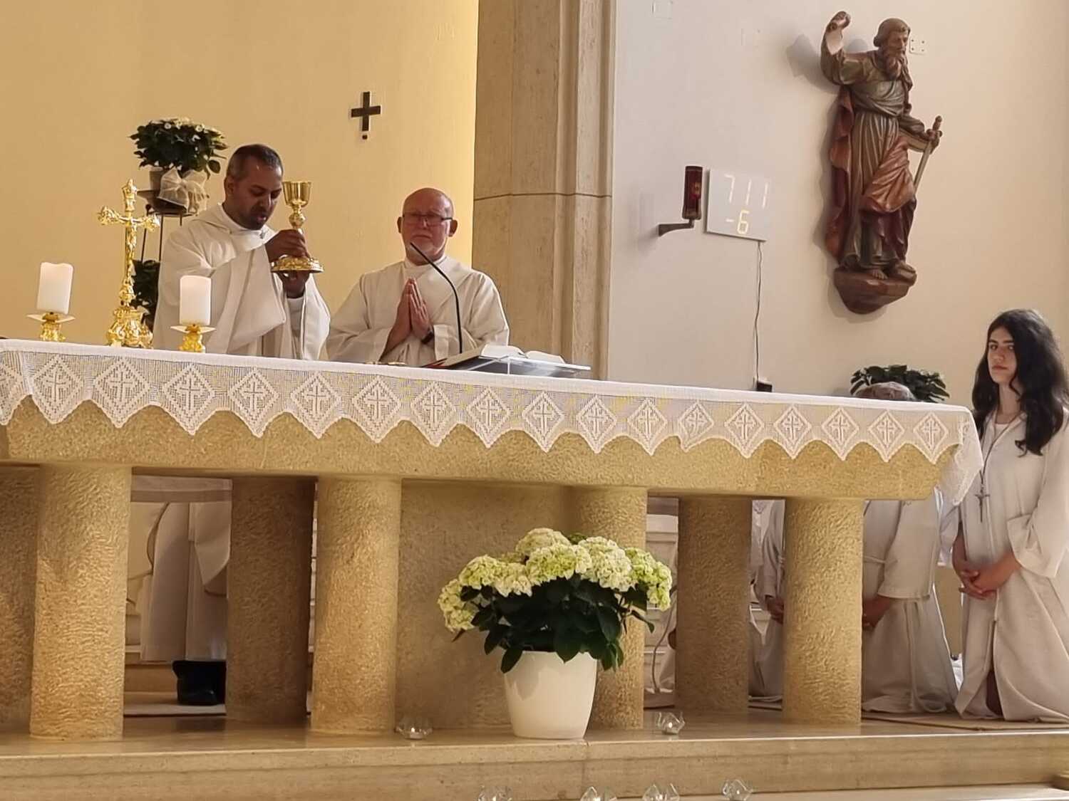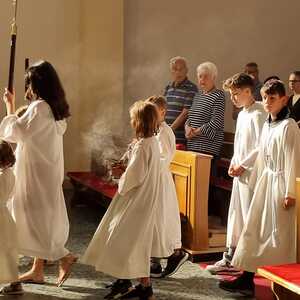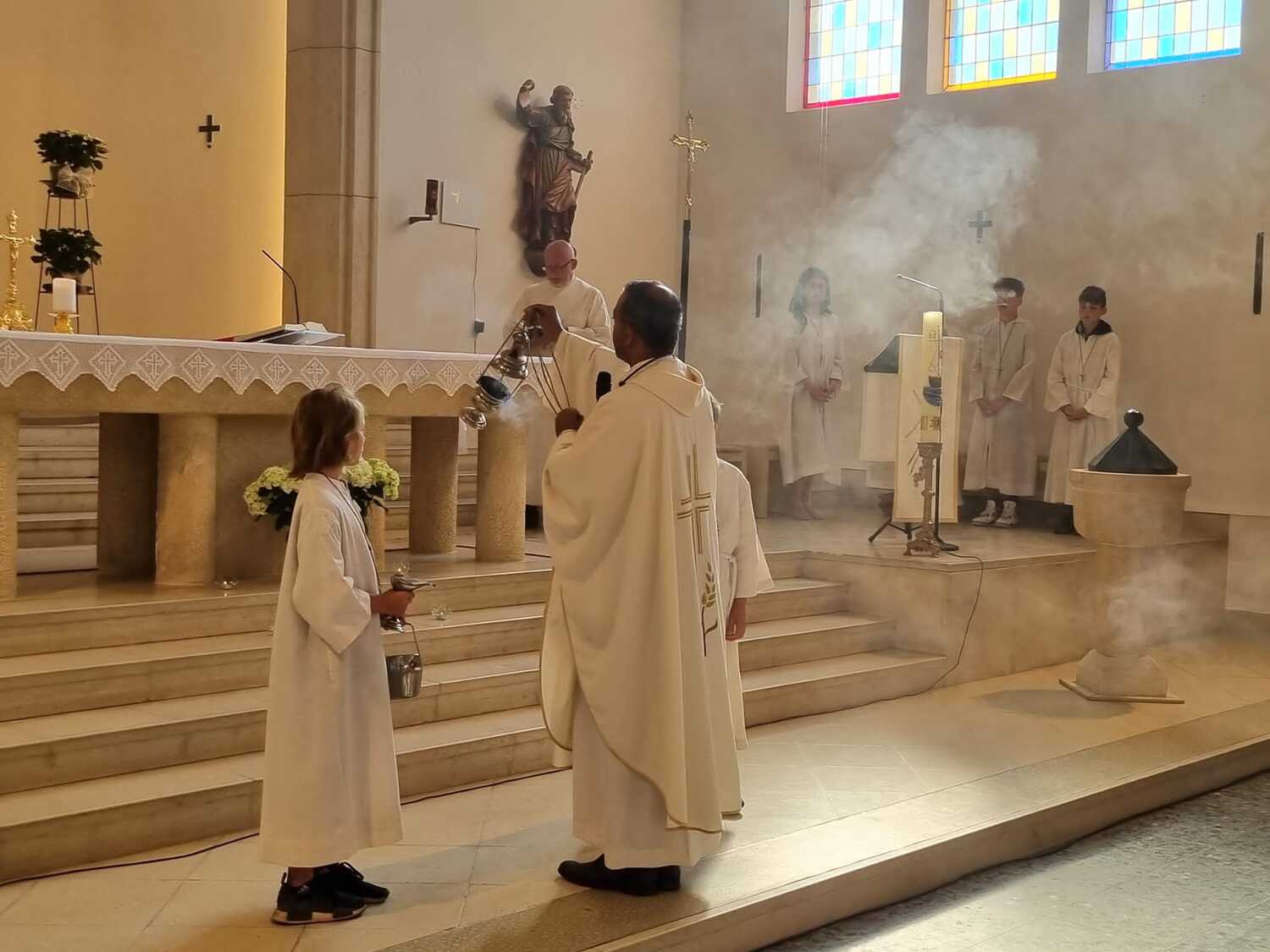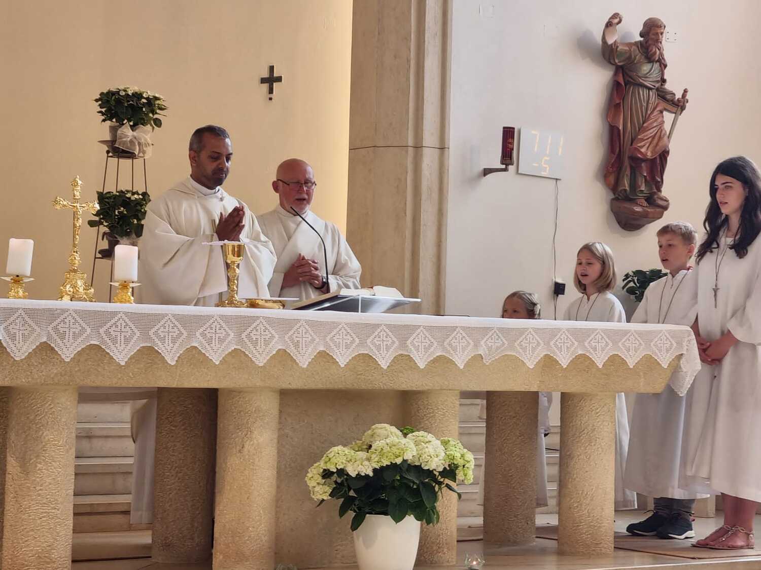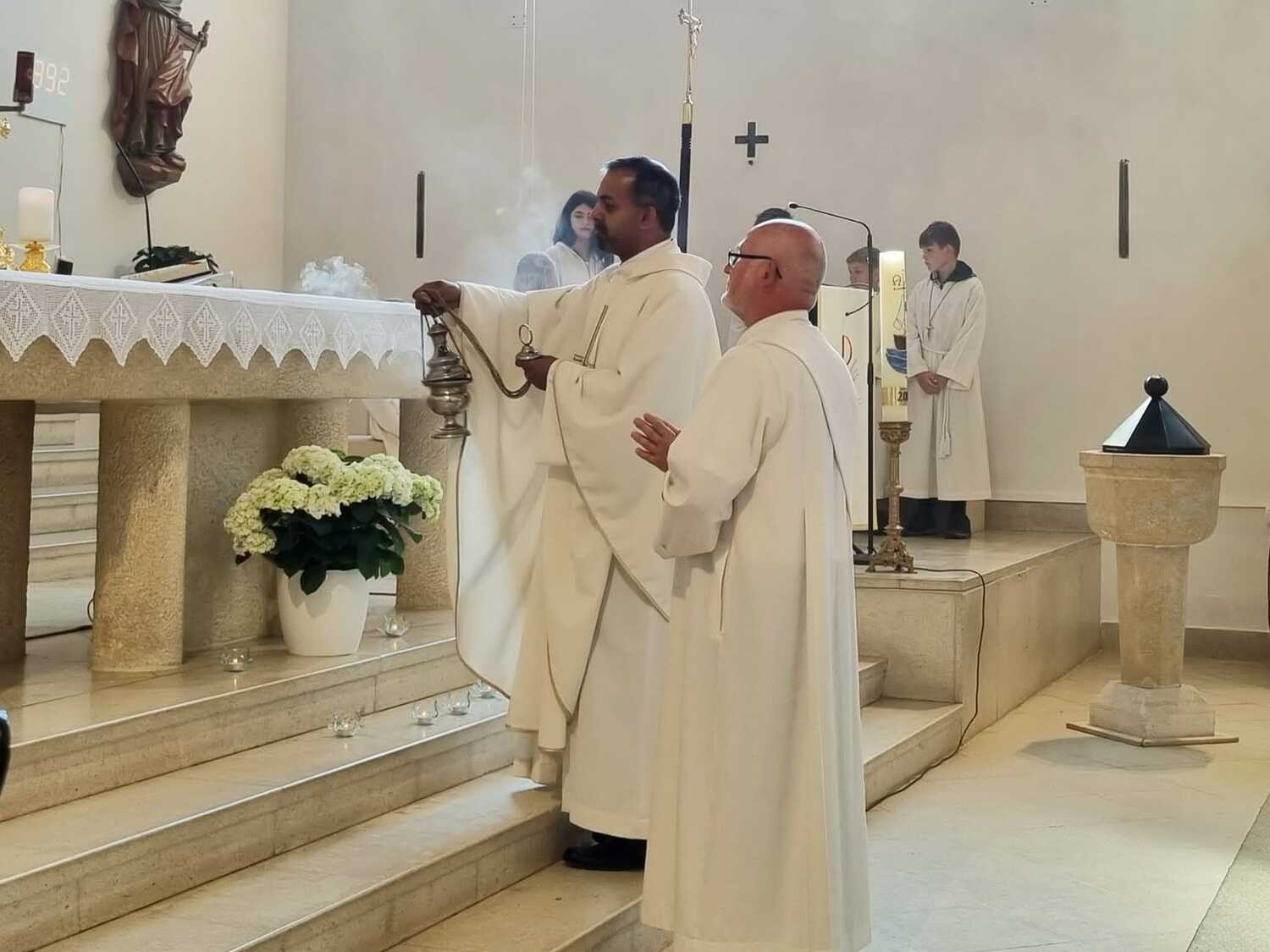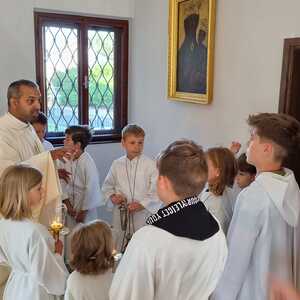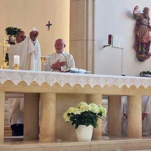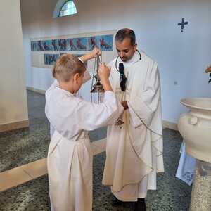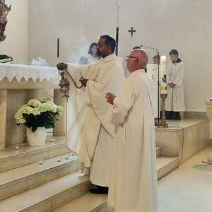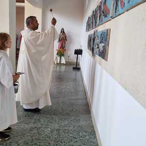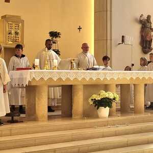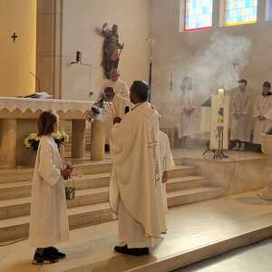 Nachdem der Kircheninnenraum nun in neuem Glanz erstrahlt, war es eine besondere Freude, dass gerade am Patroziniumsfest – zu Ehren der Apostel Petrus und Paulus - der erste Gottesdienst wieder in der Pfarrkirche gefeiert werden konnte und Pfarrer Shinto die Segnung des neu renovierten Kirchenraumes übernahm.