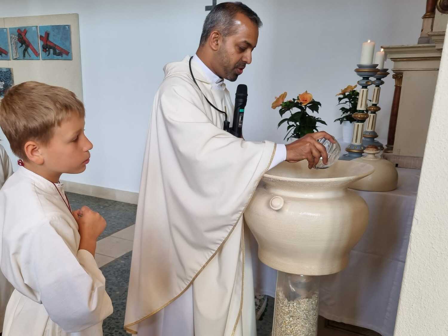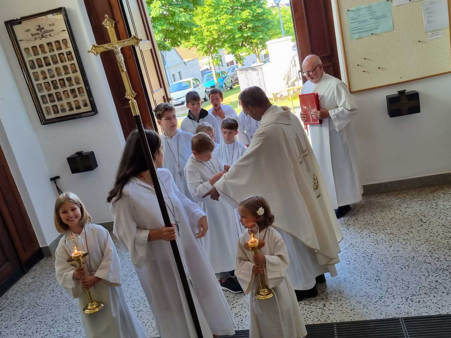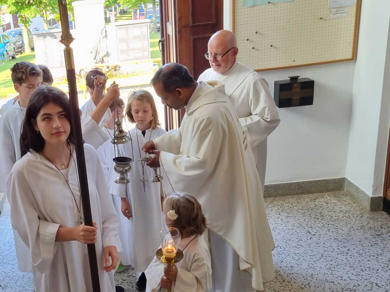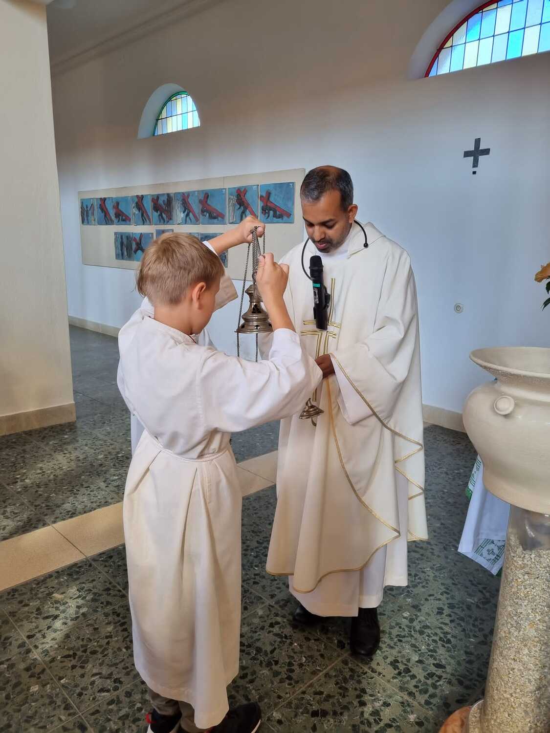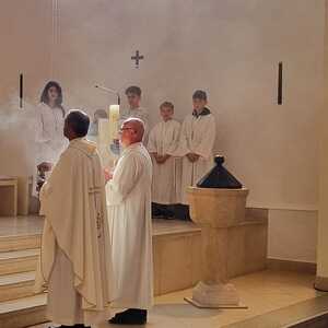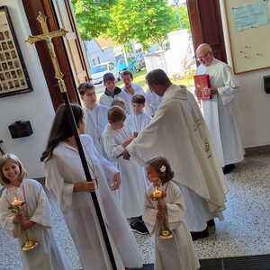 Nachdem der Kircheninnenraum nun in neuem Glanz erstrahlt, war es eine besondere Freude, dass gerade am Patroziniumsfest – zu Ehren der Apostel Petrus und Paulus - der erste Gottesdienst wieder in der Pfarrkirche gefeiert werden konnte und Pfarrer Shinto die Segnung des neu renovierten Kirchenraumes übernahm.