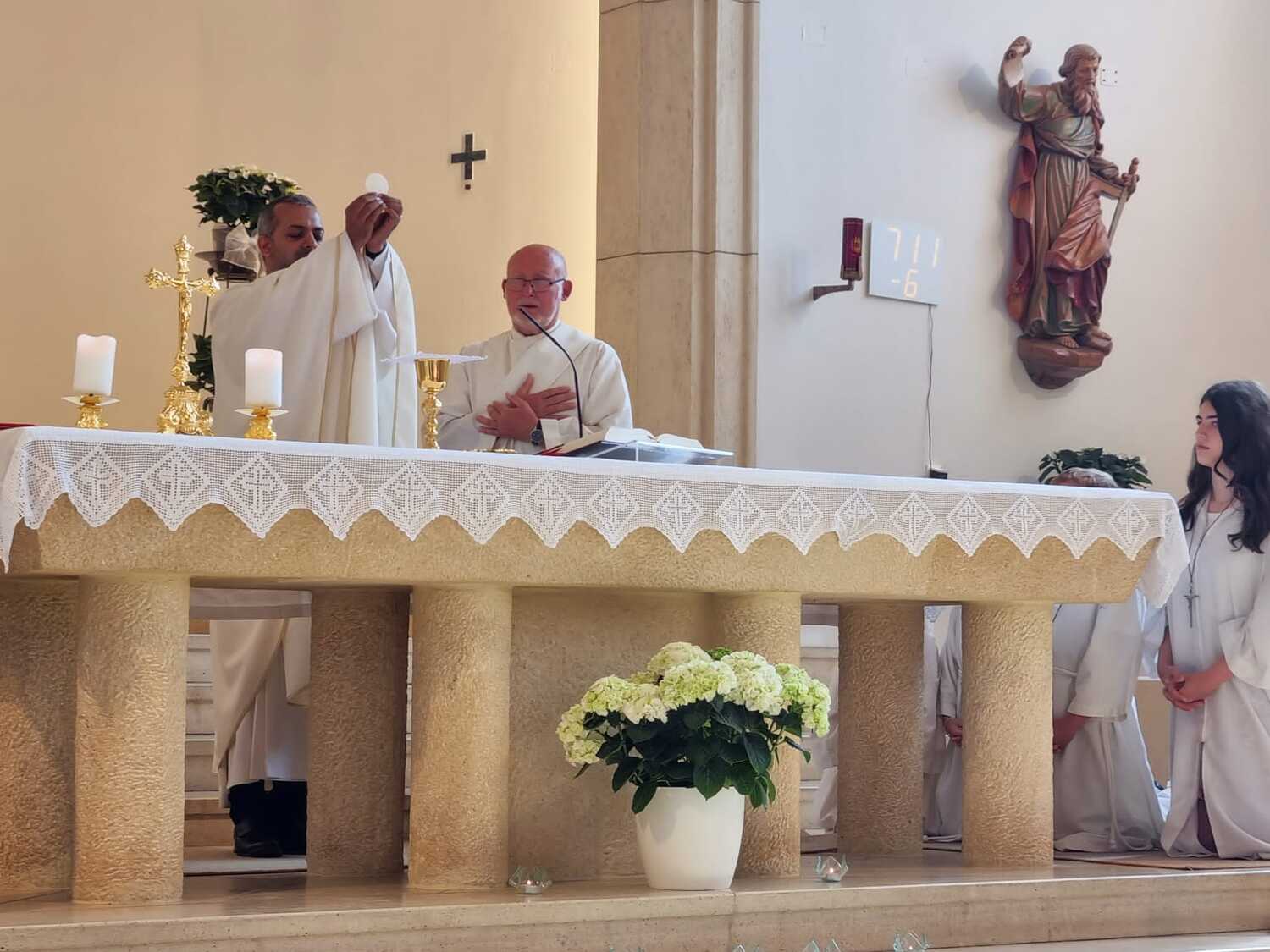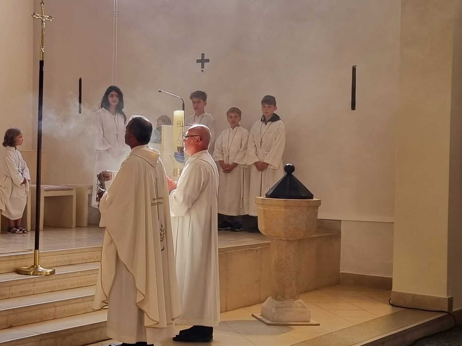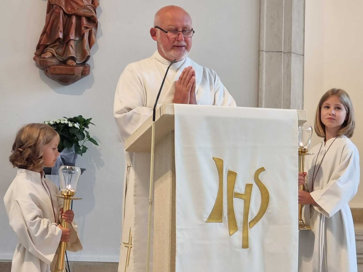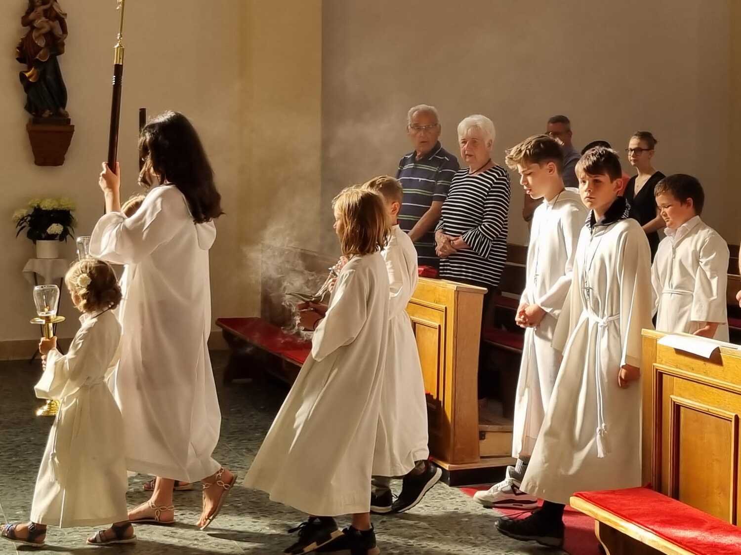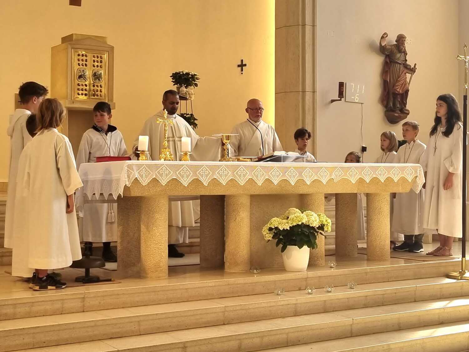 Nachdem der Kircheninnenraum nun in neuem Glanz erstrahlt, war es eine besondere Freude, dass gerade am Patroziniumsfest – zu Ehren der Apostel Petrus und Paulus - der erste Gottesdienst wieder in der Pfarrkirche gefeiert werden konnte und Pfarrer Shinto die Segnung des neu renovierten Kirchenraumes übernahm.