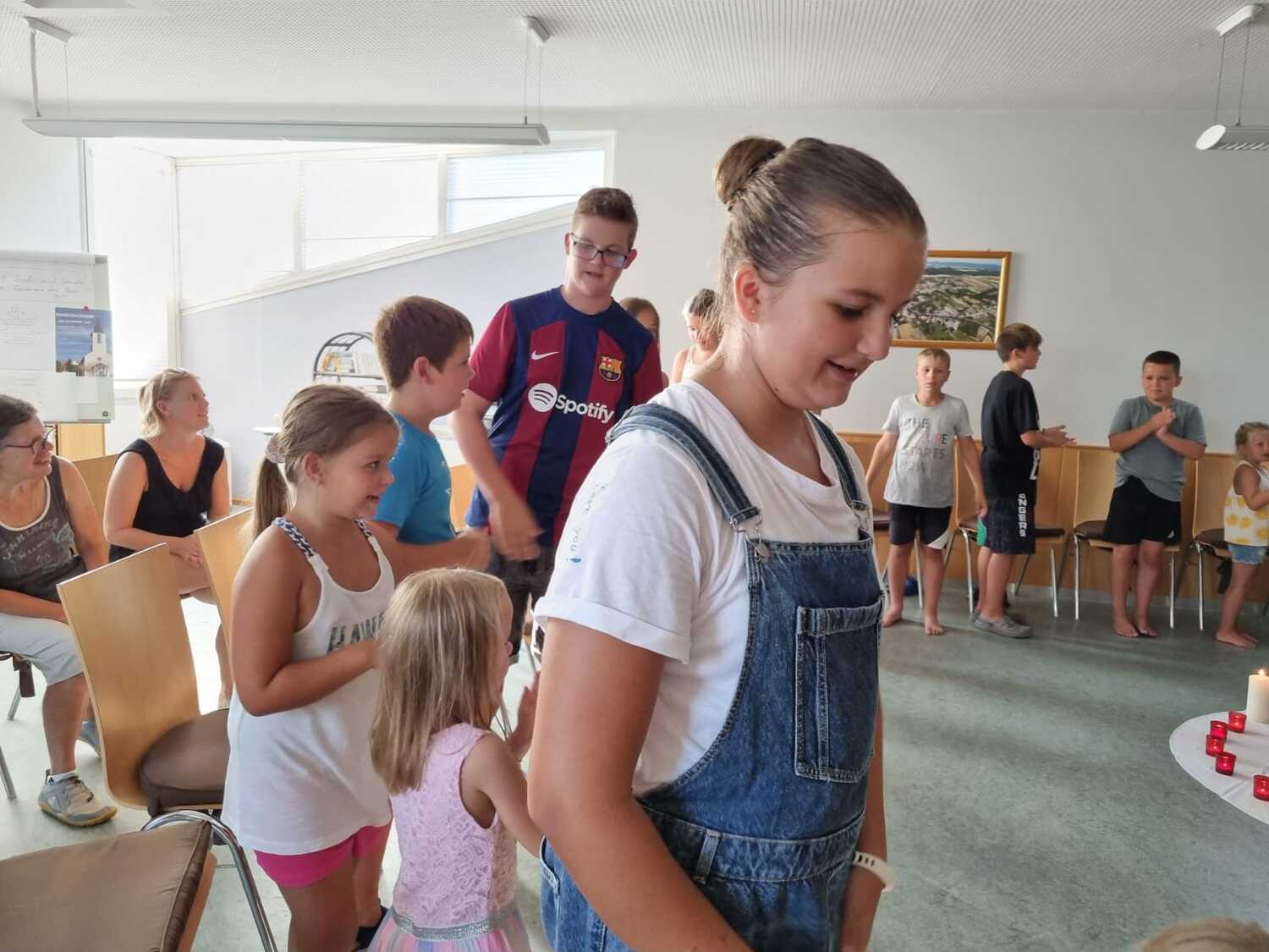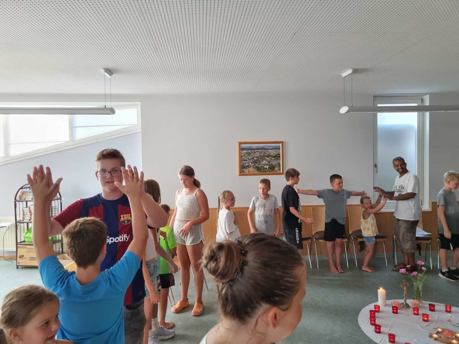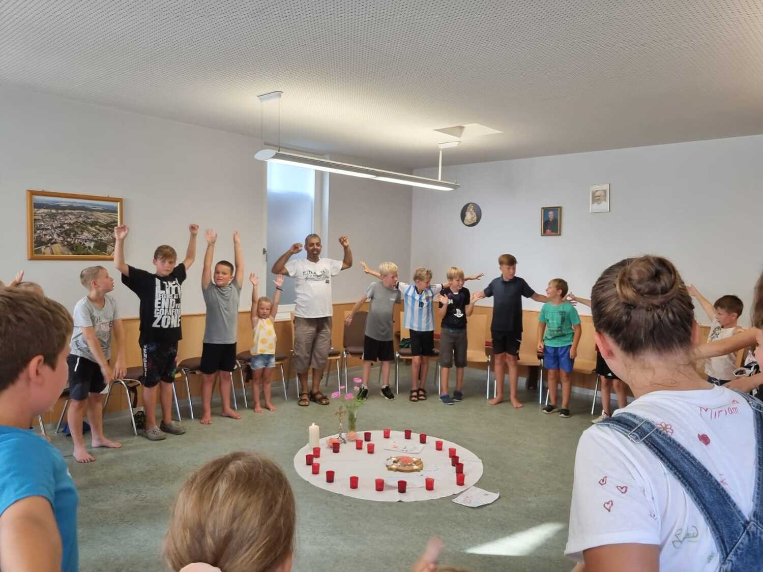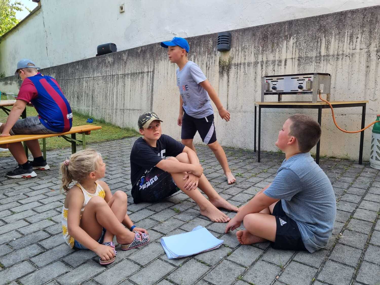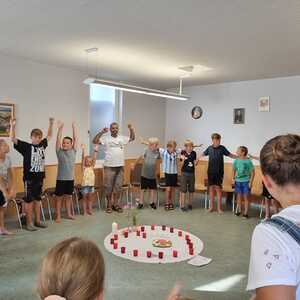 Um 17 Uhr trafen wir uns zu einer gemeinsamen Andacht im Pfarrsaal, wo wir zusammen unser Abendgebet sprachen. Anschließend wurde im Hof gegrillt und wir konnten beim gemeinsamen Abendessen den Tag ausklingen lassen.