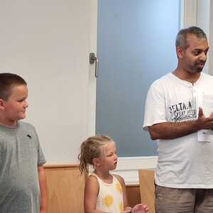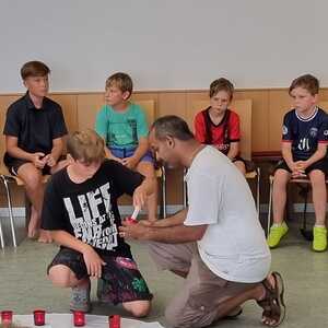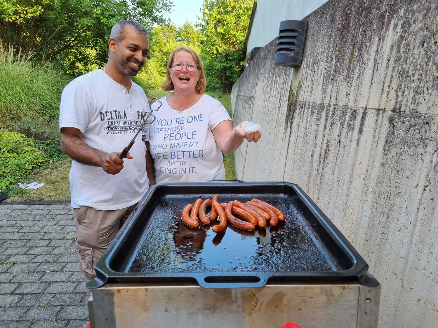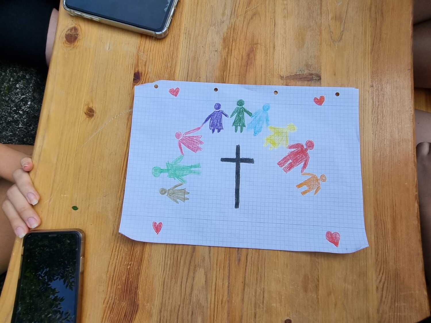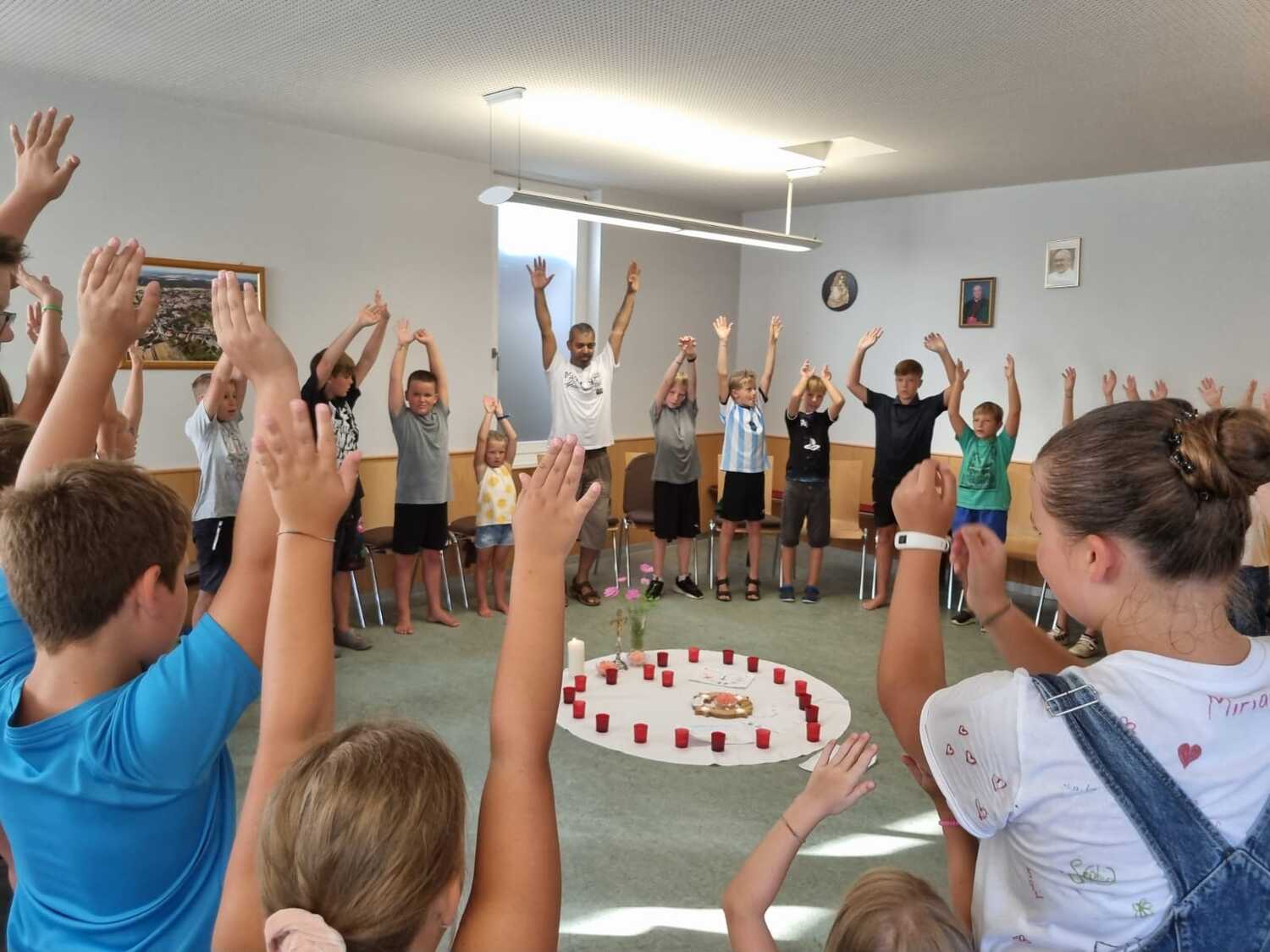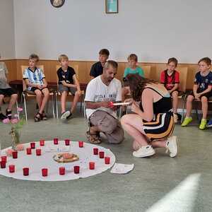Um 17 Uhr trafen wir uns zu einer gemeinsamen Andacht im Pfarrsaal, wo wir zusammen unser Abendgebet sprachen. Anschließend wurde im Hof gegrillt und wir konnten beim gemeinsamen Abendessen den Tag ausklingen lassen.