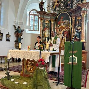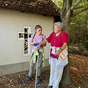 Bei der 1. Station ein Marterl mit einer Pietastatue wurden meditative Gedanken und Gebete gelesen und ein Marienlied gesungen. Danach ging es weiter Richtung Lindgraben zum Ökumenischen Kreuz. Bei zwei weiteren Stationen war Zeit zum Innehalten. Angeleitet durch meditative Texte, Gesprächsanregungen bzw. auch in Stille nachzudenken ging es weiter bis zur Florianikapelle.