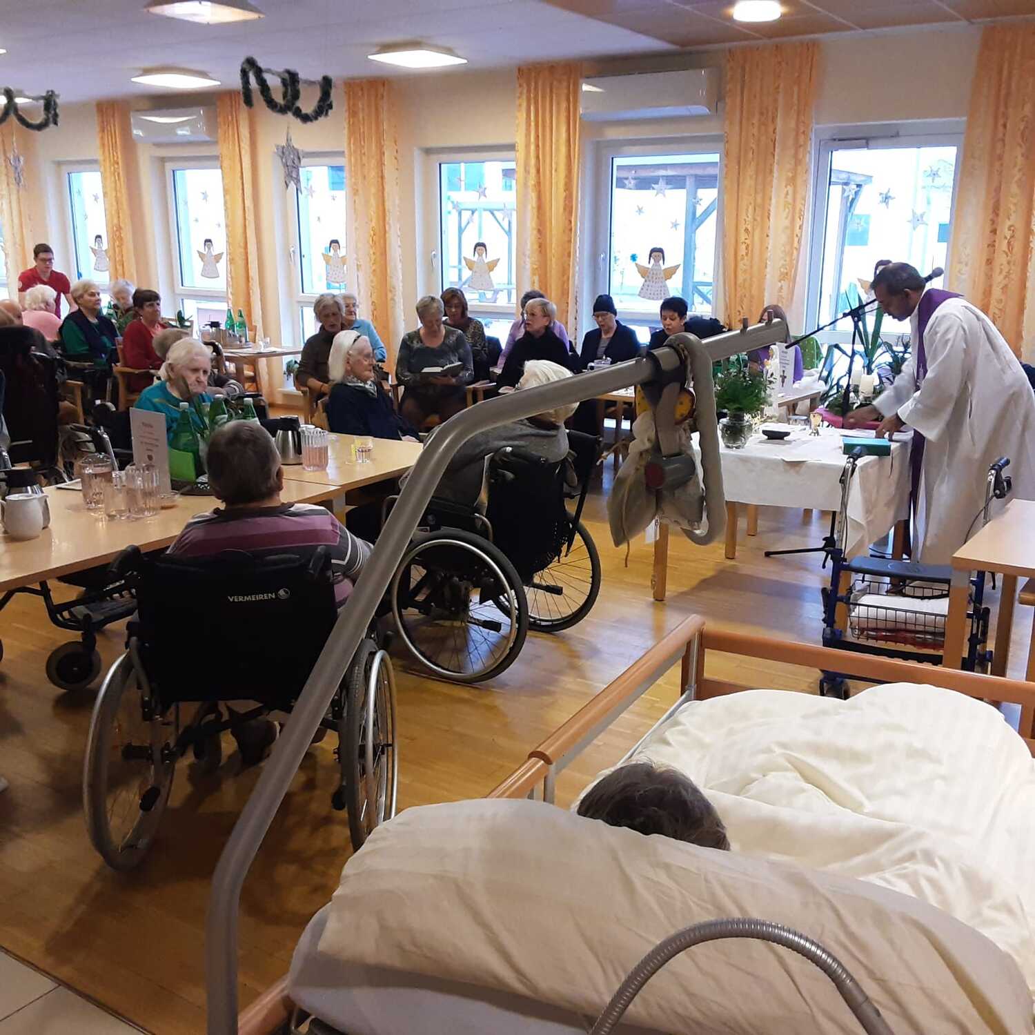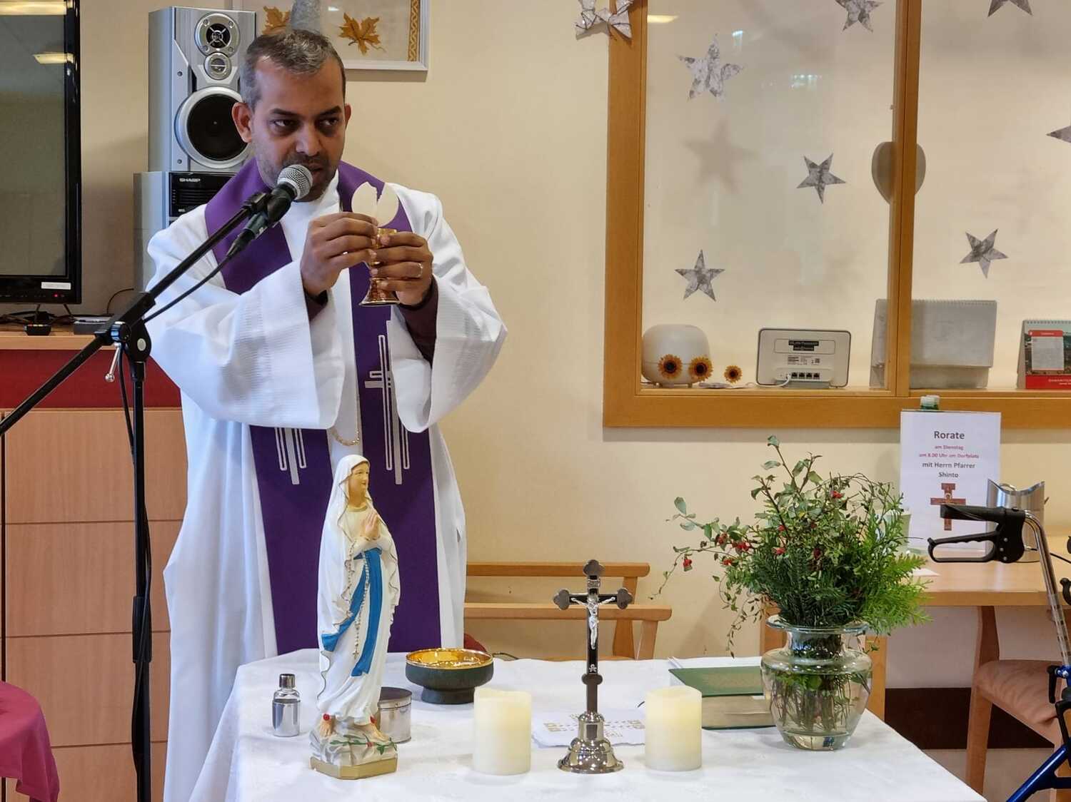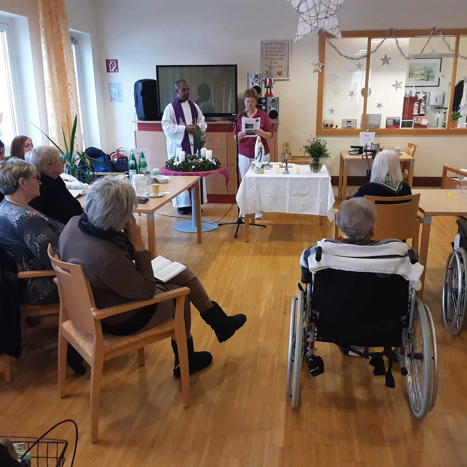 Heuer durften wir das 1. Mal auch im Lackenbacher Pflegekompetenzzentrum eine Rorate feiern. Die vielen Mitarbeiter haben sich bereit erklärt, die Seniorinnen und Senioren schon frühmorgens für die Teilnahme an der Messfeier vorzubereiten.