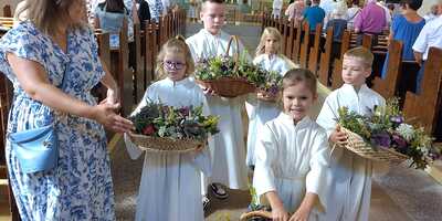 Ministrant:innen verteilten Kräutersträußchen