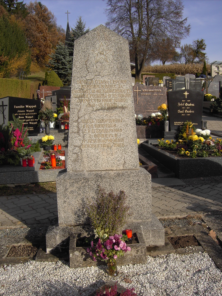 Am Friedhof befindet sich ein Grab von gefallenen Soldaten der Sowjetarmee von den Kämpfen im Frühjahr 1945 mit der Deutschen Wehrmacht.