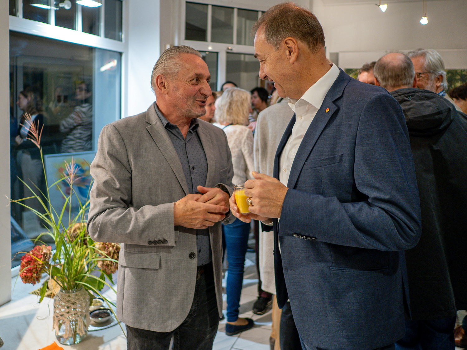 Die feierliche Eröffnung nahmen Landesrat Dr. Leonhard Schneemann und Bürgermeister Harry Kahr vor. Zahlreiche Gäste und Freunde der Galerie sorgten für eine stimmungsvolle Atmosphäre.