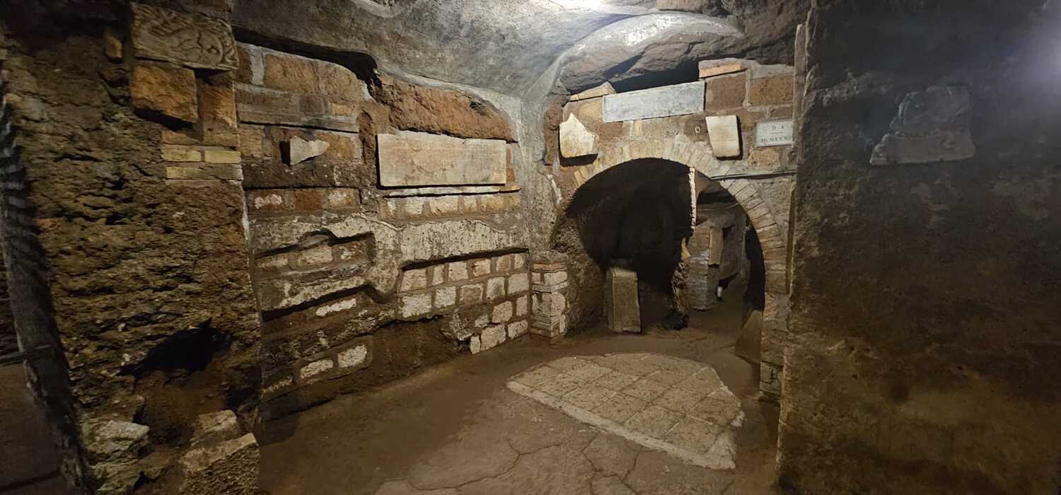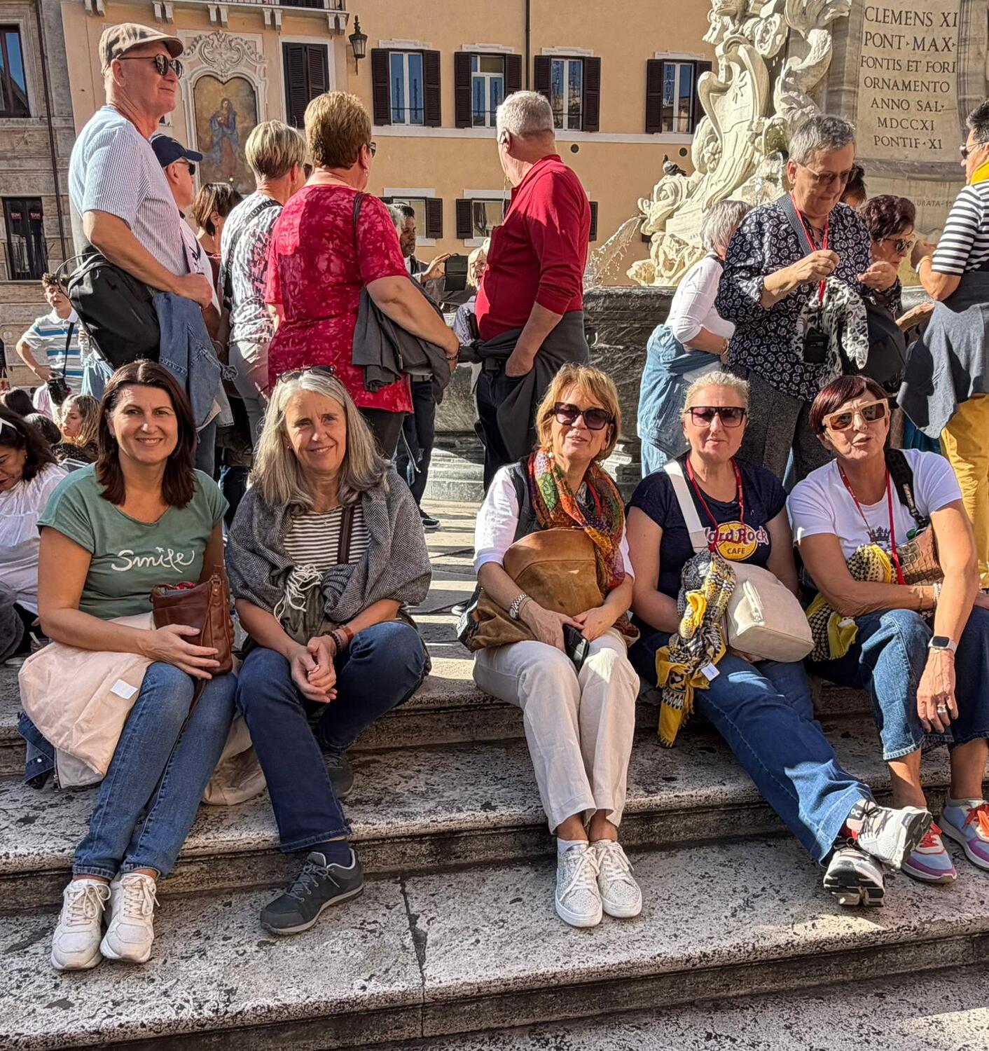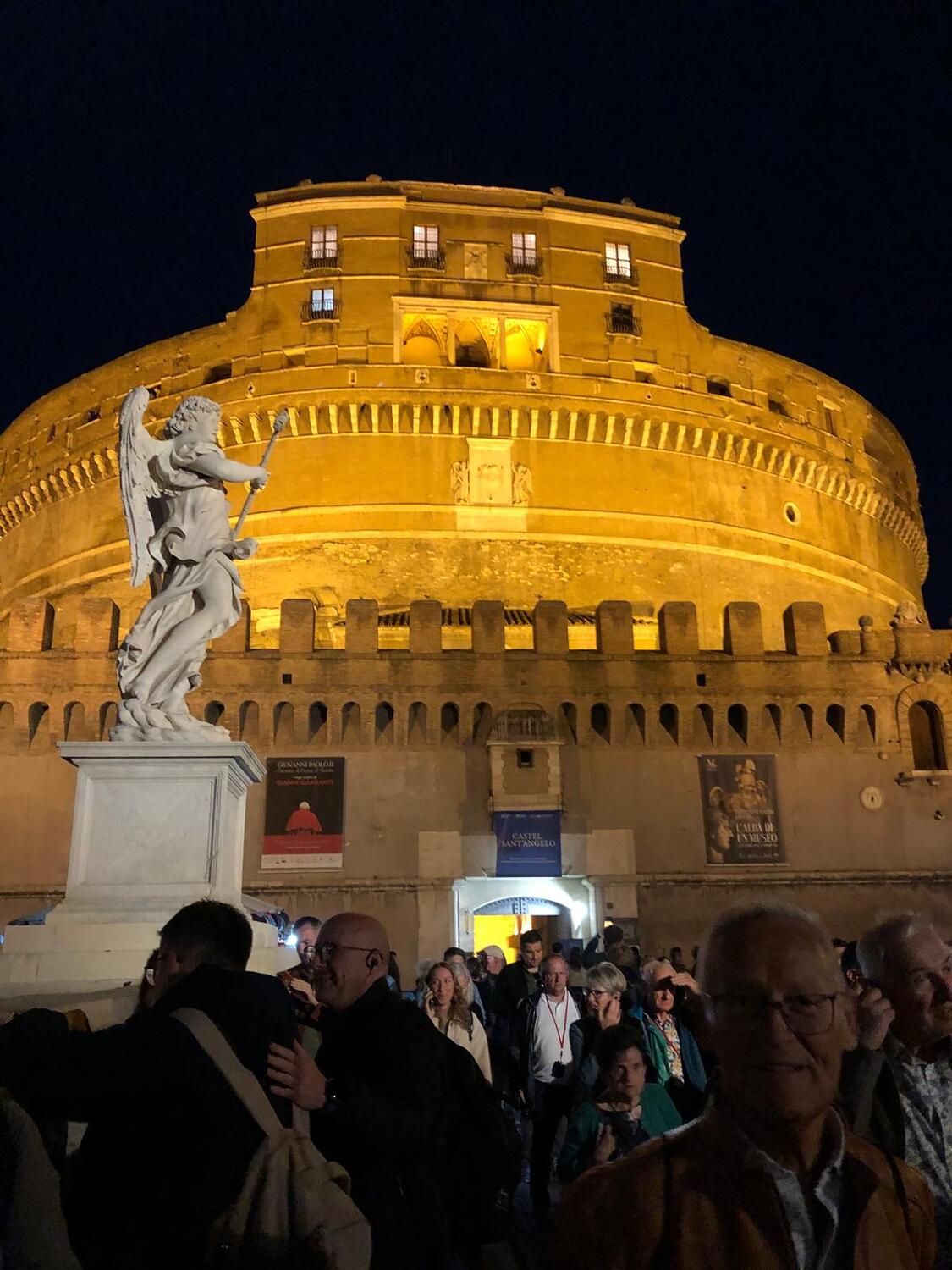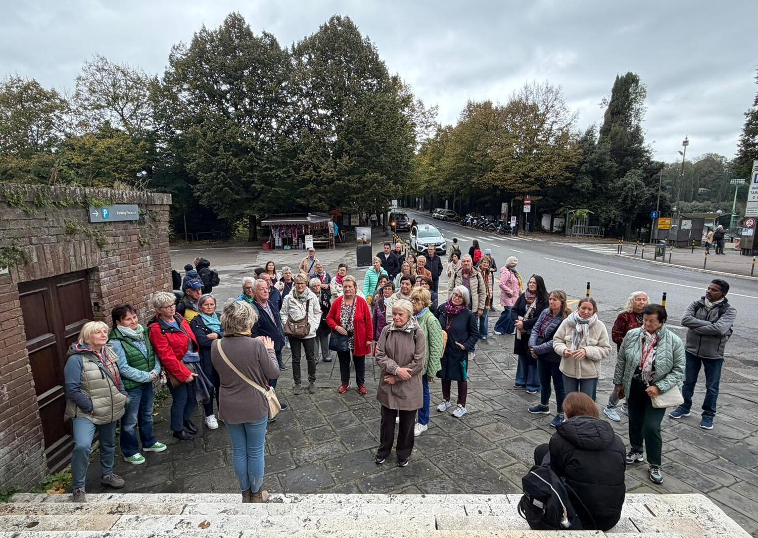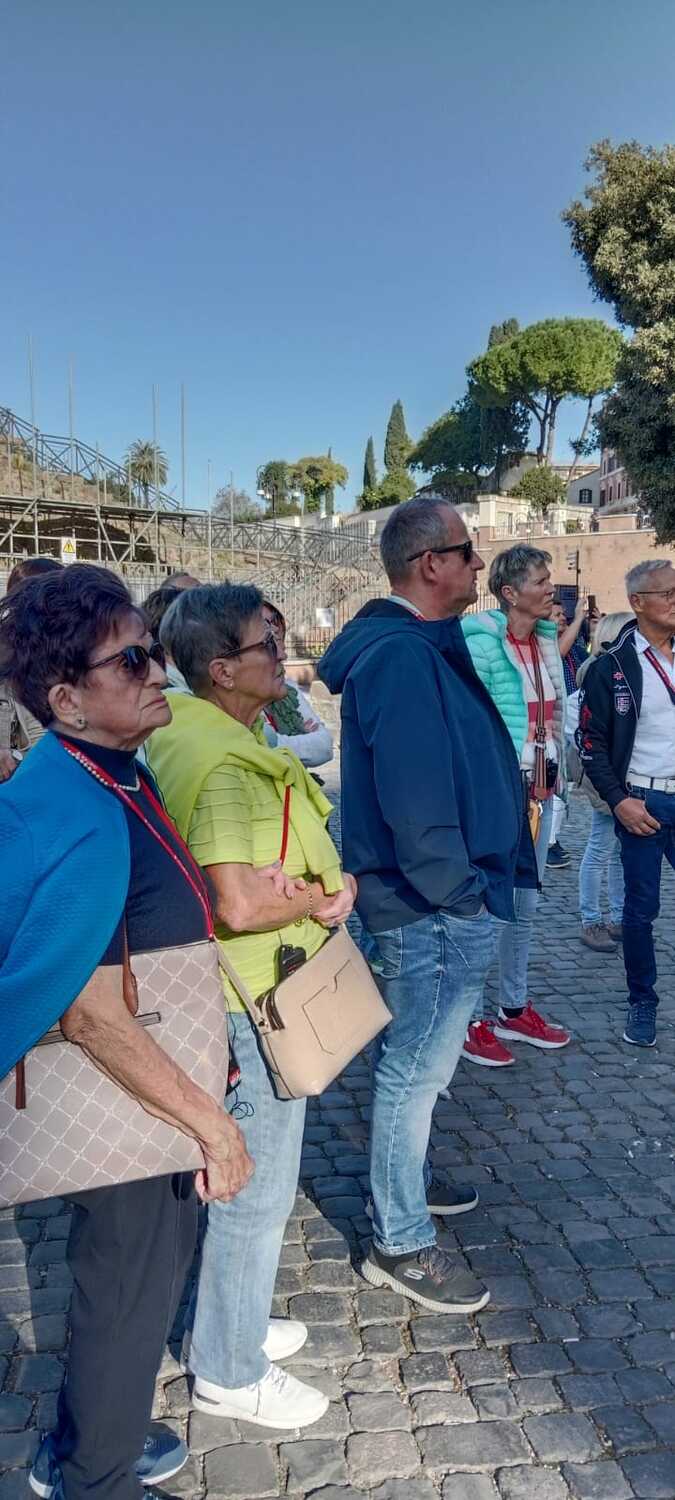 Die Weiterreise nach Rom versetzte uns bereits in große Spannung. Überwältigt von den ersten Eindrücken der Ewigen Stadt erkundeten wir unter professioneller Führung viele der bekanntesten Bauten und Sehenswürdigkeiten. Sehr berührt waren wir am Grab von Papst Franziskus, in der Basilika Santa Maria Maggiore . In der Basilika St. Paul vor den Mauern staunten wir über die Größe und den vielen Papstdarstellungen. In den Katakomben feierten wir in der Apostelkirche Peter und Paul , die dem Hl. Sebastian geweiht ist, die Hl. Messe. Zu unserer Freude war dies abseits vieler Touristen möglich.