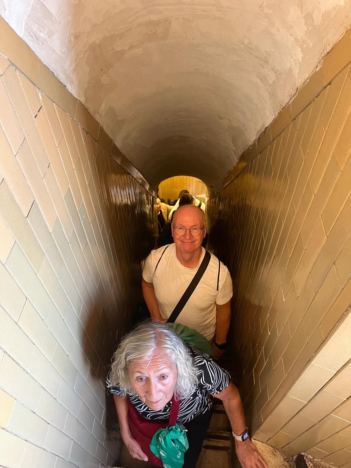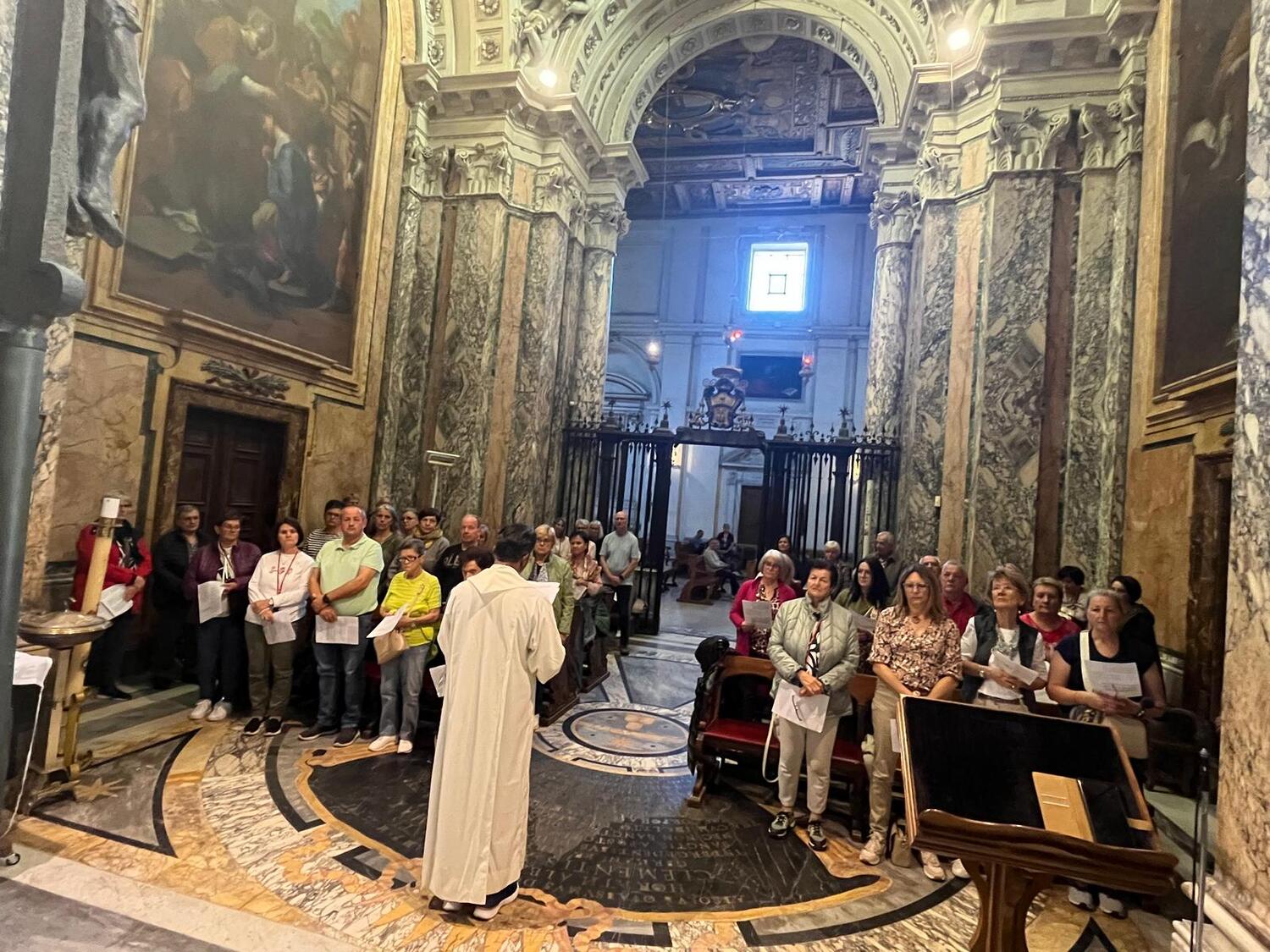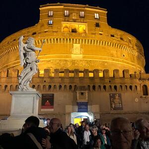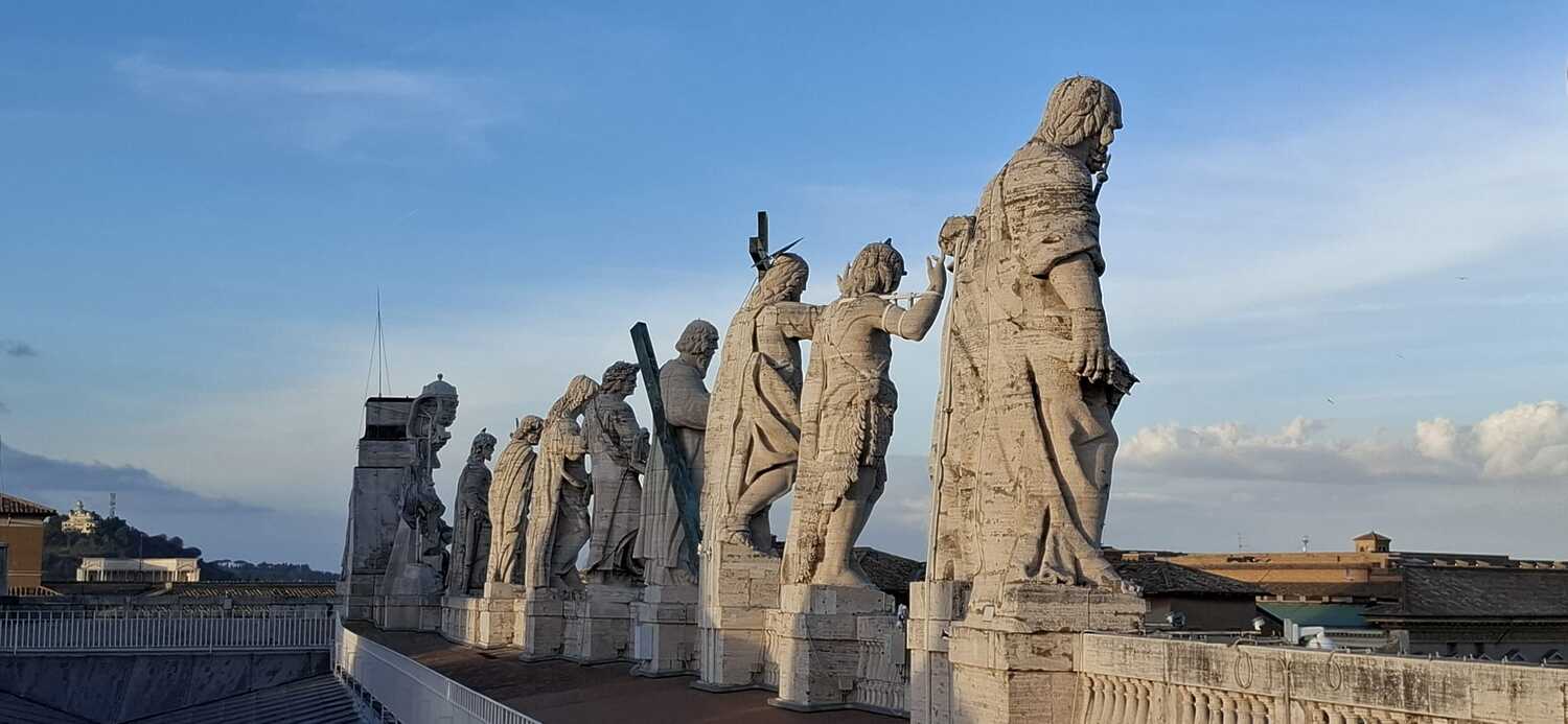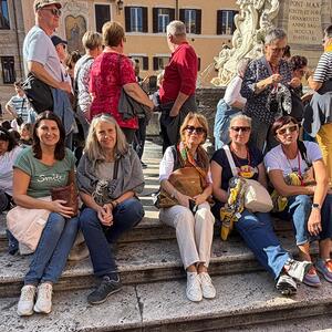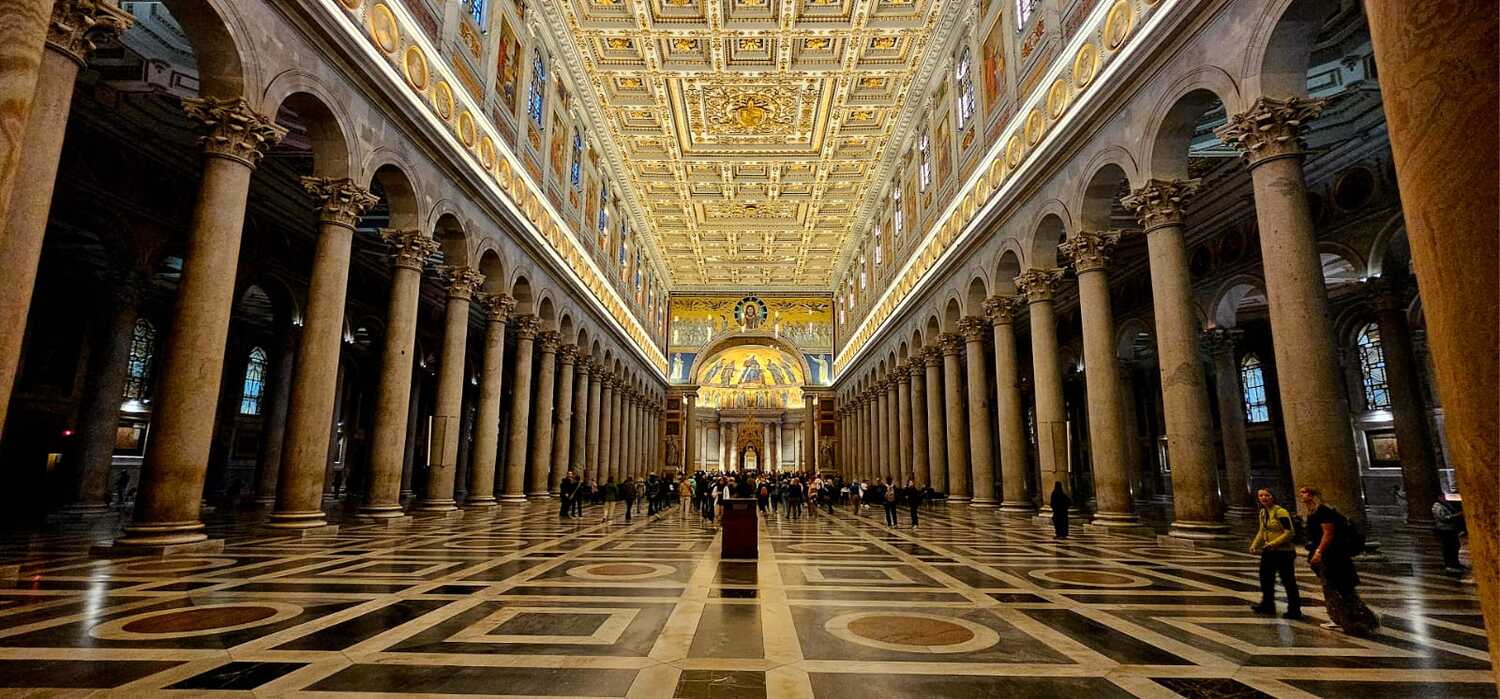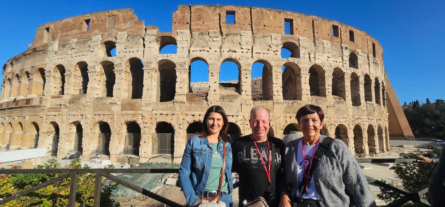 Die Weiterreise nach Rom versetzte uns bereits in große Spannung. Überwältigt von den ersten Eindrücken der Ewigen Stadt erkundeten wir unter professioneller Führung viele der bekanntesten Bauten und Sehenswürdigkeiten. Sehr berührt waren wir am Grab von Papst Franziskus, in der Basilika Santa Maria Maggiore . In der Basilika St. Paul vor den Mauern staunten wir über die Größe und den vielen Papstdarstellungen. In den Katakomben feierten wir in der Apostelkirche Peter und Paul , die dem Hl. Sebastian geweiht ist, die Hl. Messe. Zu unserer Freude war dies abseits vieler Touristen möglich.
