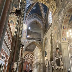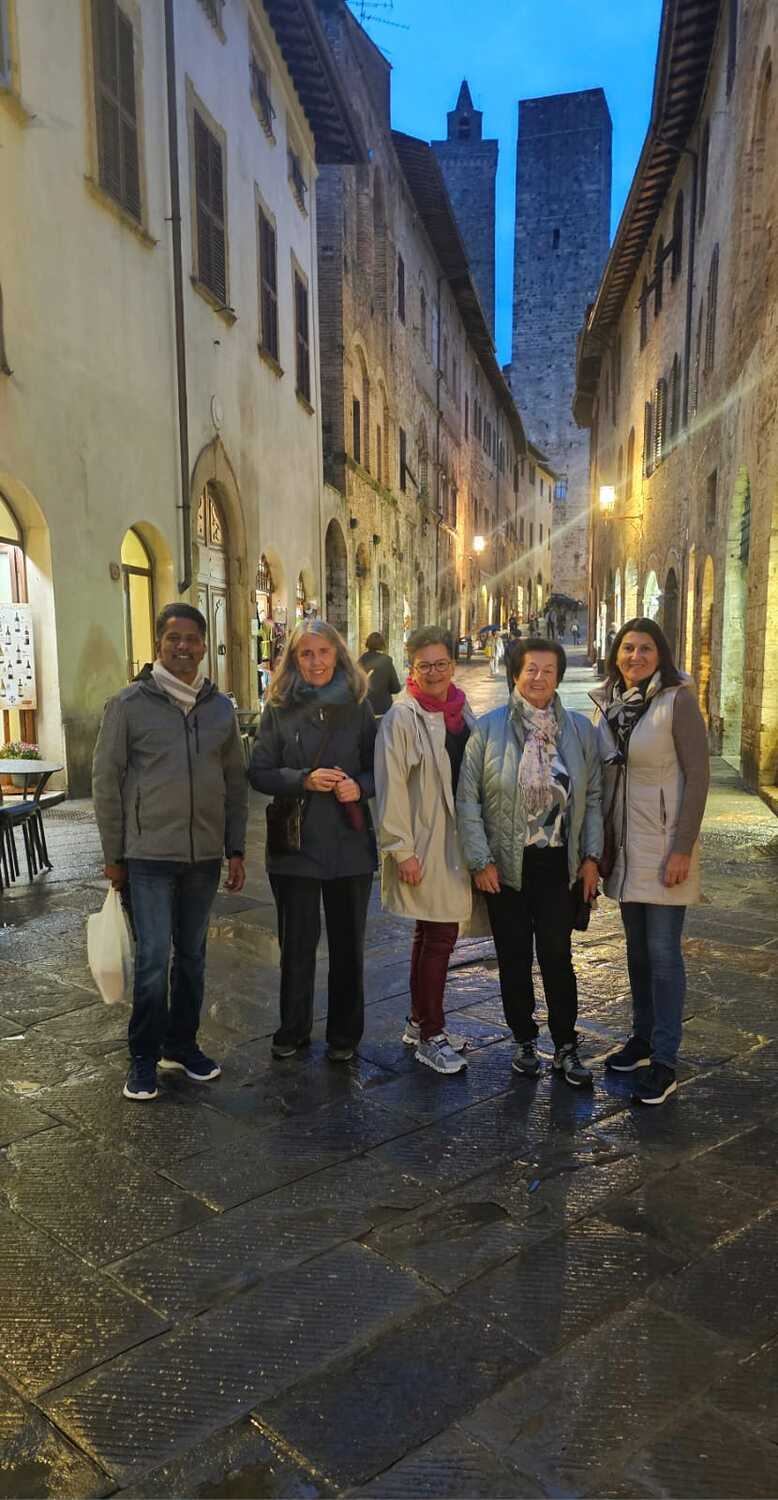 Unsere Weiterreise nach Siena, der dortige Besuch in der Basilica di San Domenico, wo wir der Hl. Katharina mit ihrem großen Glaubenszeugnis gedachten und ein abendlicher Besuch in der mittelalterlichen Stadt San Gimignano zeigten uns weitere große Schätze dieser Reise.