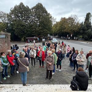 Unsere Reise führte uns zuerst nach Assisi, in die Heimat des heiligen Franziskus. Er ist der Patron unseres Seelsorgeraumes Via Pacis. Wir durften die Schönheit des Ortes und der Umgebung genießen, die Grablegungskirche - die Basilika San Francesco - bewundern, in der Kirche der heilige Klara -Santa Chiara - eine sehr berührende Friedensandacht miteinander feiern und am Grab des erst heiliggesprochenen Carlo Acutis erfahren, dass Heiligkeit mitten im Alltag – auch heute - gelebt werden kann.