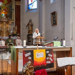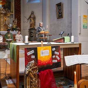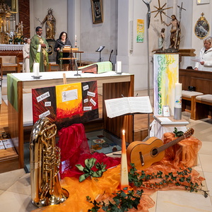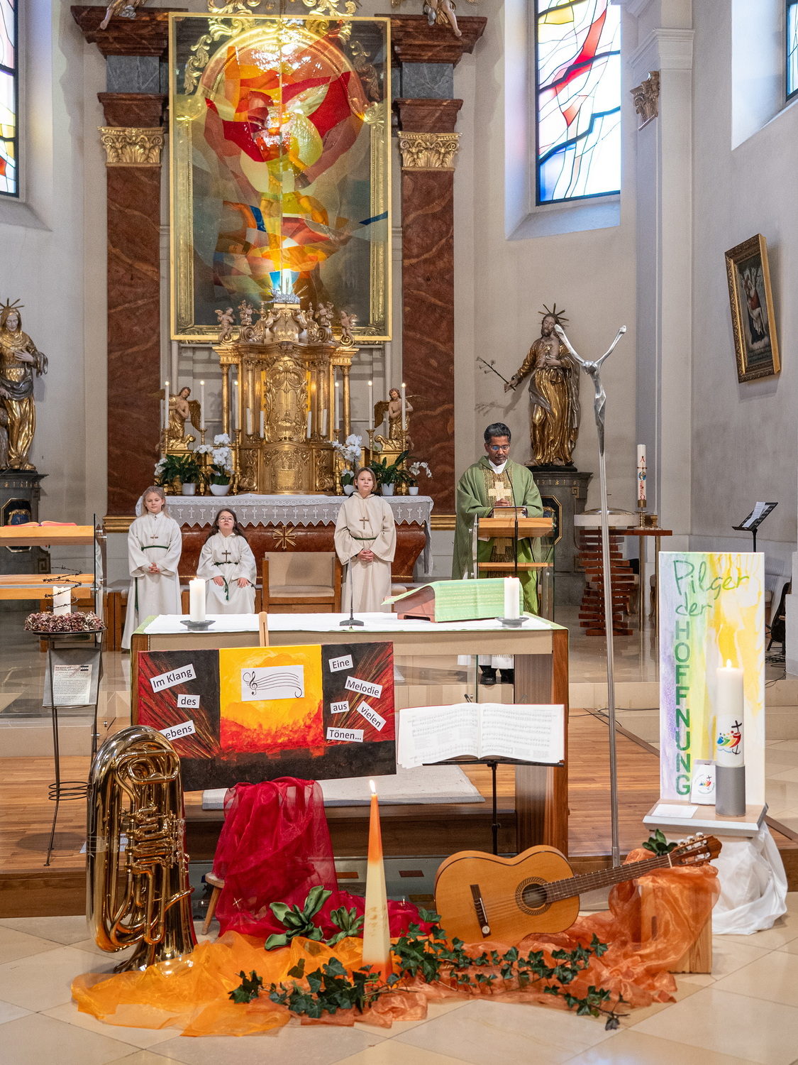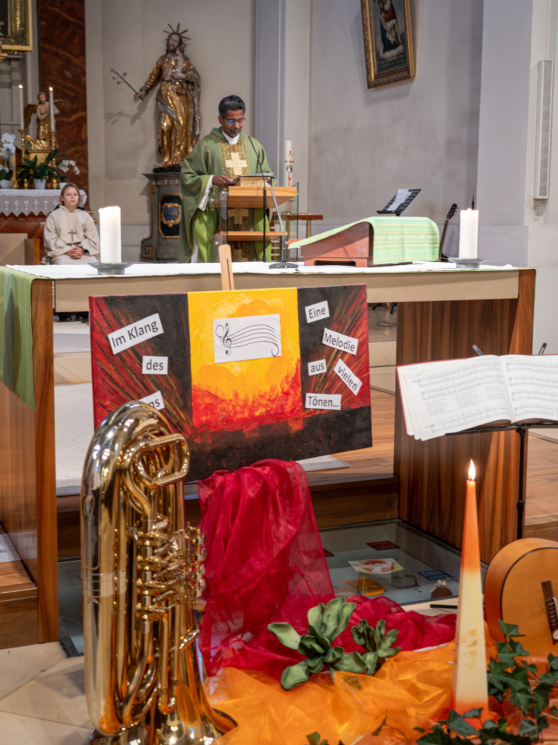 Unter dem Motto „Im Klang des Lebens – eine Melodie aus vielen Tönen“ dankten wir gemeinsam Gott für die vielen Facetten des Lebens: für hohe und tiefe Töne, für leise Momente und kraftvolle Akkorde. Jede und jeder bringt seinen eigenen Klang mit – zusammen jedoch entsteht eine einzigartige, vielstimmige Melodie, die Gott als guter Dirigent begleitet und trägt.