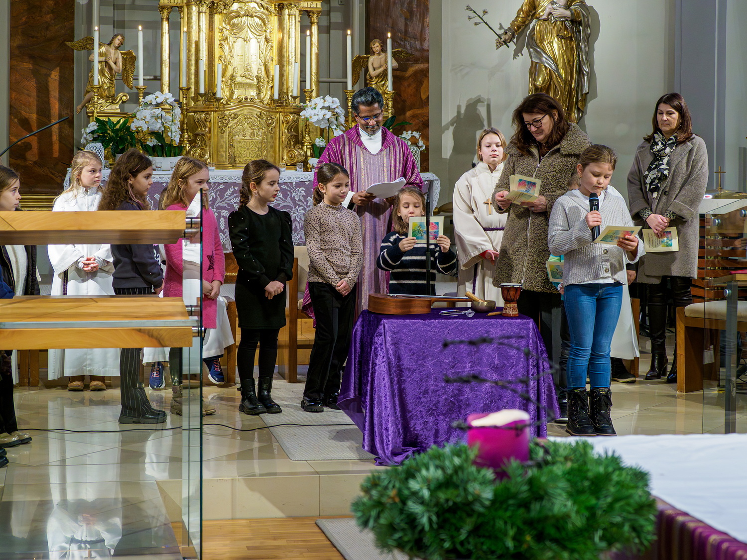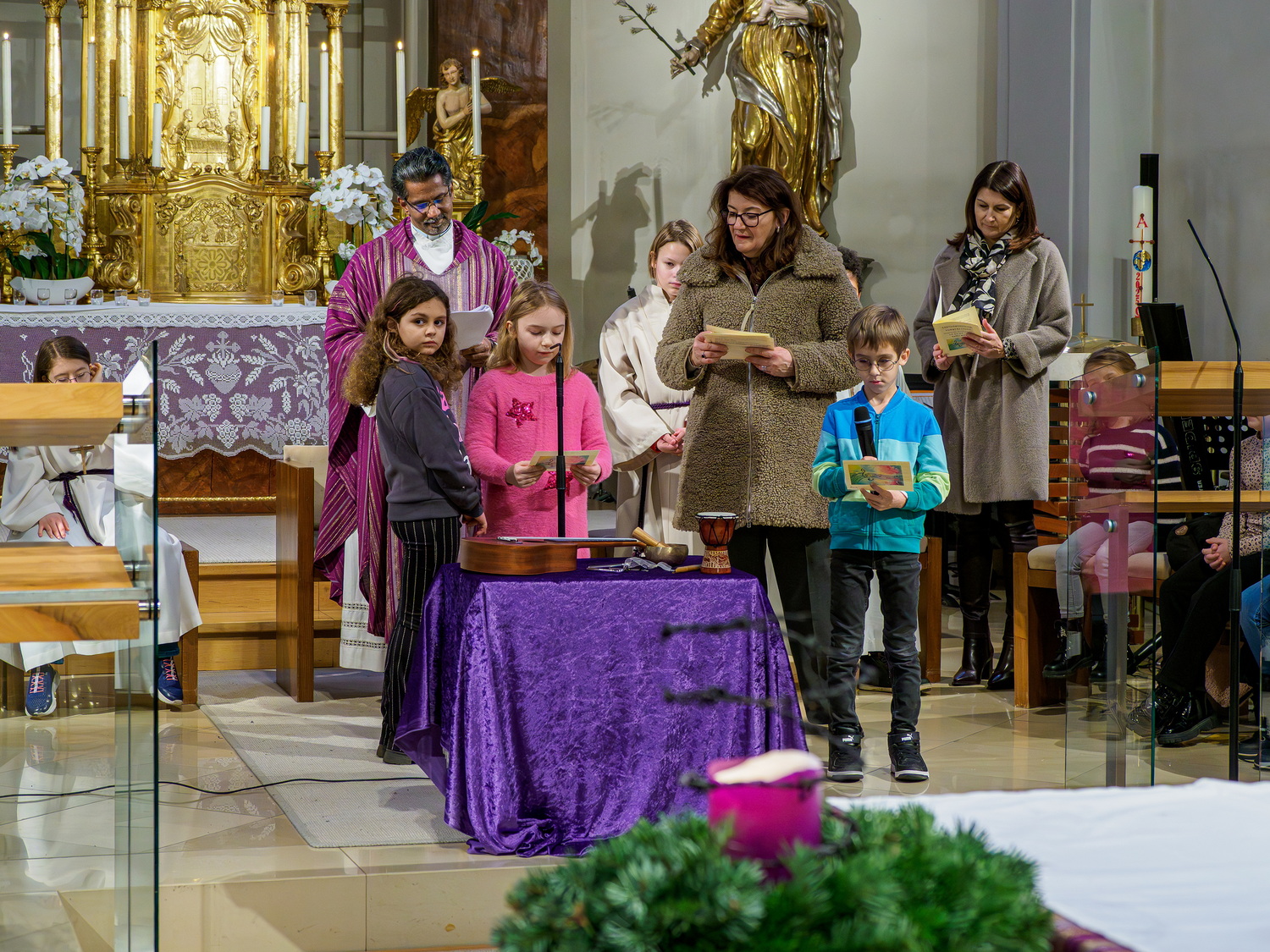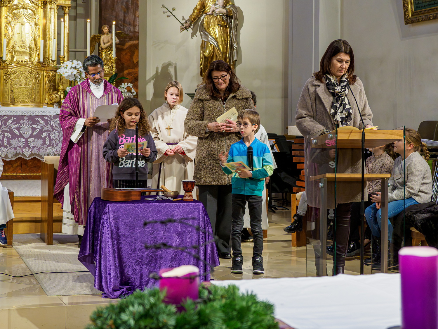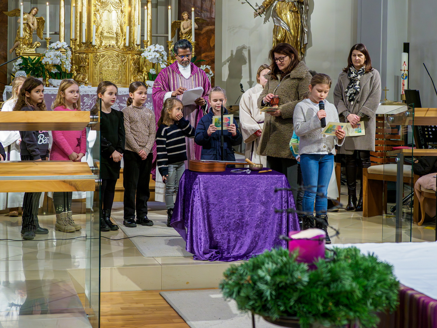Für 24 Kinder, darunter 15 Mädchen und 9 Burschen, war die Heilige Messe mit Pfarrer Sebastian Edakarottu am 14.12.2025, des diesjährigen 3. Adventsonntags ein wichtiger Tag: Sie durften sich der Pfarrgemeinde vorstellen. Diese Kinder werden am 31.05.2026 ihre heilige Kommunion empfangen.