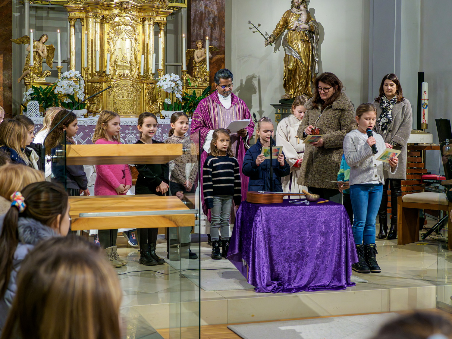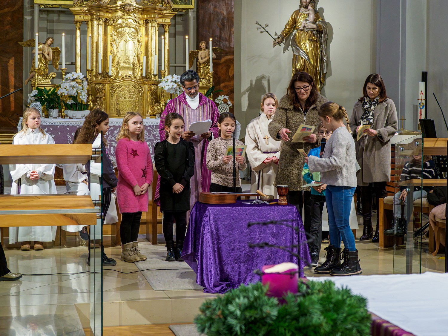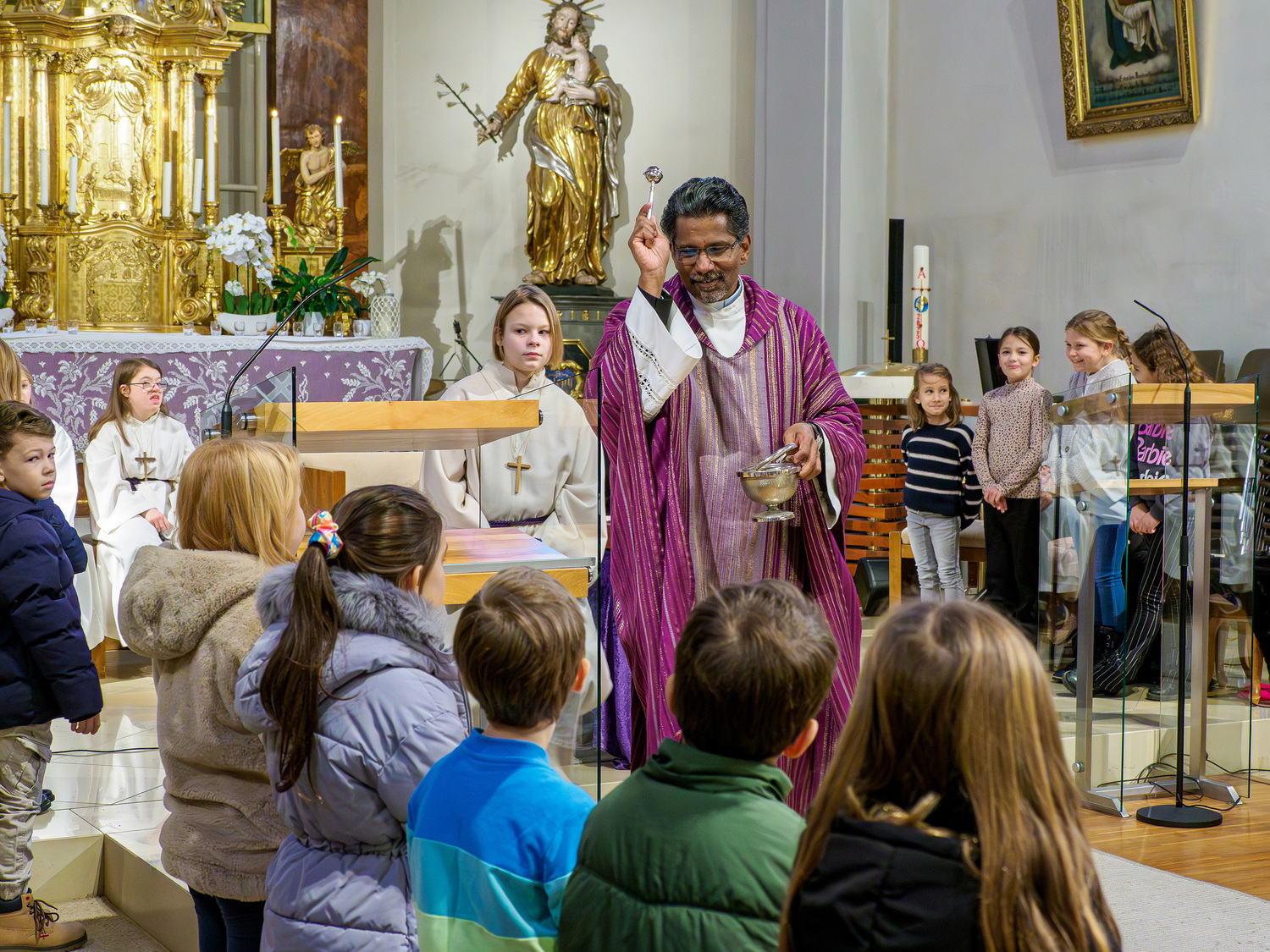 Für 24 Kinder, darunter 15 Mädchen und 9 Burschen, war die Heilige Messe mit Pfarrer Sebastian Edakarottu am 14.12.2025, des diesjährigen 3. Adventsonntags ein wichtiger Tag: Sie durften sich der Pfarrgemeinde vorstellen. Diese Kinder werden am 31.05.2026 ihre heilige Kommunion empfangen.