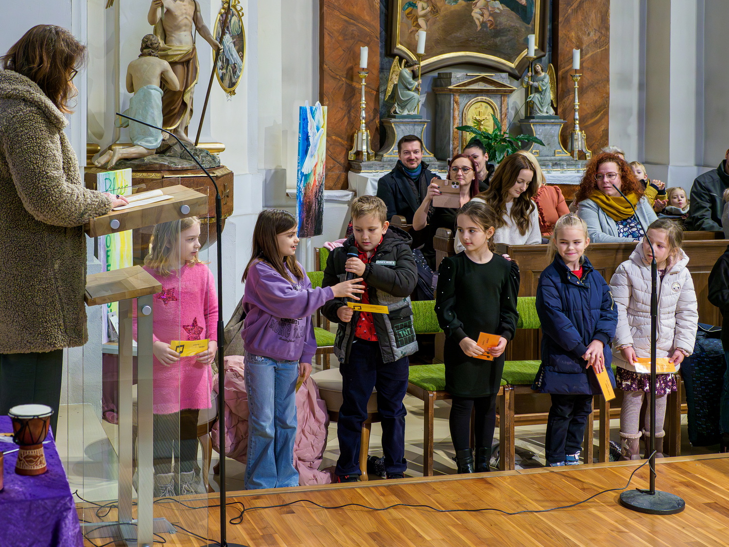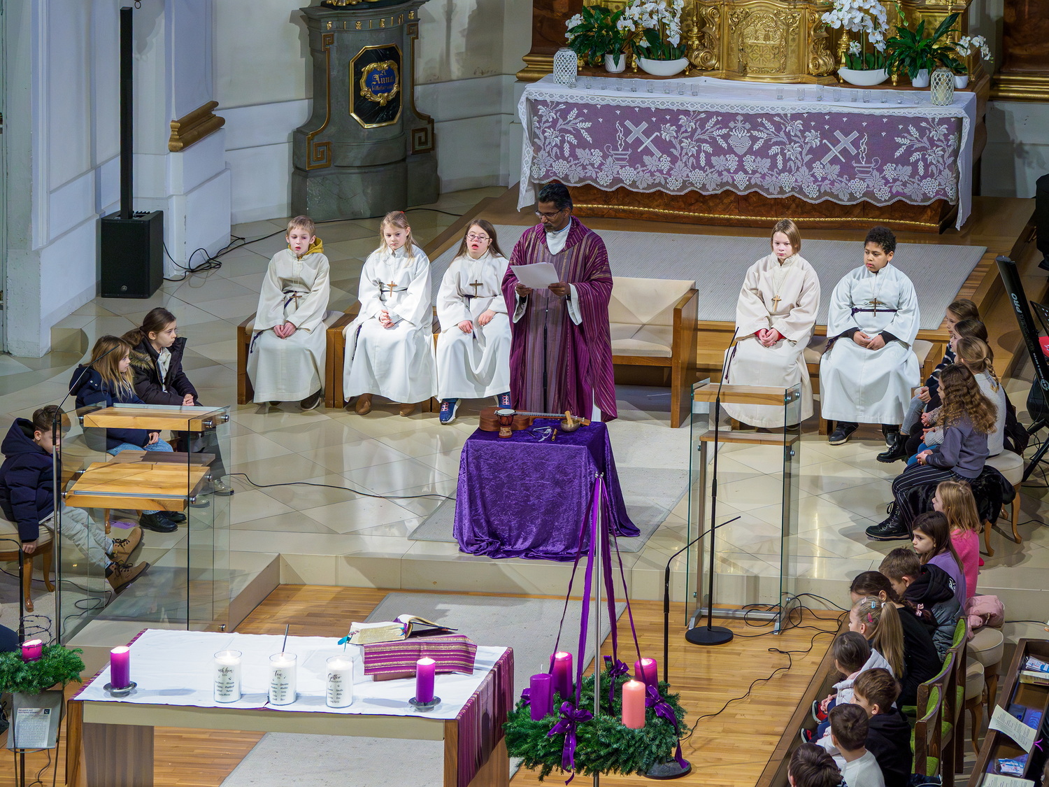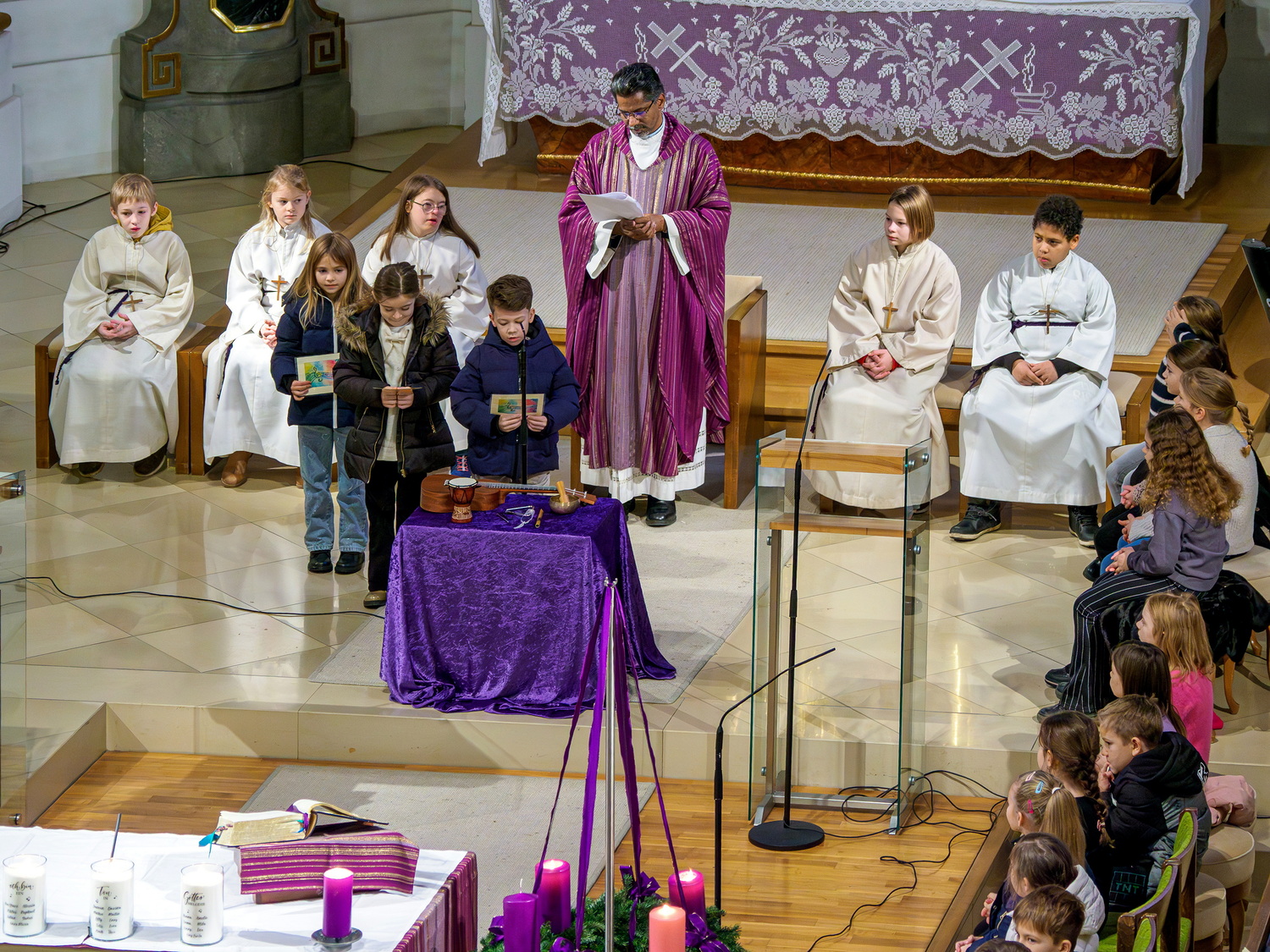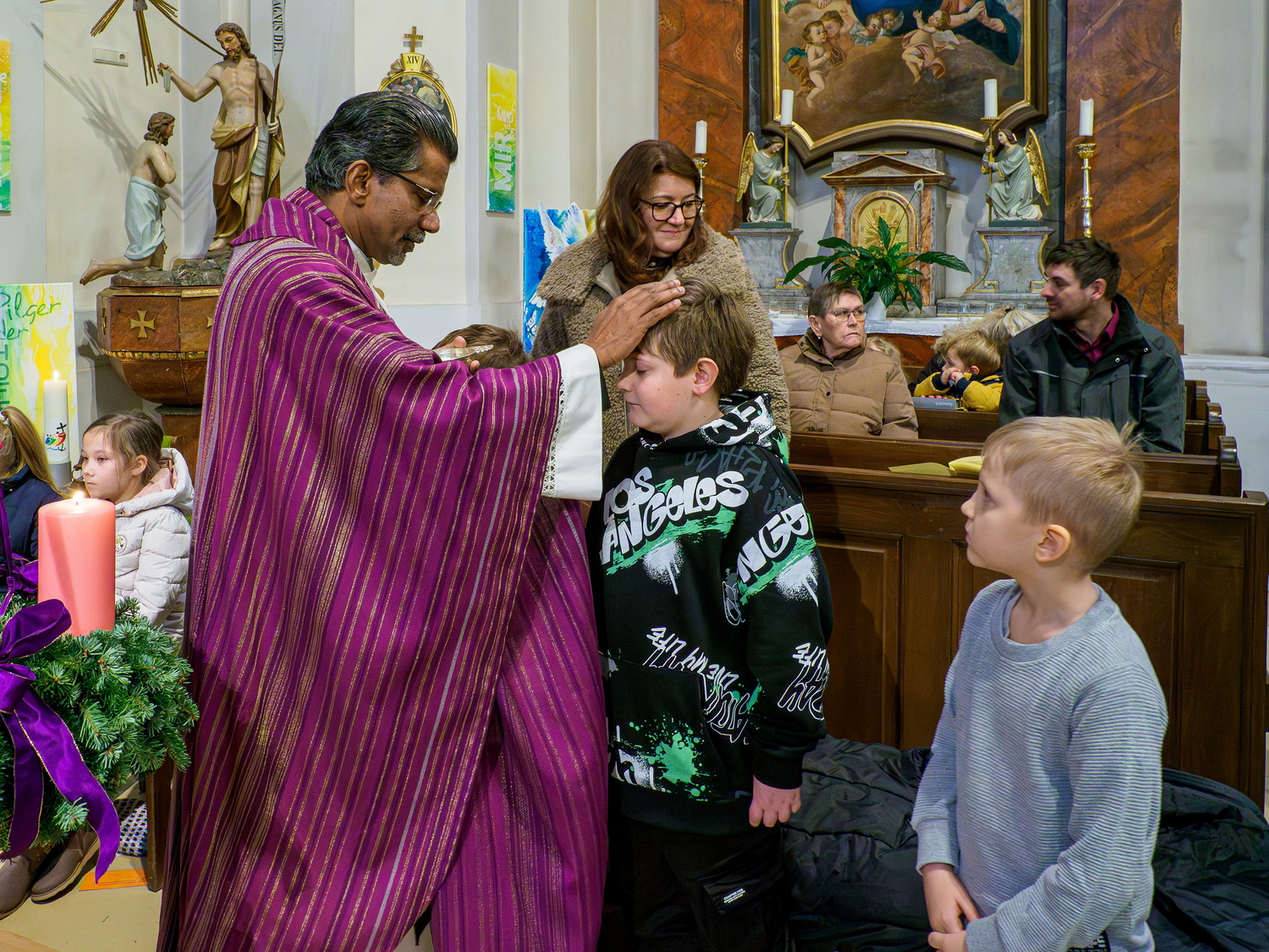 Für 24 Kinder, darunter 15 Mädchen und 9 Burschen, war die Heilige Messe mit Pfarrer Sebastian Edakarottu am 14.12.2025, des diesjährigen 3. Adventsonntags ein wichtiger Tag: Sie durften sich der Pfarrgemeinde vorstellen. Diese Kinder werden am 31.05.2026 ihre heilige Kommunion empfangen.