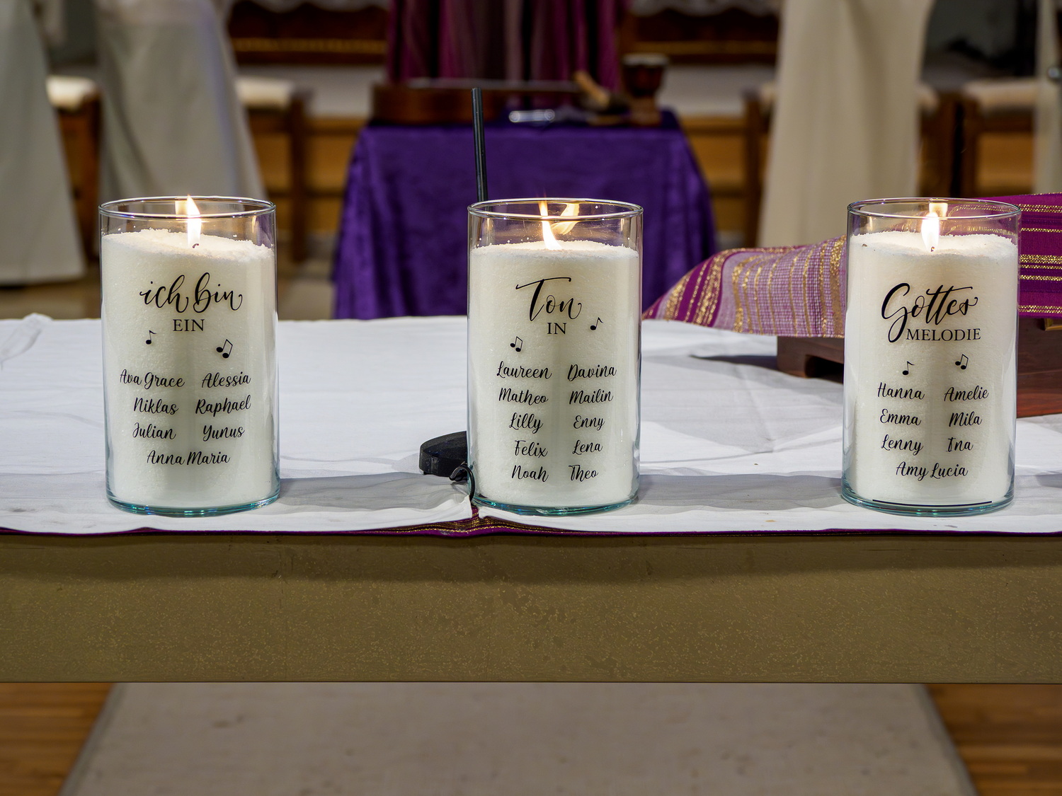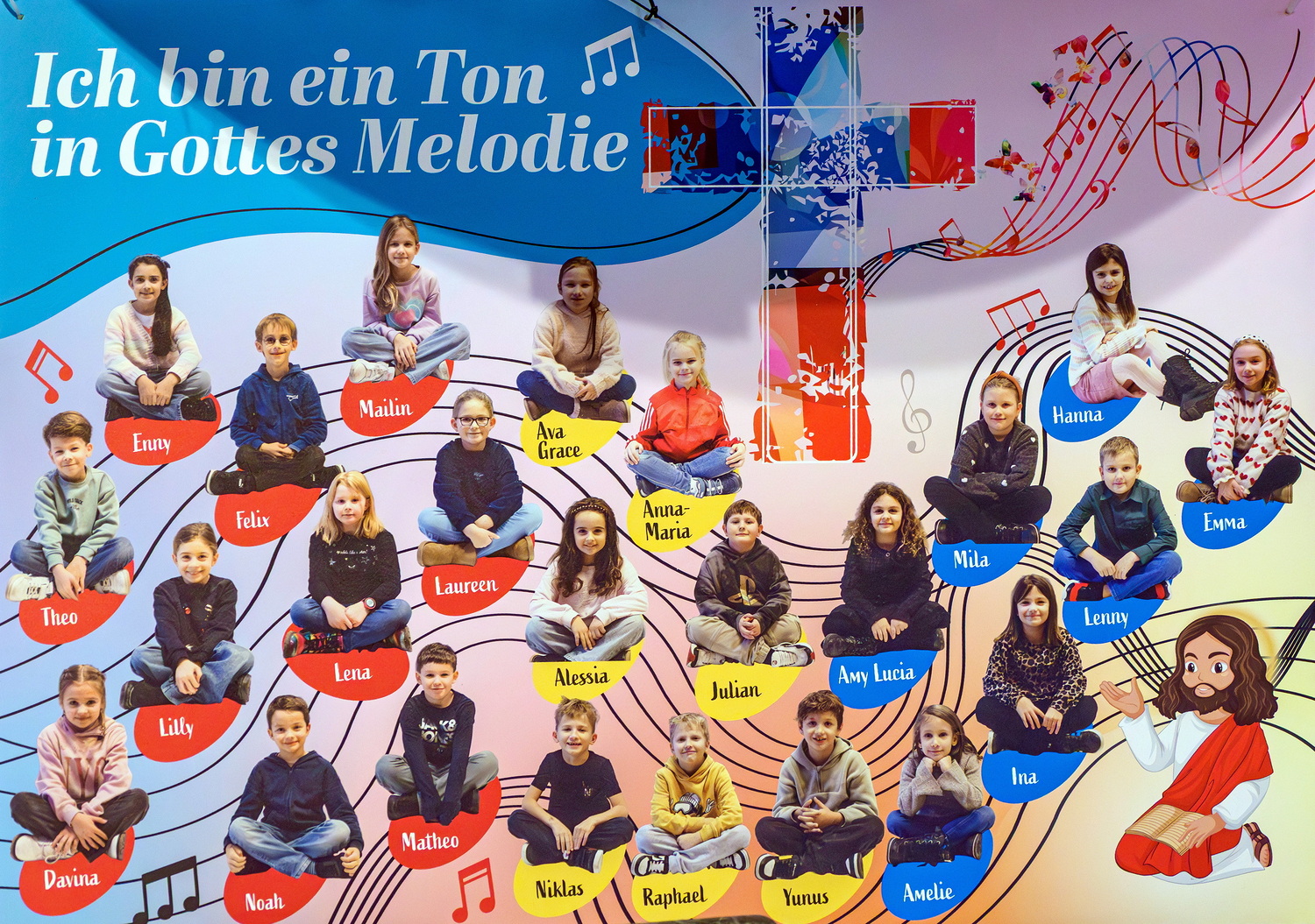 Unter dem Motto – „Ich bin ein Ton in Gottes Melodie“ sind die Kinder der Einladung gefolgt und wollen sich auf den Weg machen, Jesus näher kennenzulernen. Es soll symbolisieren, dass eine Melodie nur durch die verschiedenen Töne vollständig ist. Jedes Kind ist wichtig und jeder Einzelne Ton ist von Bedeutung.