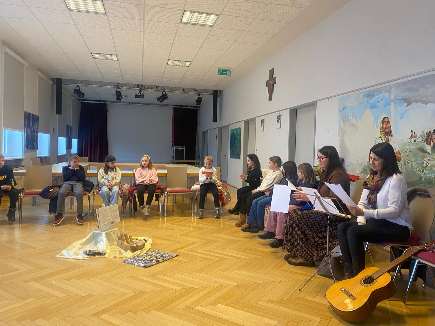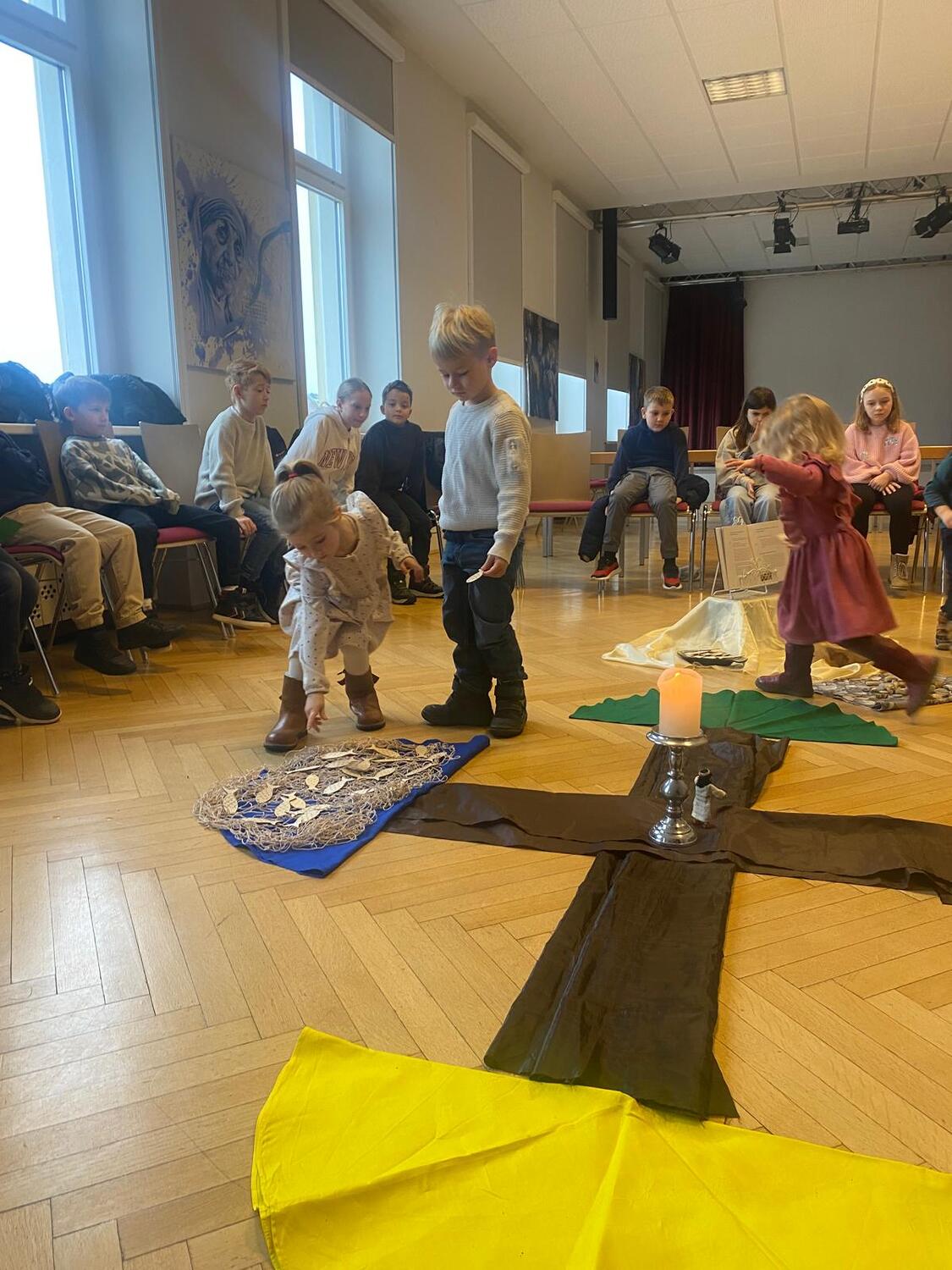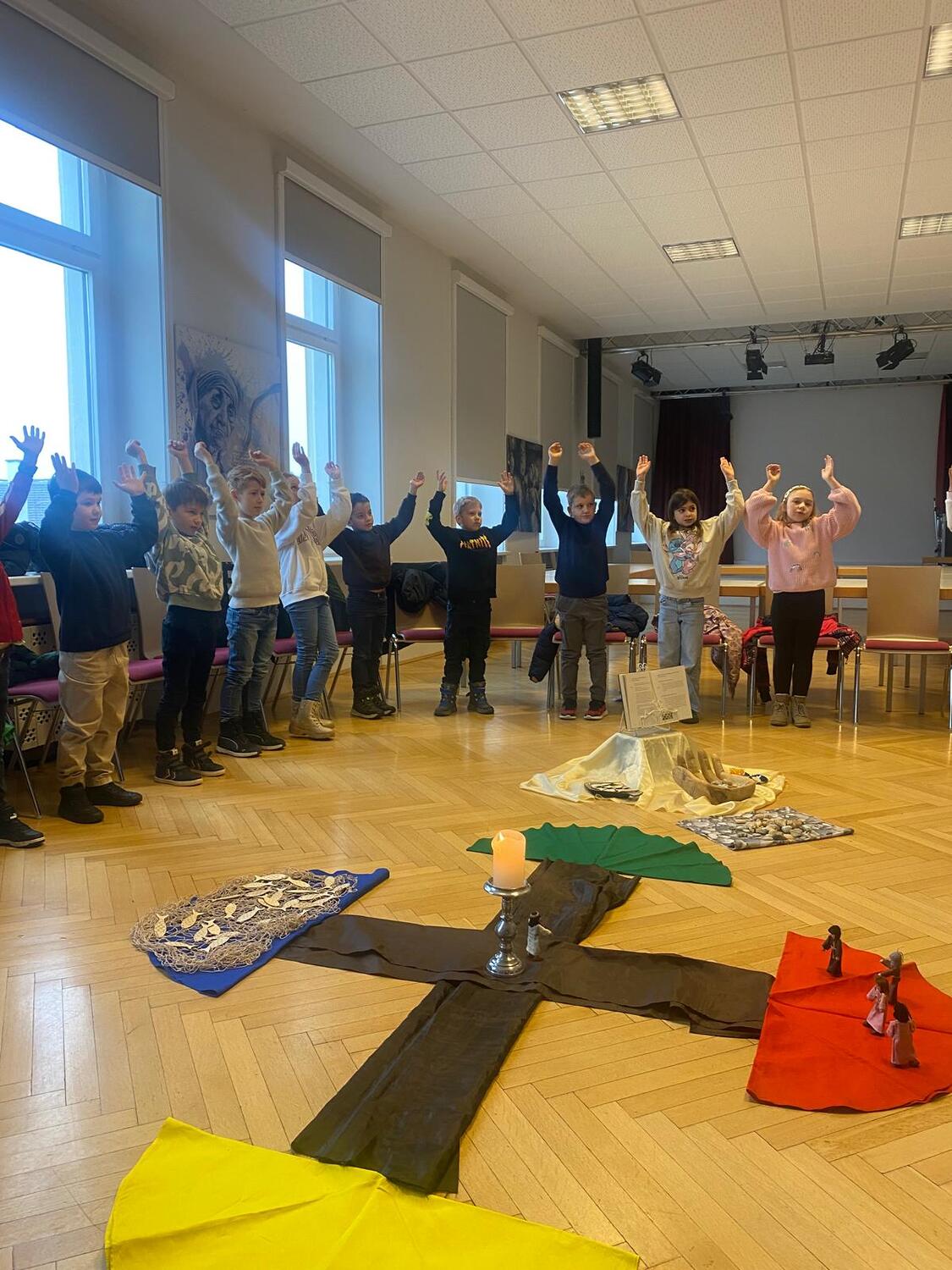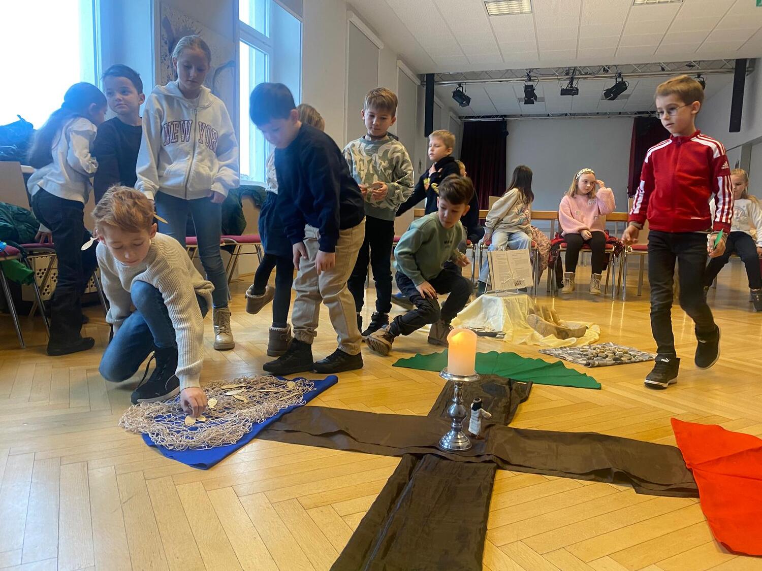 Am 25.1.2026, am Sonntag des Wortes Gottes, trafen wir uns im Pfarrzentrum um gemeinsam den Kinderwortgottesdienst zu feiern. Wir hörten von den ersten Jüngern, die Jesus beim Namen gerufen hat: Simon, Andreas, Jakobus und Johannes. Von Beruf waren sie Fischer. Sie ließen alles hinter sich und folgten ihm sofort. Jesus brauchte damals Menschen, die Freude an Gott und seiner Botschaft haben. Und das ist heute nicht anders. Wir alle sollen von der Güte und Liebe Gottes erzählen. Wir sind die Menschenfischer von heute, Jesus ruft Dich und mich. Hören und folgen wir seinen Ruf.