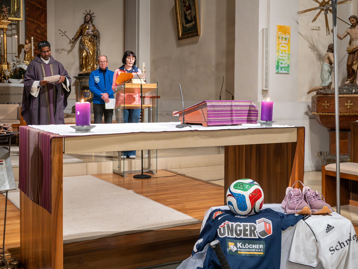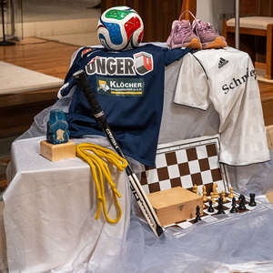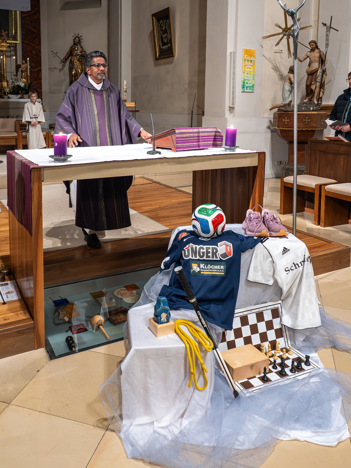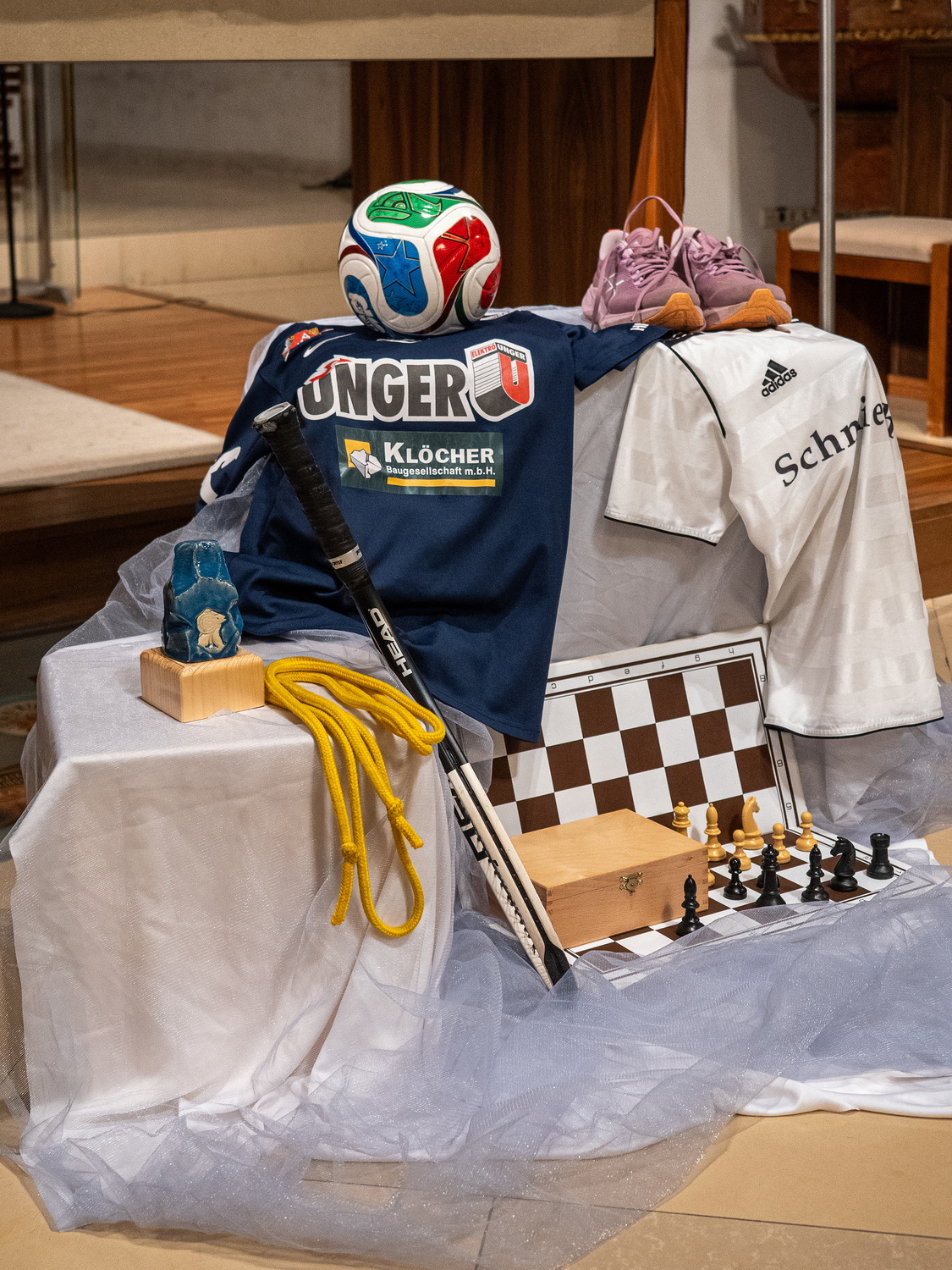 Am Samstag, den 28.2. feierten wir wieder unsere traditionelle Sportlermesse. 9 Vereine aus unserer Gemeinde waren vertreten und trugen zu einer gut besuchten und lebendigen Feier bei. Zur Gabenbereitung wurde der Altar symbolisch mit Sportgeräten der Vereine gestaltet - ein sichtbares Zeichen für die Vielfalt und das Engagement in unserer Gemeinschaft. Im Anschluss an den Gottesdienst nutzten viele die Gelegenheit zum persönlichen Austausch bei einer Agape im Pfarrzentrum.